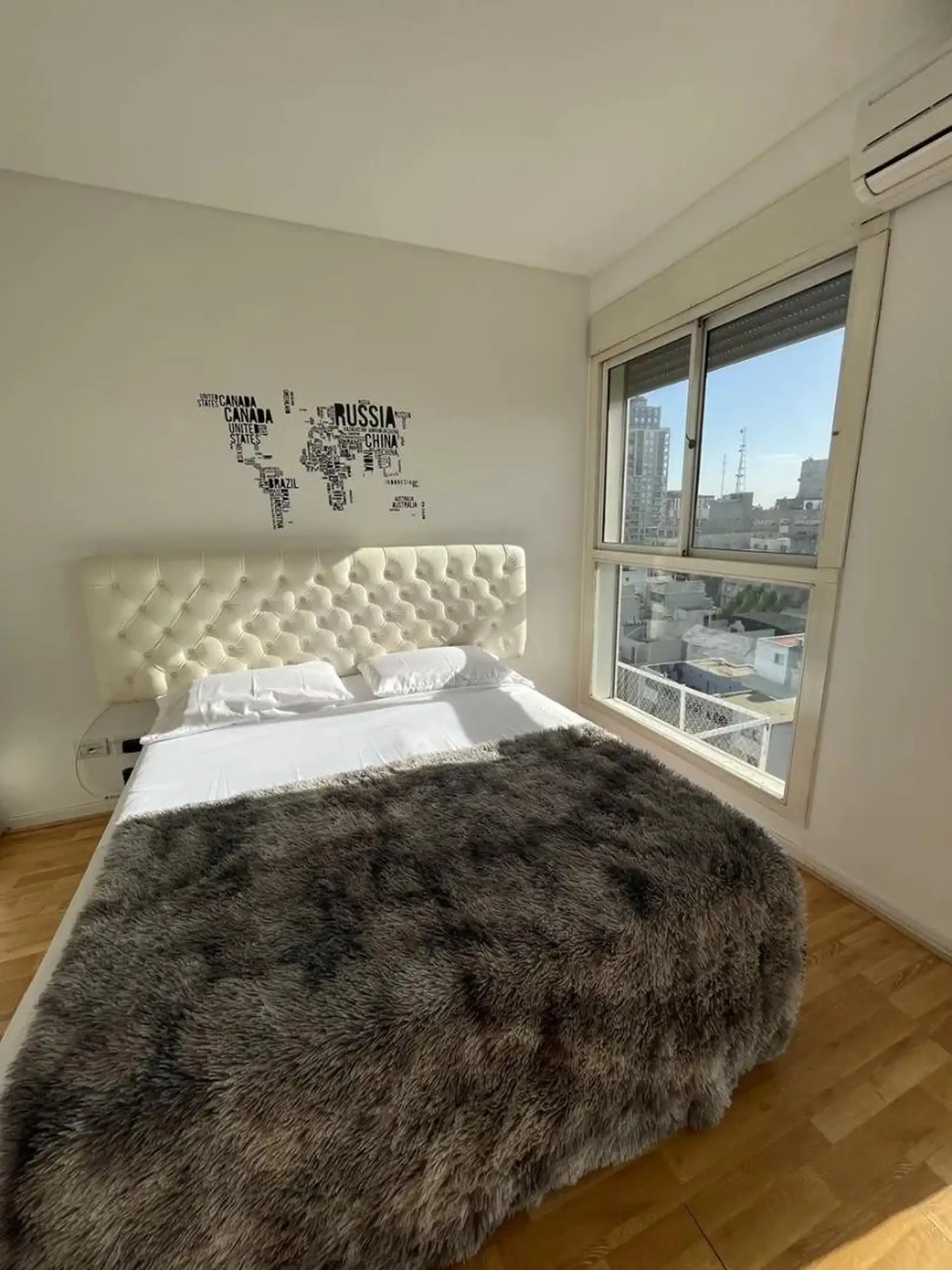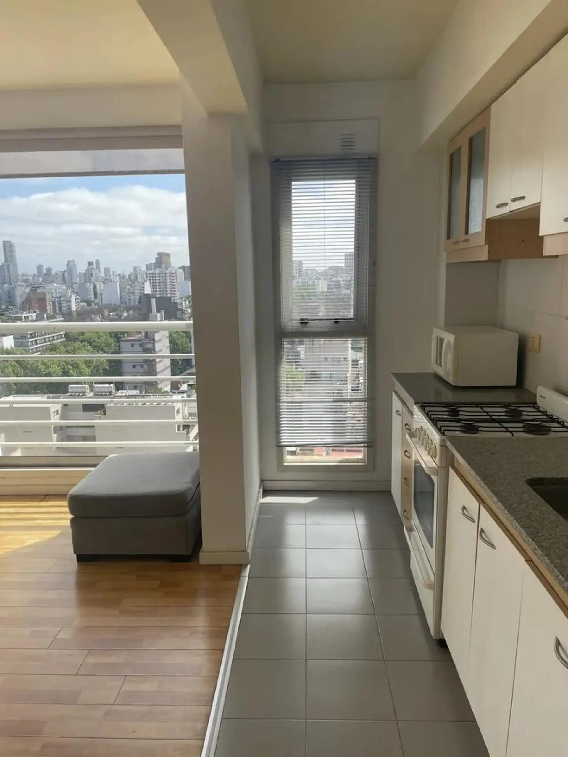 Apartamento de 2 ambientes com 45 m², no térreo de frente para a rua, em Palermo. O imóvel fica mobiliado e dispõe de aquecimento por losa radiante central, dois aparelhos de ar-condicionado frio/calor (living e dormitório) e ventilador adicional. Há living integrado com sala de jantar, dormitório independente e banheiro com antebanheiro. O prédio tem segurança 24/7. O valor é de US$ 850 (pacote).