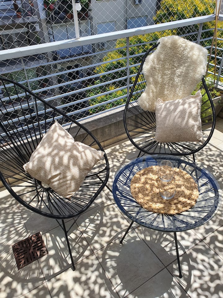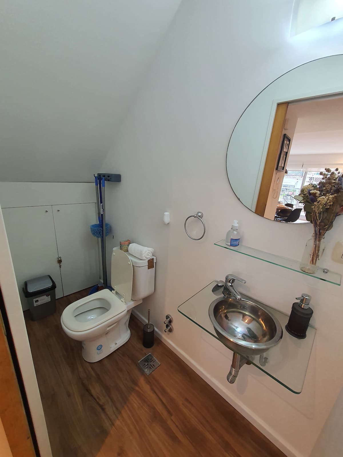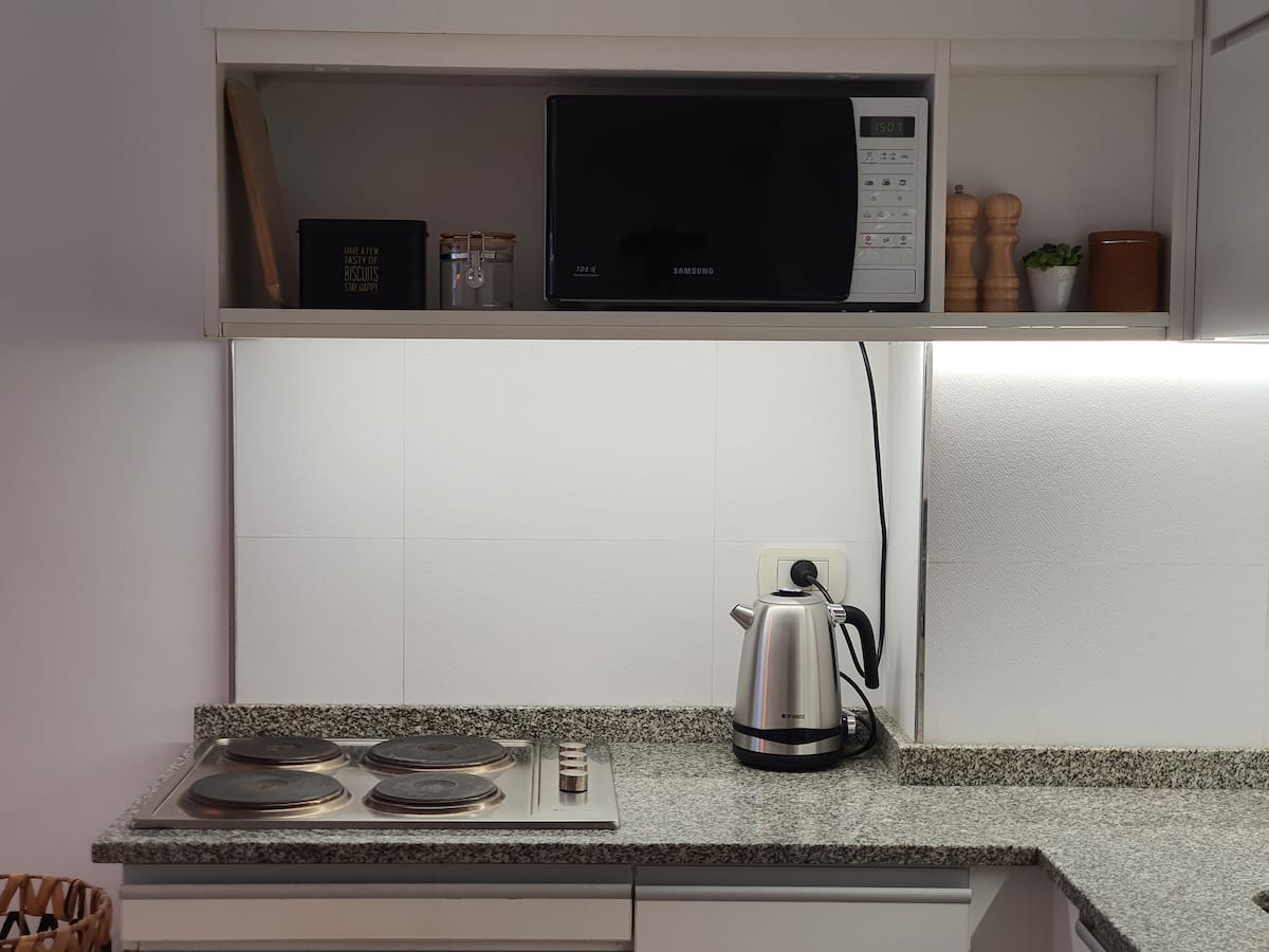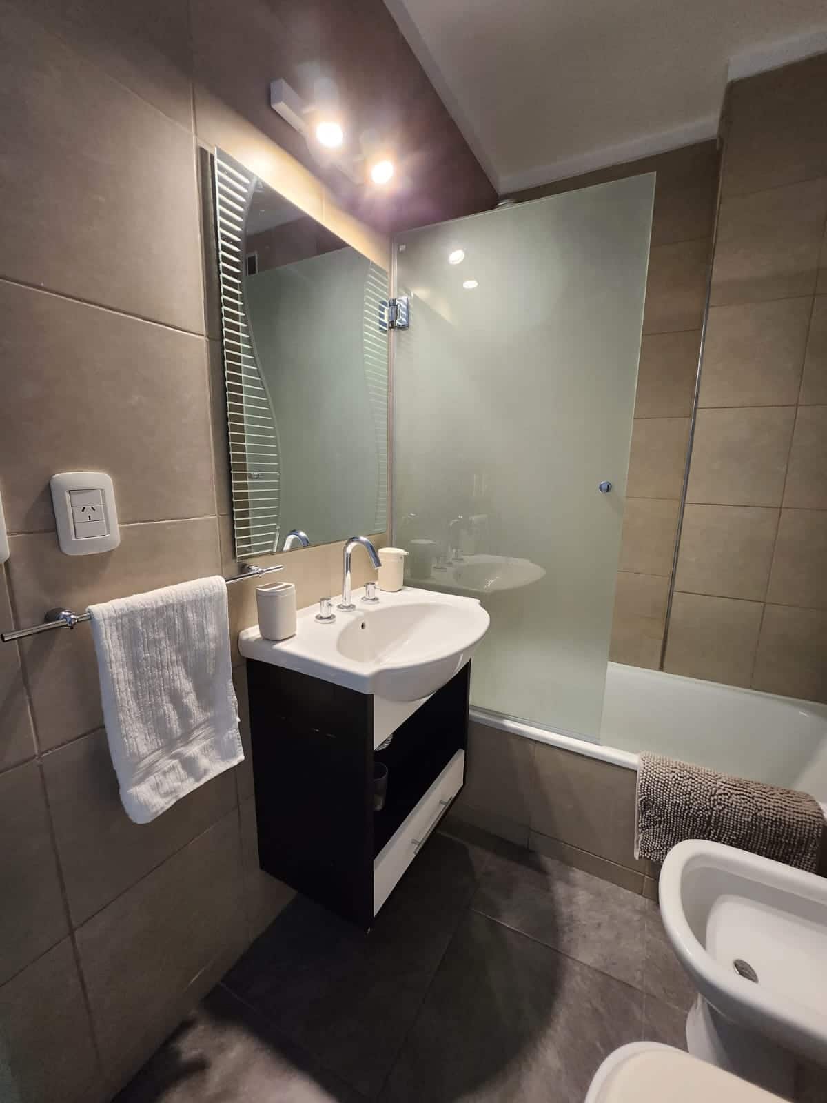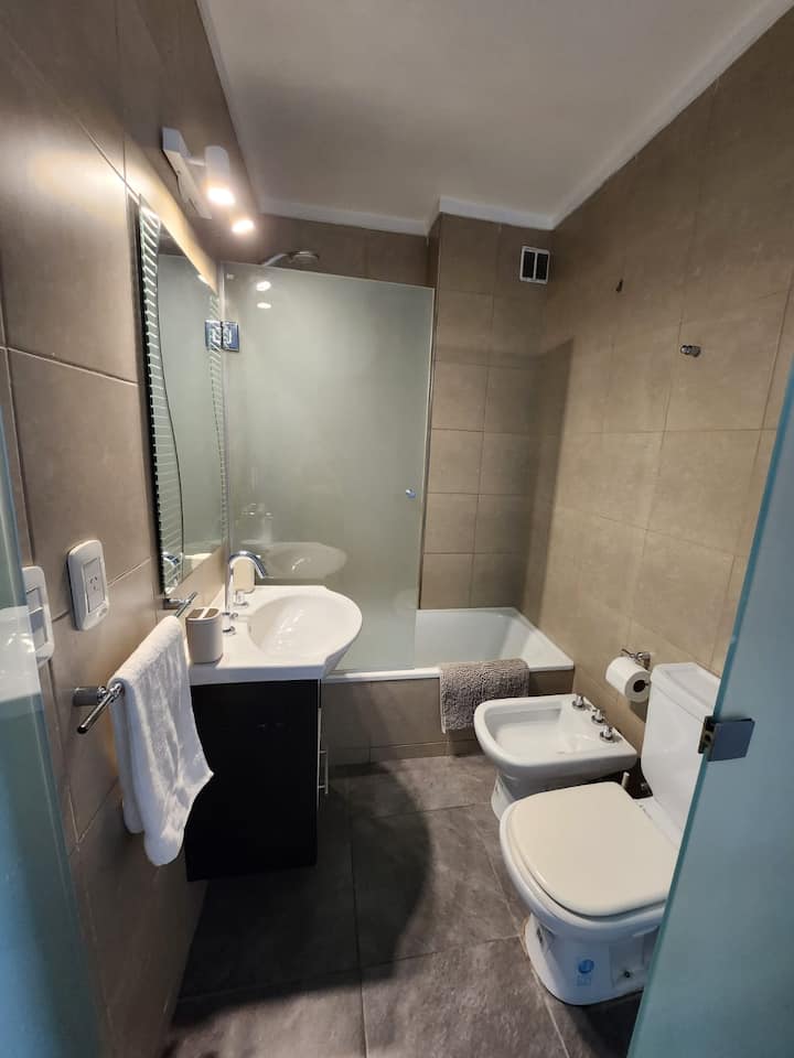 Apartamento em duplex em Palermo Soho, com 1 quarto, com varanda e terraço. No piso térreo, sala de estar com piso de madeira, iluminação regulável, ar-condicionado e Smart TV; acesso a uma varanda ensolarada por porta de vidro do chão ao teto. Cozinha totalmente equipada com itens como cafeteira, torradeira, micro-ondas, forno elétrico, fogão/“anafe” e utensílios. No andar superior, suíte com banheiro completo e closet, além de espaço de trabalho/estúdio. O prédio dispõe de piscina e área de ch