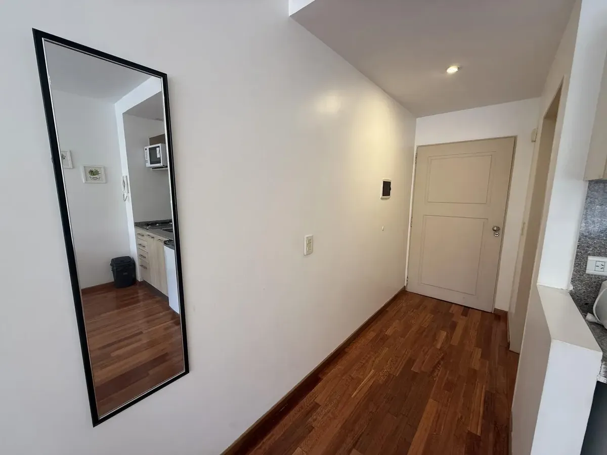 Kitnet em edifício de categoria em Palermo Botánico, com 1 banheiro e 1 hall de recepção. Unidade com cozinha com móveis planejados, anafe a gás, living integrado ao dormitório e ar-condicionado F/C, além de piso de madeira. Possui varanda com vista para o miolo de quadra, banheiro com banheira e acesso a piscina, área de jogos, academia, lavanderia, terraço com salão de festas e área de churrasco, além de segurança. O aluguel não inclui condomínio e serviços; no último mês, foram pagos $240.000
