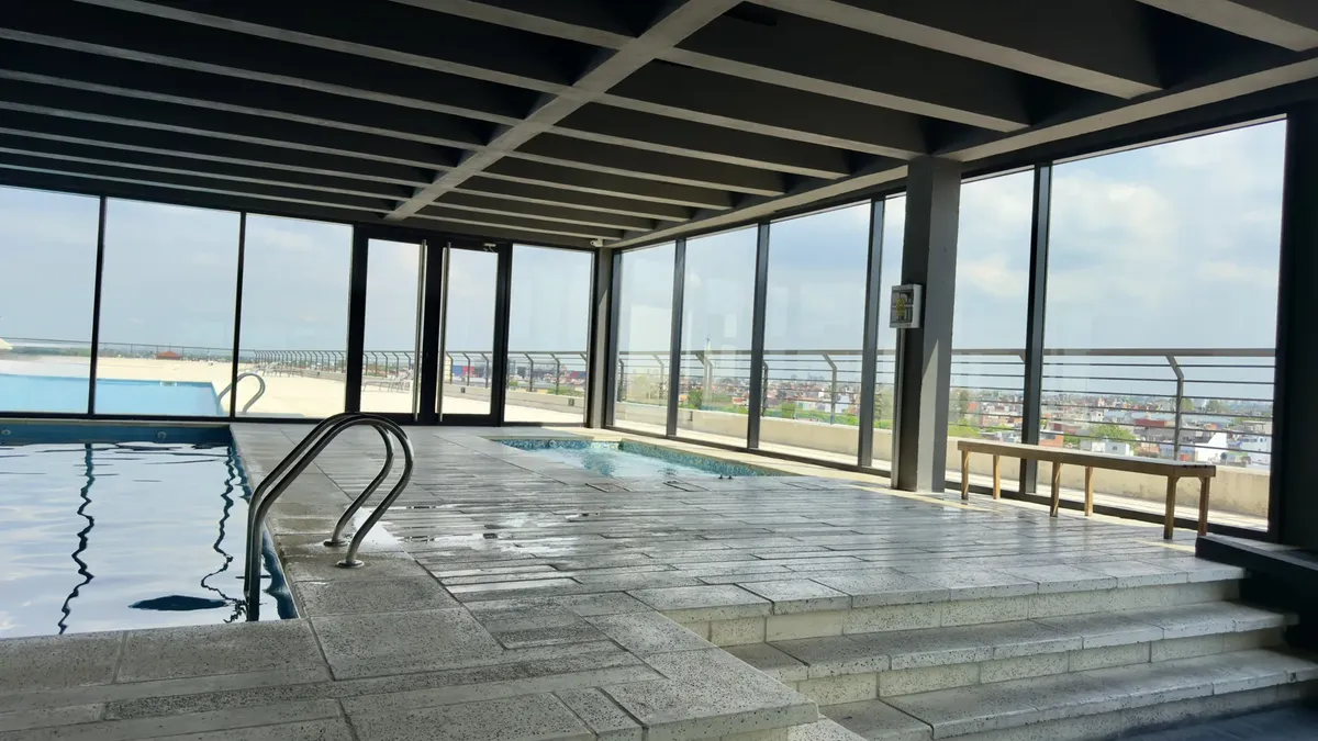 Loft em prédio de estilo “country urbano” no front, com pé-direito duplo e 1 quarto em mezanino com separação visual. Possui cortinas tipo roller e ar-condicionado frio-calor. Sala integrada com janelas do piso ao teto, cozinha com espaço de armazenamento e varanda privativa. O complexo inclui 4 salões de uso múltiplo e coworking, salão de eventos para até 150 pessoas, academia com vestiários, sauna, piscina aquecida com jacuzzi, piscina externa com solarium e terraço, praça e pista de atletismo