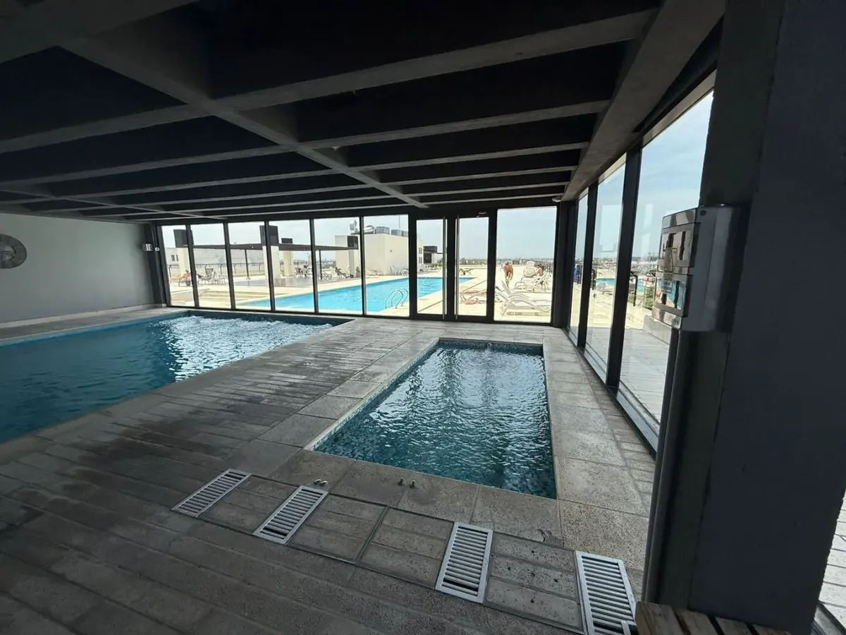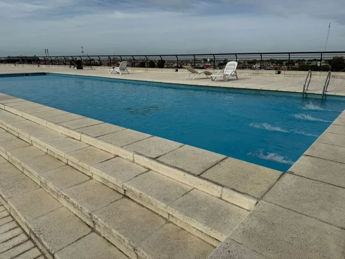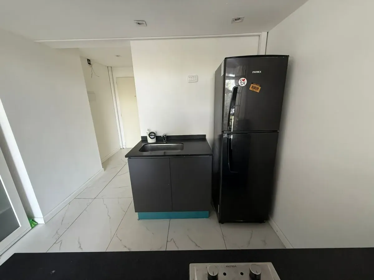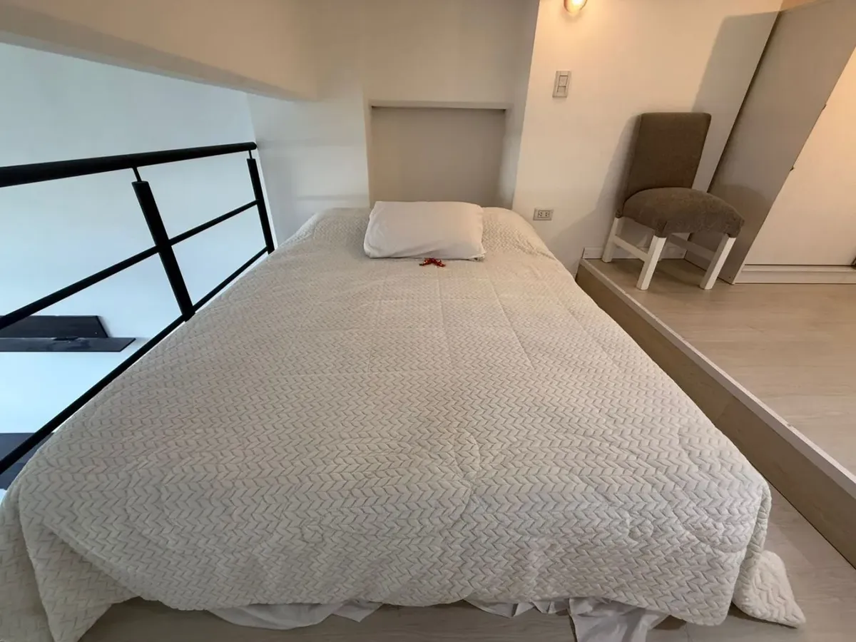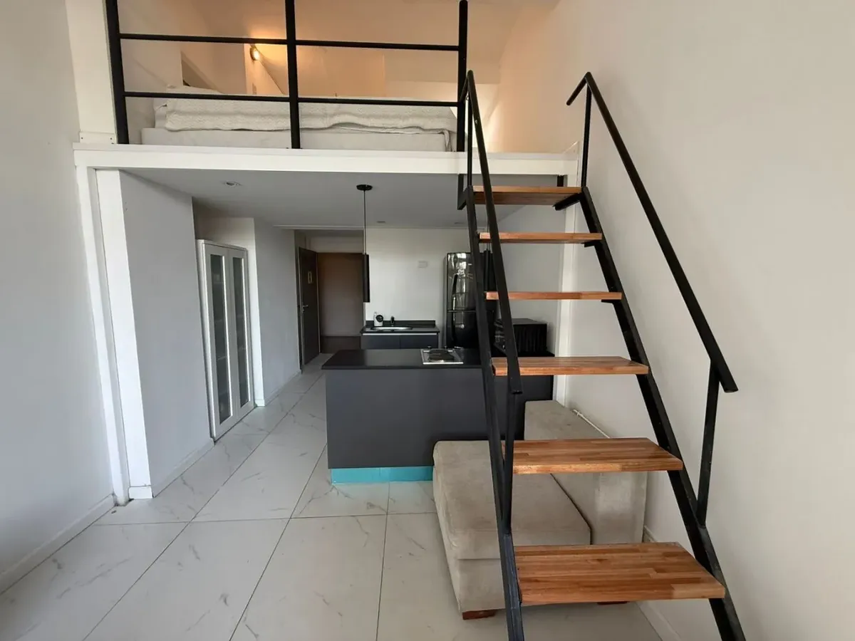 Kitnet mobiliada de 50 m² em Parque Chacabuco, com mezanino e varanda com vista. Inclui ar-condicionado frio/quente, cama de casal, armários, TV Smart HD de 40", sofá e cortinas screen e black-out. A cozinha tem forno e fogão elétricos e geladeira grande com freezer. O prédio Terrazas de Volcán oferece 4 piscinas (2 aquecidas e 2 externas), área de churrasco e solário, pista de corrida, academia com vestiários, saunas (feminina e masculina), laundry em 3 andares, salão de festas com internet pró