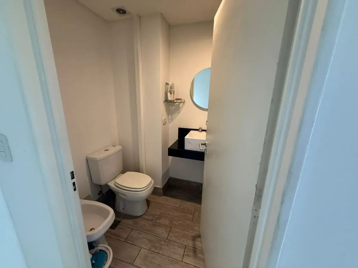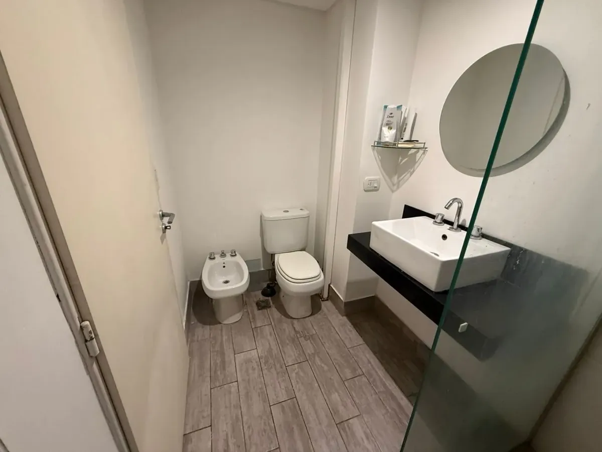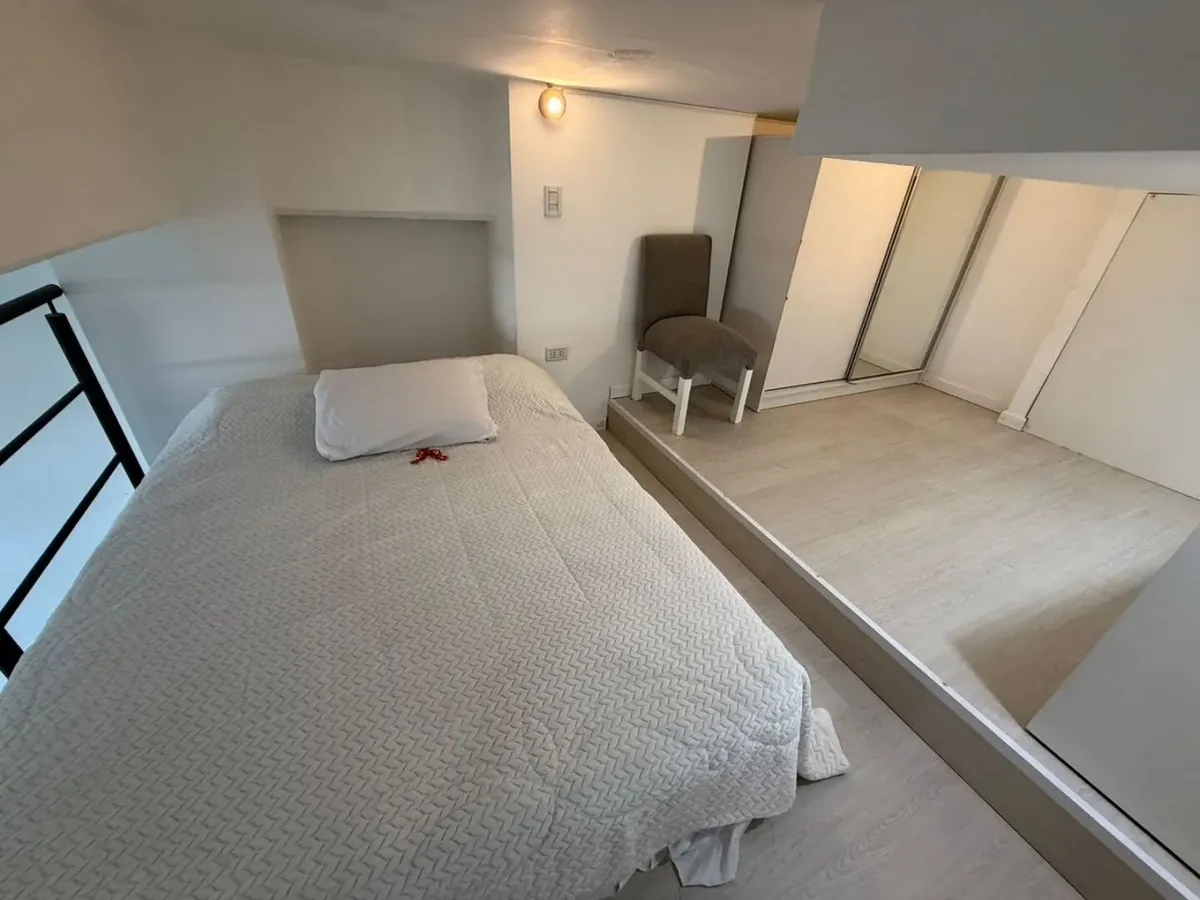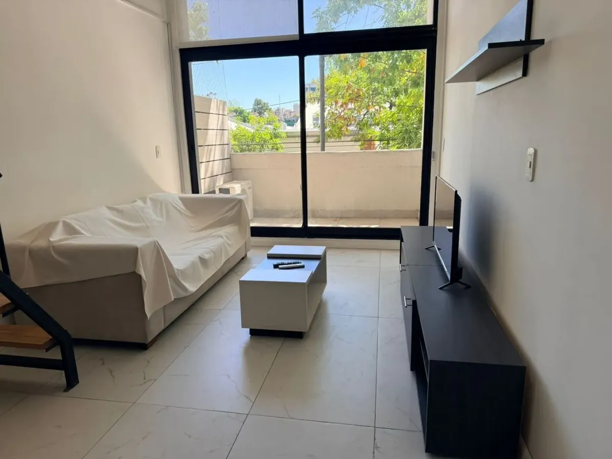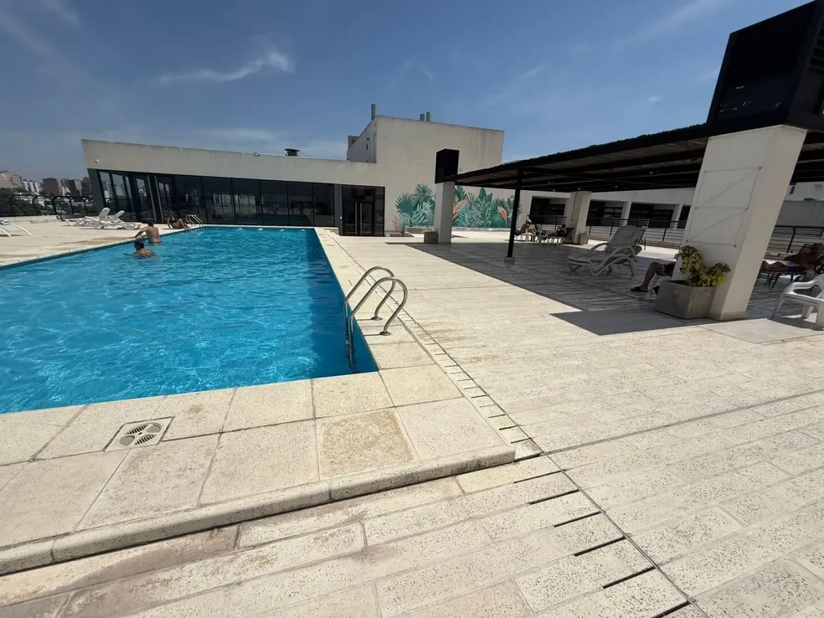 Kitnet mobiliada de 50 m² em Parque Chacabuco, com mezanino e varanda com vista. Inclui ar-condicionado frio/quente, cama de casal, armários, TV Smart HD de 40", sofá e cortinas screen e black-out. A cozinha tem forno e fogão elétricos e geladeira grande com freezer. O prédio Terrazas de Volcán oferece 4 piscinas (2 aquecidas e 2 externas), área de churrasco e solário, pista de corrida, academia com vestiários, saunas (feminina e masculina), laundry em 3 andares, salão de festas com internet pró
