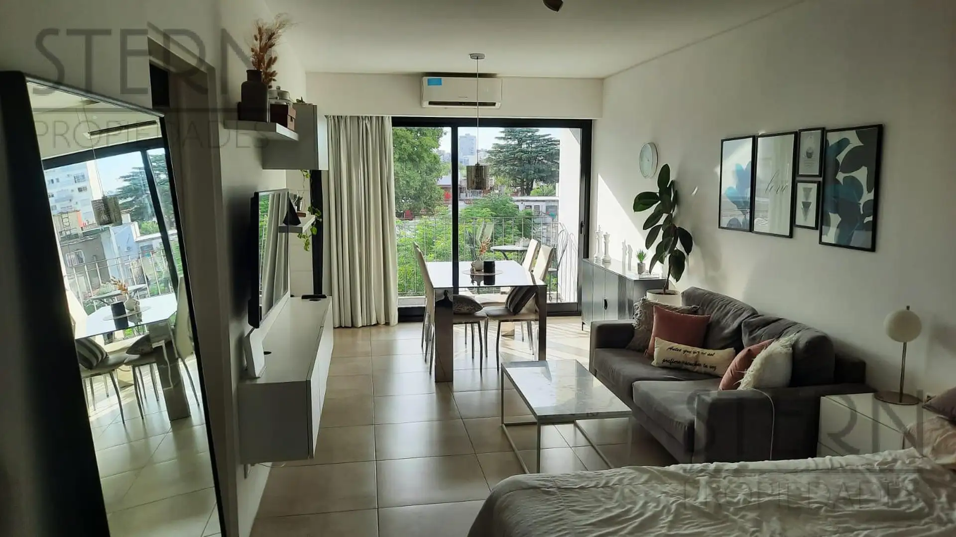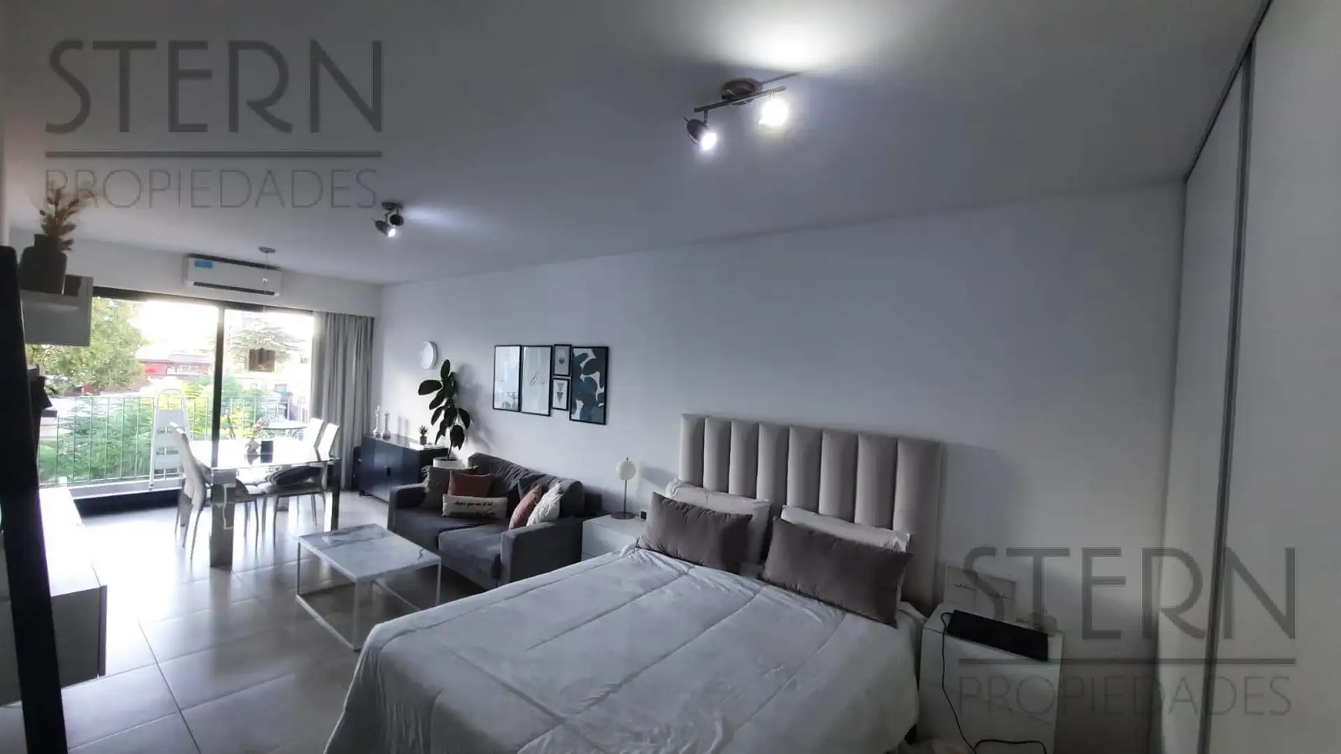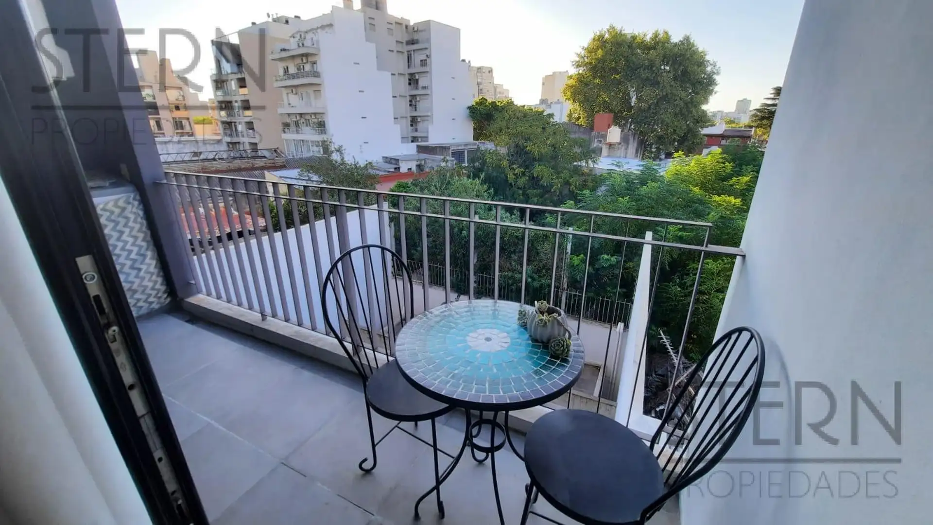Kitnet de 36 m² totais, no 2º andar, de fundos (contrafrente), com varanda. Silenciosa e com espaço para guardar bicicletas, com câmeras de segurança no prédio. Condomínio (expensas) inclui AYSA e Metrogas para a água quente central; ABL aproximado de $12.900. Fiança mediante garantia do proprietário ou seguro de caución; exige comprovante de renda de 3 vezes o valor do aluguel.