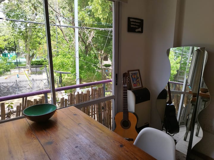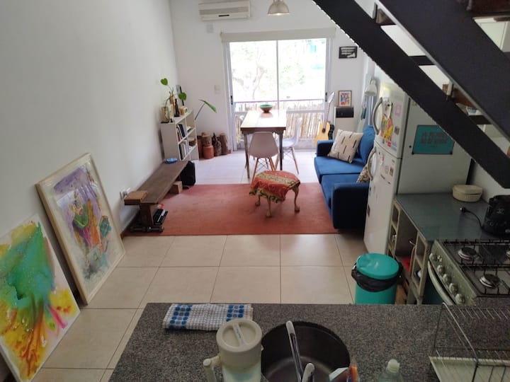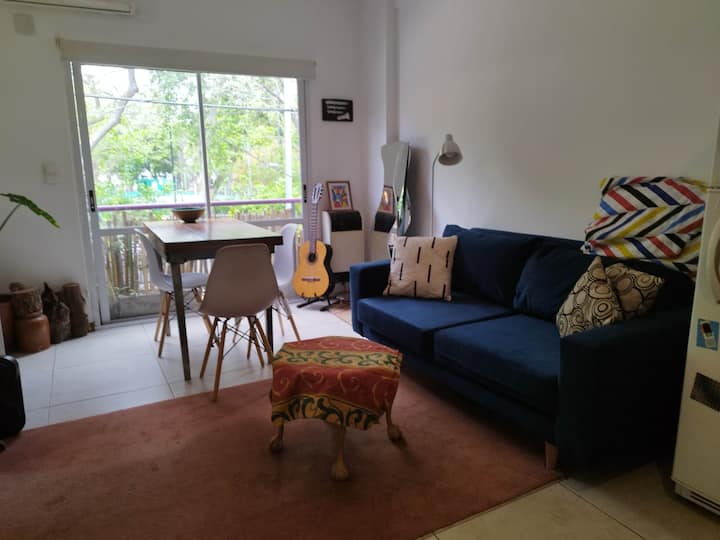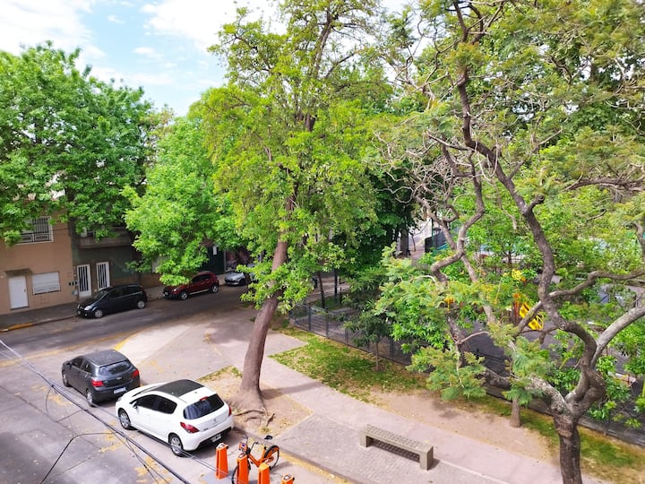 Apartamento em Parque Chas com 1 quarto. Conexão de internet de 300 mb, com ar-condicionado e aquecimento. Há cozinha e acesso a terraço. No terraço semicoberto, existe um espaço extra para escritório ou para exercícios.