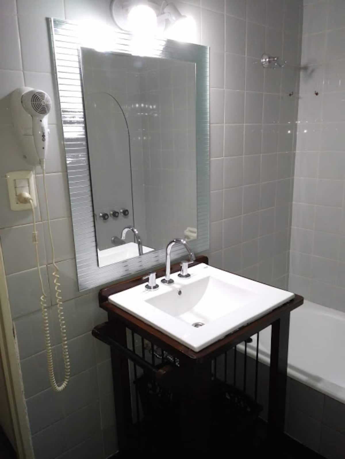Apartamento de dois ambientes com 57 m² em Monserrat. Está dividido em 2 ambientes, com cozinha e banheiro, com vista aberta e boa luminosidade. Tem ar-condicionado e itens de uso doméstico como geladeira/freezer, fogão e micro-ondas. Há TV (TDA), internet Wi-Fi e segurança 24 horas.