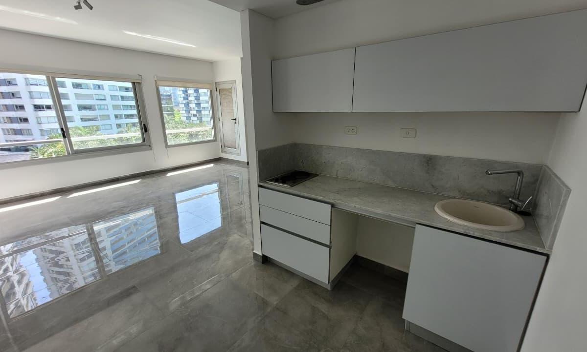 Kitnet de 47 m² no complexo Zencity, na Torre Ónix, em Puerto Madero. A unidade foi totalmente reformada, com piso em porcelanato. O imóvel tem vaga de garagem e vista para a área de piscina. O complexo Zencity oferece piscinas com hidromassagem e cascatas, solário com bar em funcionamento, academia equipada, salão de usos múltiplos (SUM), segurança 24 h, além de espaços recreativos para crianças.
