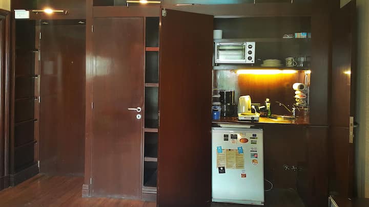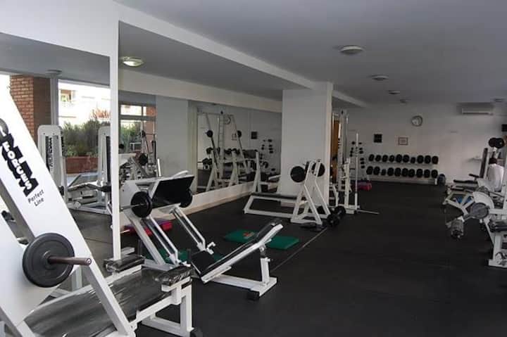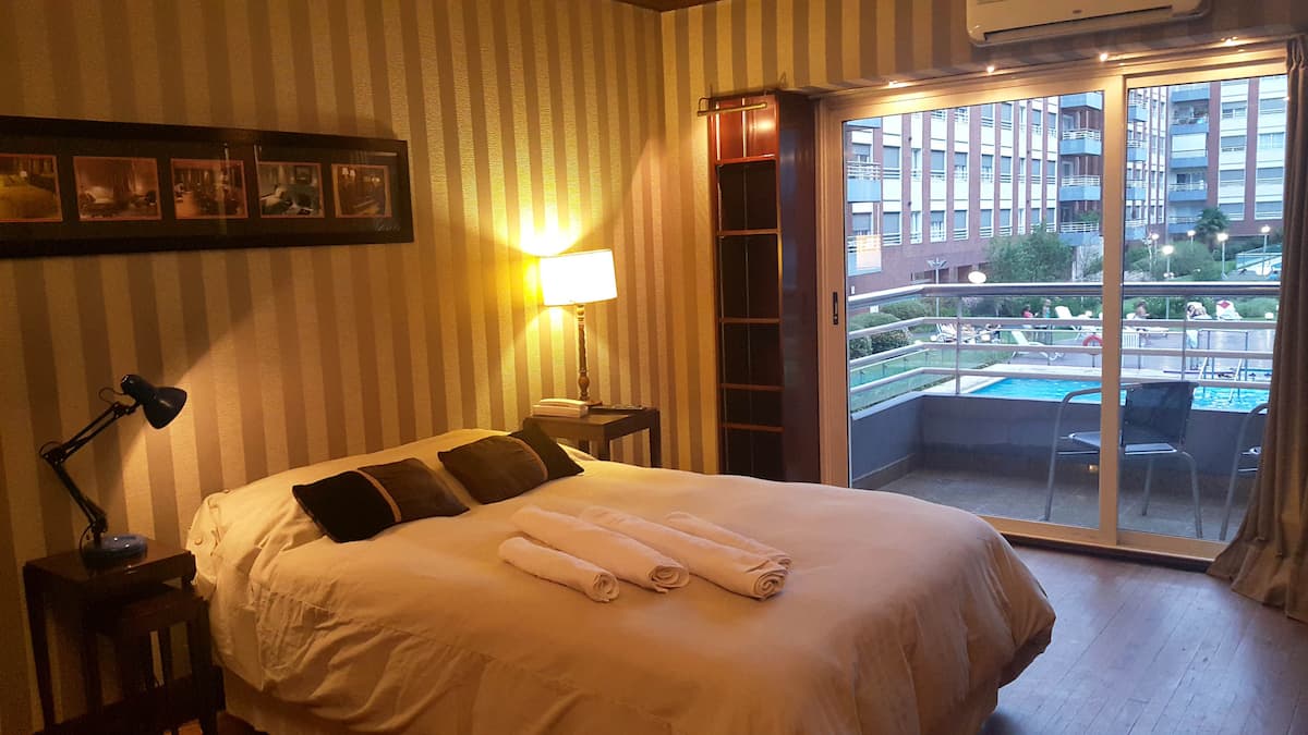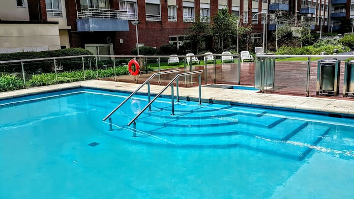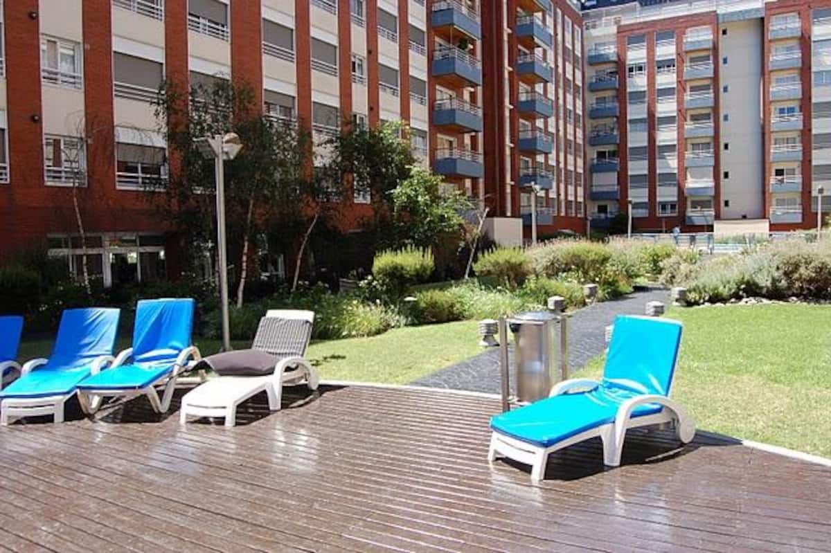 Apartamento em Puerto Madero com 40 m² e 1 quarto, com varanda. Cozinha embutida e 1 banheiro. O prédio tem 2 piscinas, jardim, solário, academia, lavanderia, salão de festas, sauna e vigilância 24 horas. Inclui TV a cabo, Wi-Fi, ar-condicionado e aquecimento central.