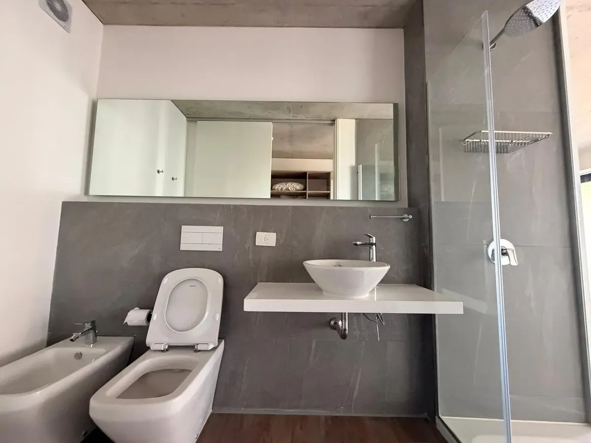 Apartamento de dois ambientes para aluguel tradicional em Puerto Madero, sem mobília, com 1 dormitório em suíte com closet. Conta com sala de estar e jantar integradas, cozinha semi-integrada com armários sob a bancada e saída para a varanda, além de lavabo de recepção. Inclui vaga de garagem fixa e coberta e acesso às áreas comuns do Quartier del Bajo, que reúne piscina, salão de festas (SUM), área de churrasco, piscina aquecida/ climatizada, academia, sauna, sala de massagens, hidromassagens,