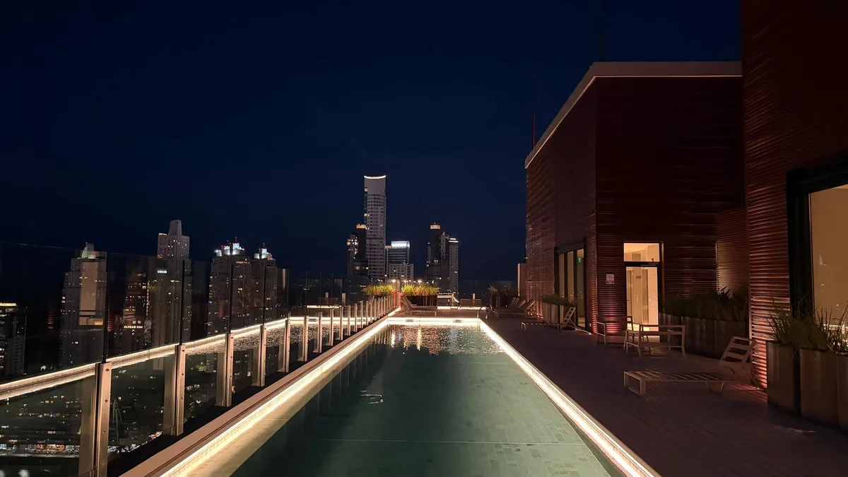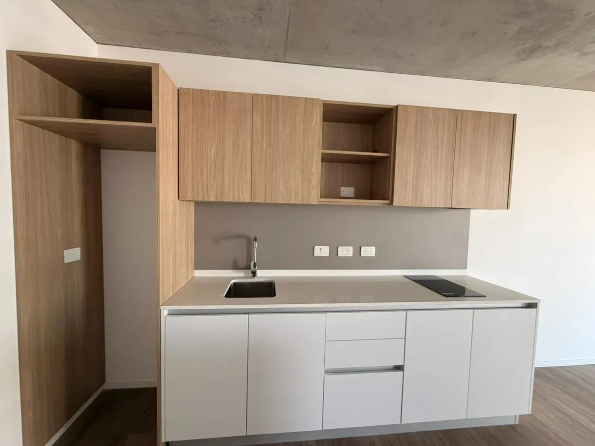 Apartamento de dois ambientes para aluguel tradicional, sem mobília, com 1 dormitório em suíte e closet. Sala de estar e jantar integrada à cozinha, com saída para a varanda, além de lavabo de recepção. Cozinha semi-integrada com armários na parte inferior e vaga de garagem (fixa e coberta). O prédio em Quartier del Bajo oferece piscina, salão de festas (SUM), área de churrasco, piscina aquecida, academia, sauna, sala de massagens, hidromassagem, lavanderia e segurança 24 horas.