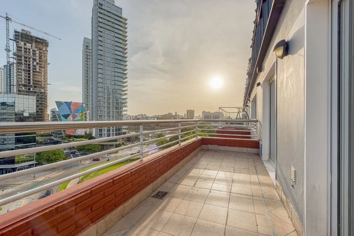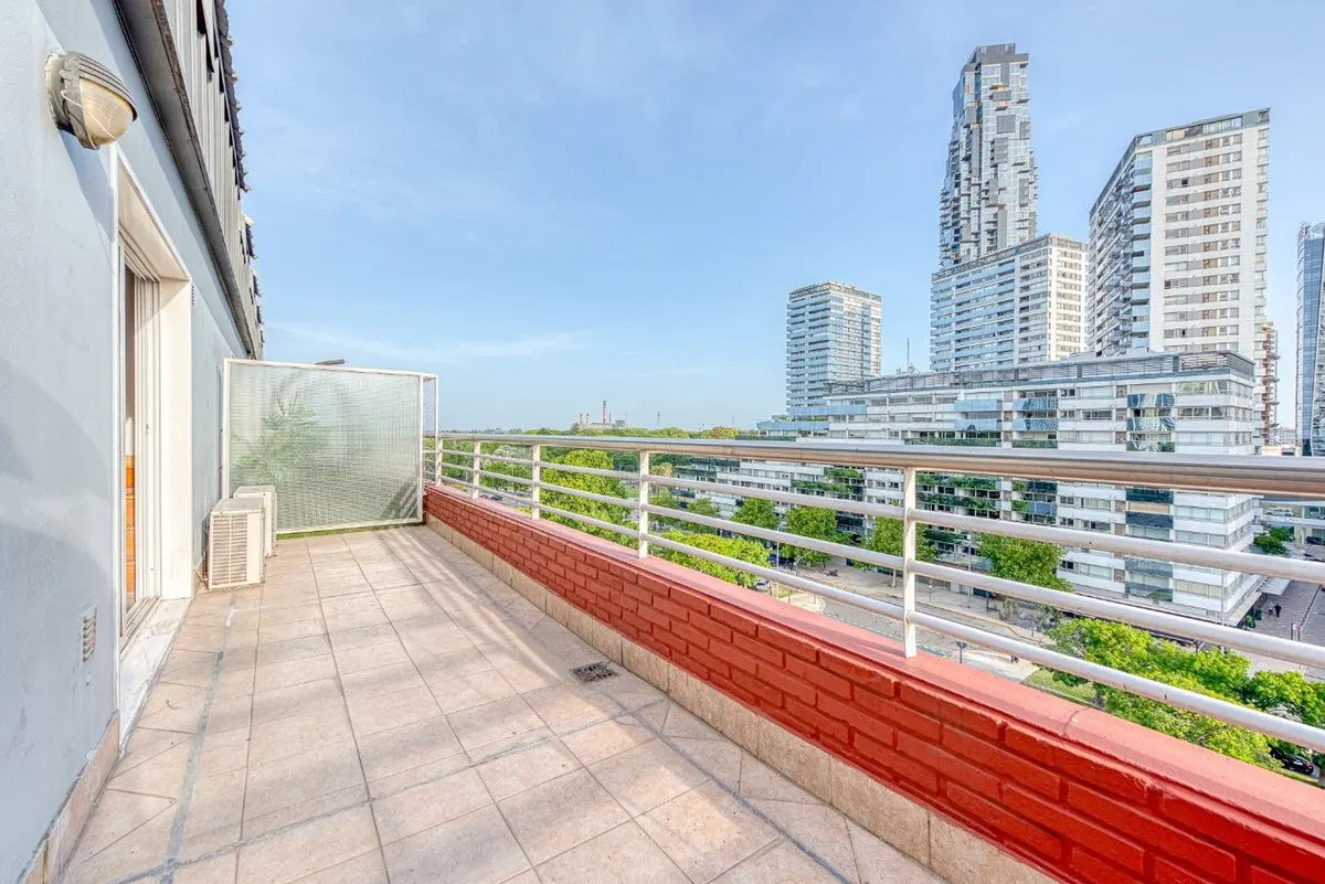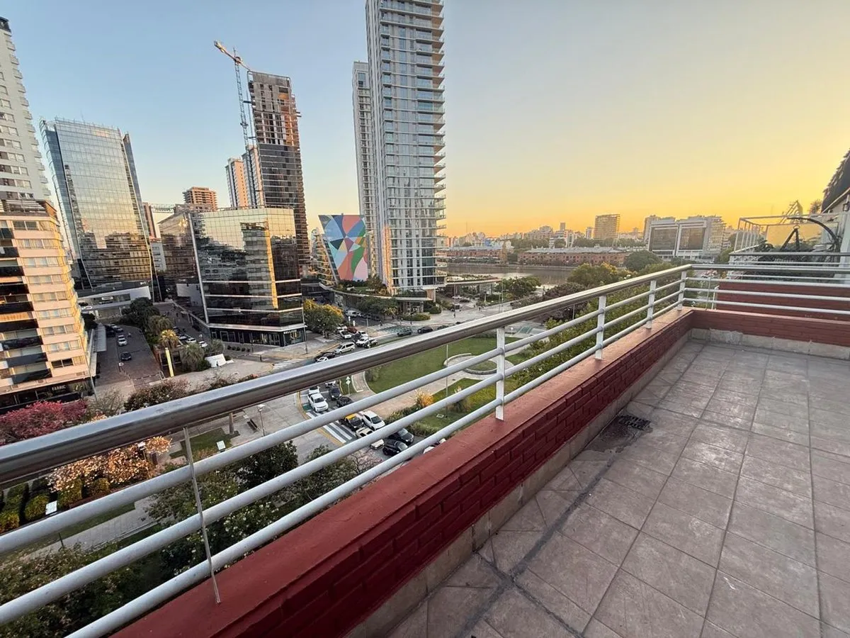 Apartamento duplex de 2 ambientes em Puerto Madero, no complexo Terrazas de Puerto Madero, com 1 dormitório em suíte. Possui living com pé-direito duplo e janelas amplas, cozinha integrada, lavabo e banheiro completo. Inclui varanda/terraço com vista aberta e vaga de garagem. O complexo oferece piscina ao ar livre, academia equipada, salão de festas, sauna, segurança 24 horas e jardins internos, além de espaços verdes. O aluguel é acrescido de condomínio, serviços e ABL.