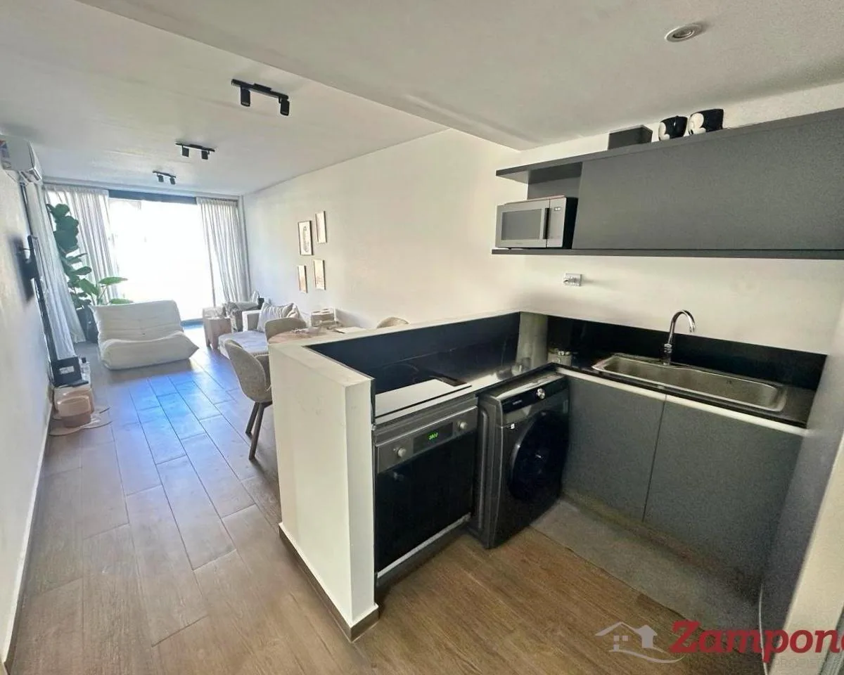 Apartamento de dois ambientes (1 quarto) sem mobília em Puerto Madero, com varanda de frente, orientação leste e 1 suíte. Conta com sala de jantar integrada, cozinha elétrica com barra em L e espaço para máquina de lavar roupa, além de lavabo. Tem ar-condicionado frio/calor. Inclui vaga de garagem (fixa) coberta no subsolo. O condomínio informa piscina, academia, laundry, salão de festas (SUM), solarium, sala de jogos e áreas no rooftop com churrasqueira e área de estar, além de vigilância e enc