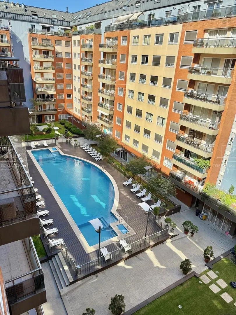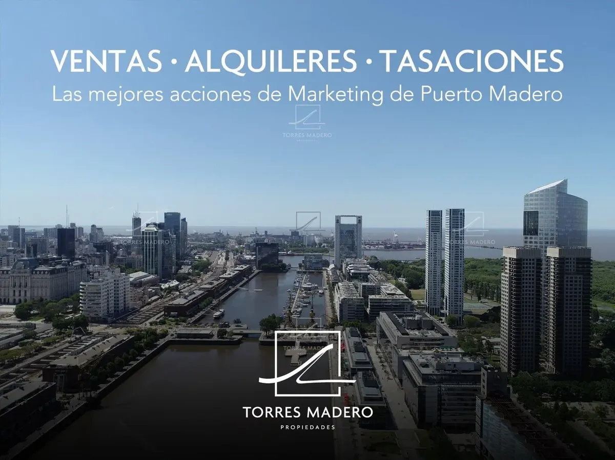 Apartamento de 1 dormitório e 1 banheiro, com vaga de garagem fixa coberta, em Terrazas del Dique, no Dique 3, em Juana Manso 1100, Puerto Madero. Contrato de 24 meses em dólares, com aluguel e condomínio (expensas) incluídos no valor anunciado. Ar-condicionado em cada ambiente; janelas voltadas para o lado leste e vista aberta para Juana Manso. O complexo dispõe de piscina (para adultos e crianças, com aquecimento), jardim privativo, academia, sauna, salão de festas (SUM), lavanderia e seguranç
