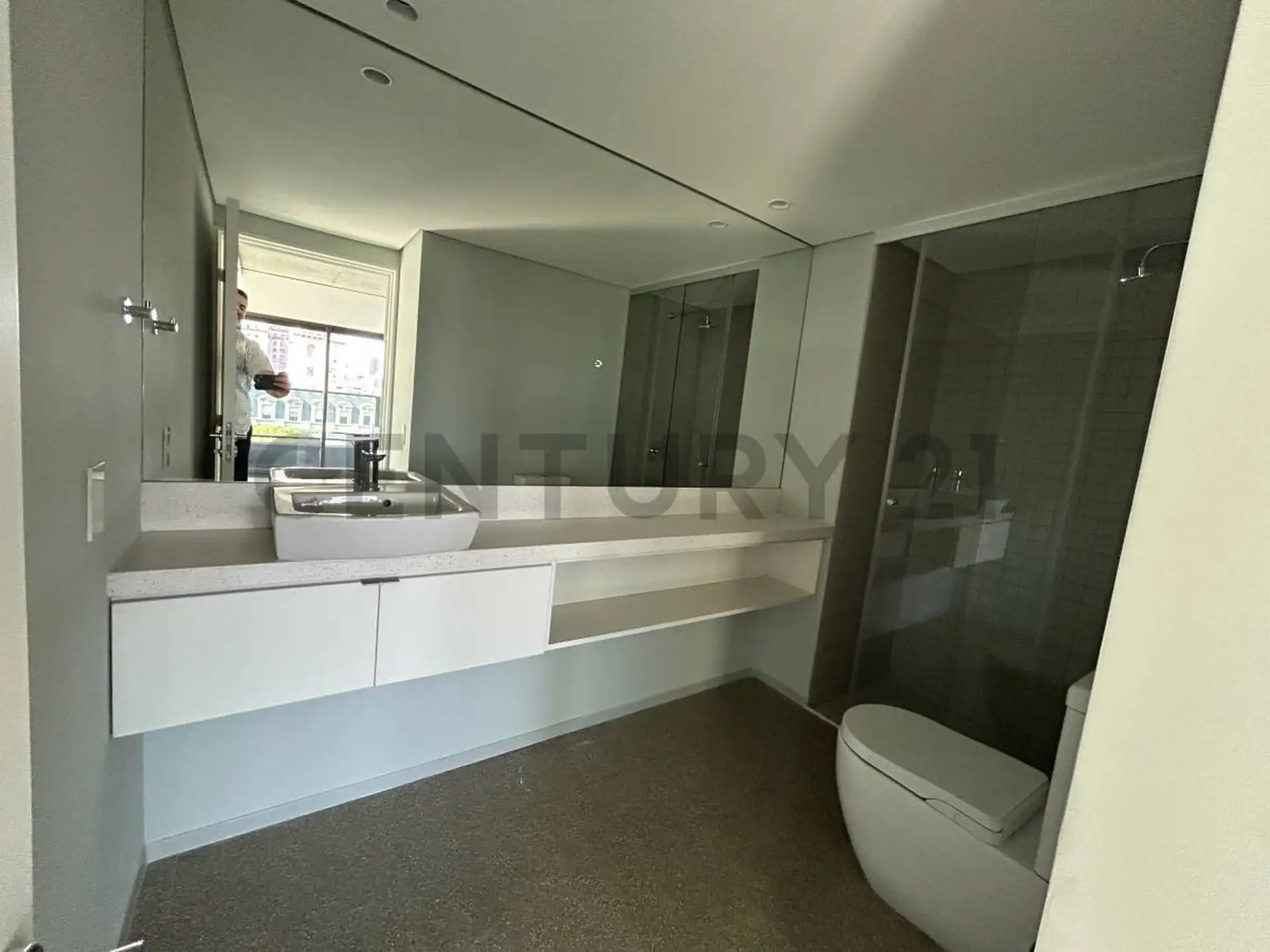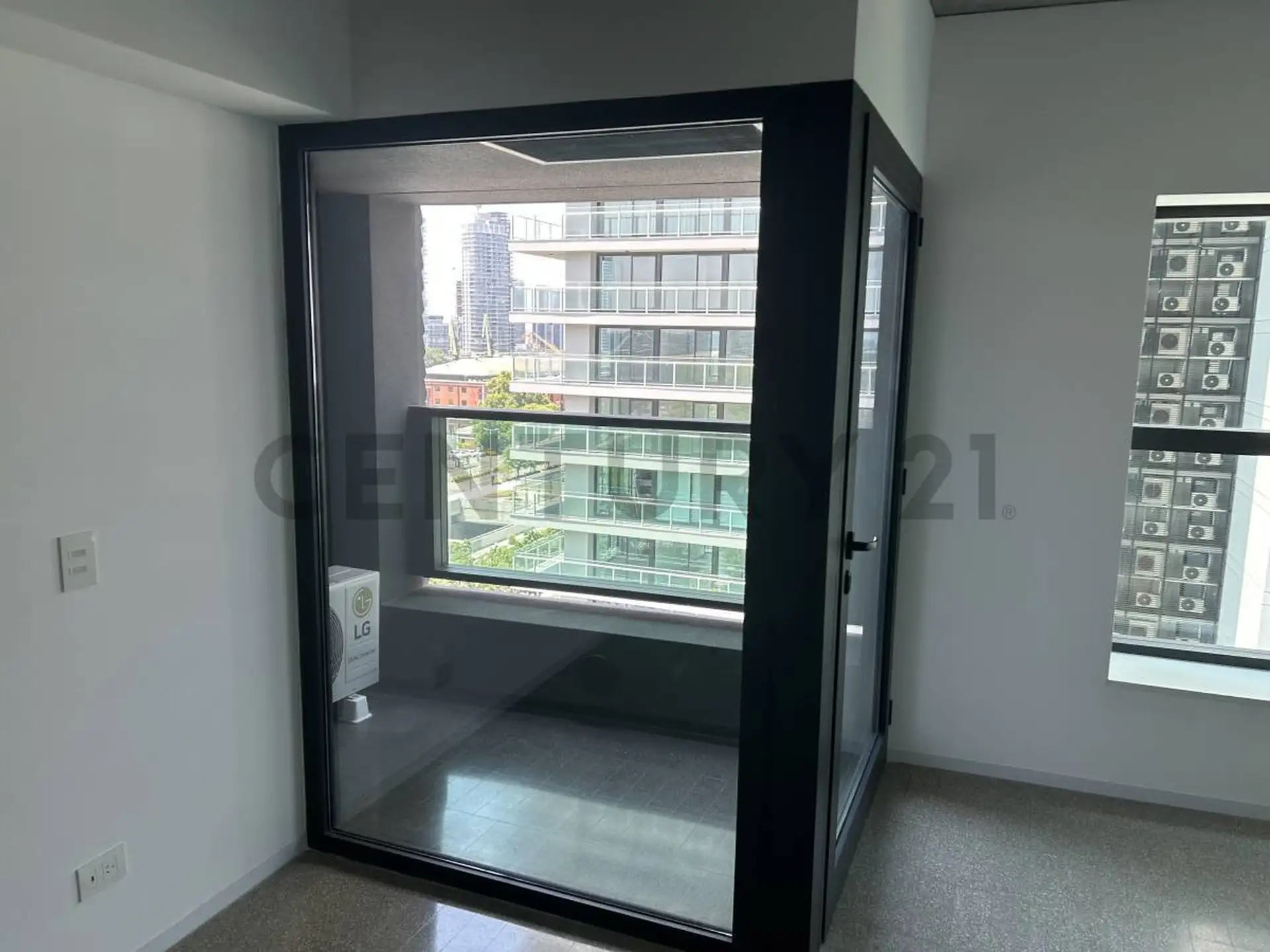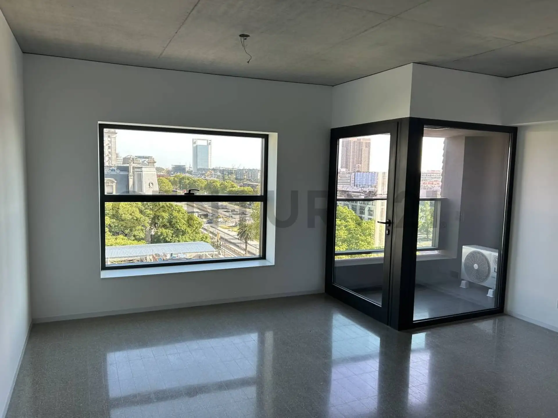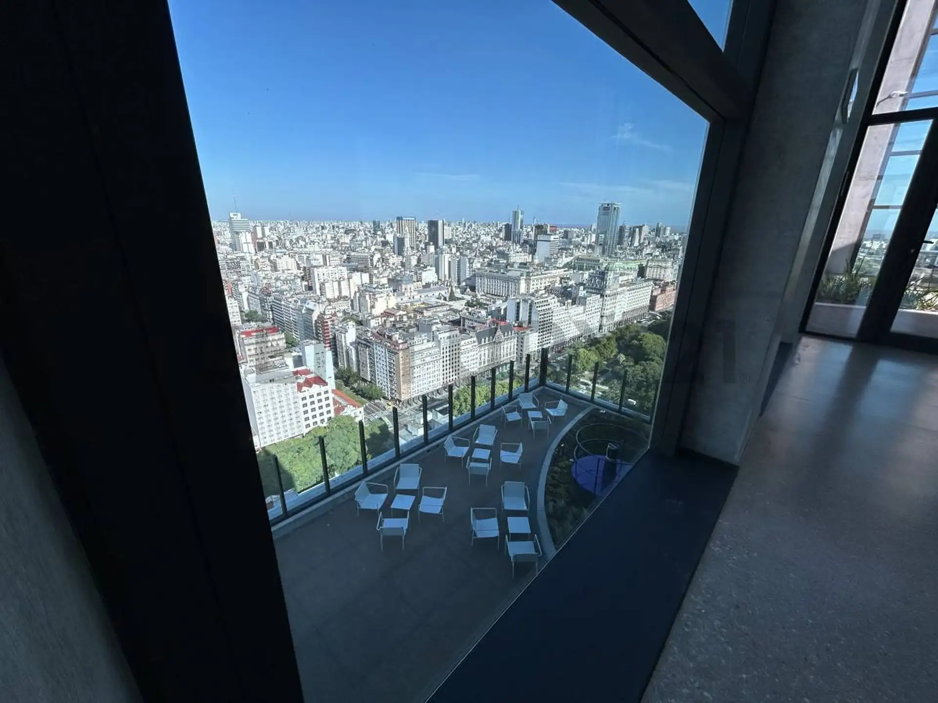 Apartamento em Puerto Madero com 1 quarto. Acabamentos incluem esquadrias de alumínio com janelas DVH e pisos internos em mosaico granítico pré-polido. Banheiros com revestimento cerâmico no box de ducha, louças e metais monocomando, além de espelho no lavatório; cozinhas com bancadas e revestimentos em quartzo tipo Silestone Branco Norte.