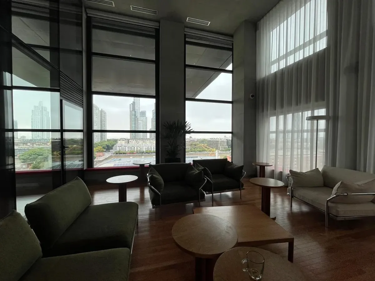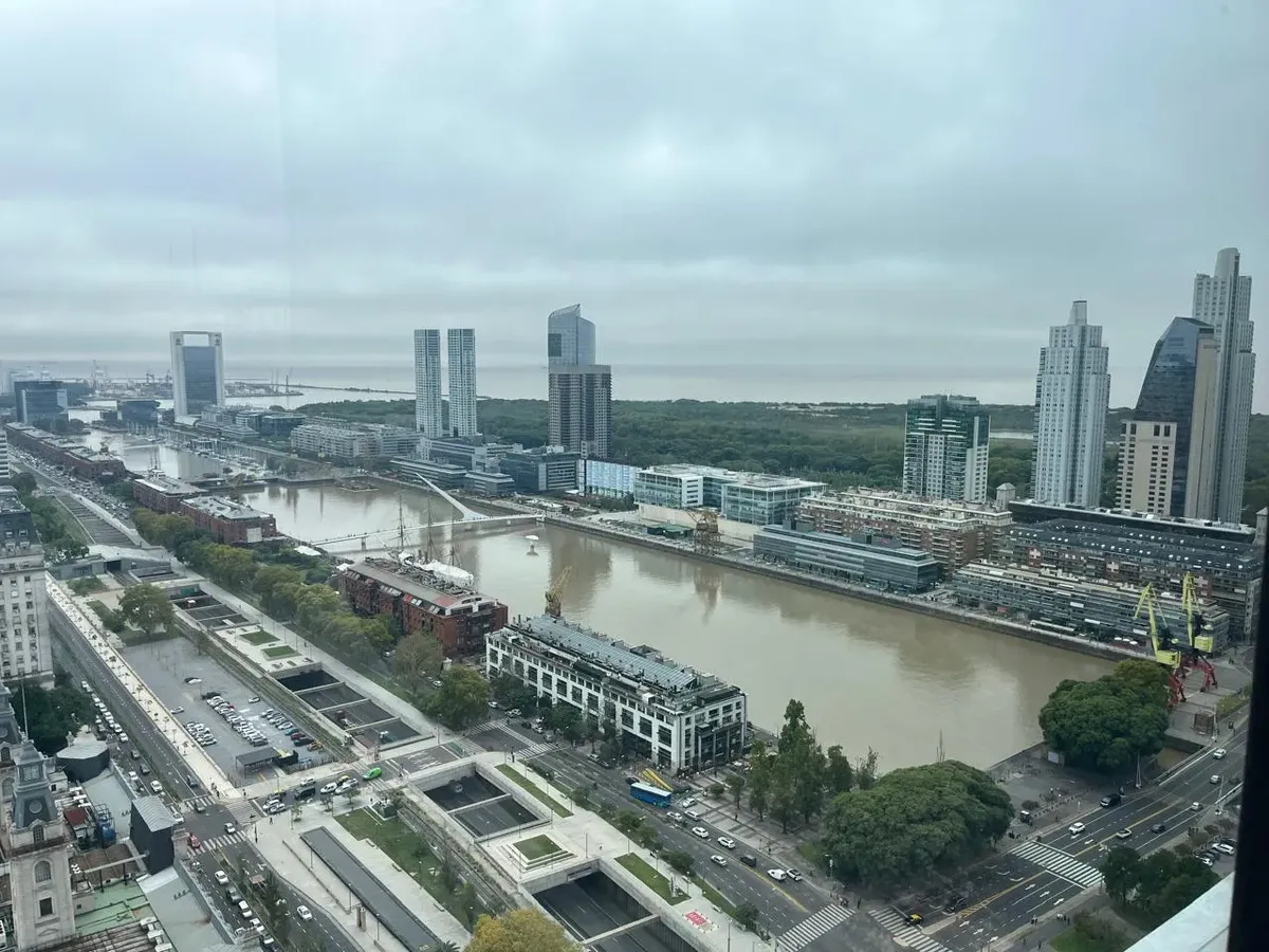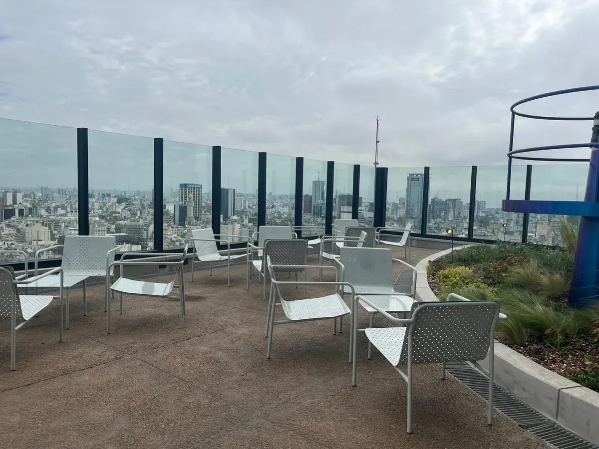 Apartamento de 2 ambientes novo (nunca habitado) em Puerto Madero, com 1 quarto em suíte. Sala de estar e jantar com cozinha integrada e varanda privativa com vista para a rua Venezuela. O edifício conta com mais de 1500 m² de áreas comuns, incluindo academia, sala de yoga, pista de running, rooftop com piscina aquecida, terraço com área de churrasco e mirantes, biblioteca e salas de estudo, coworking, lavanderia e salão de festas em dois níveis com playroom e terraço. Aluguel por 1100 USD, com