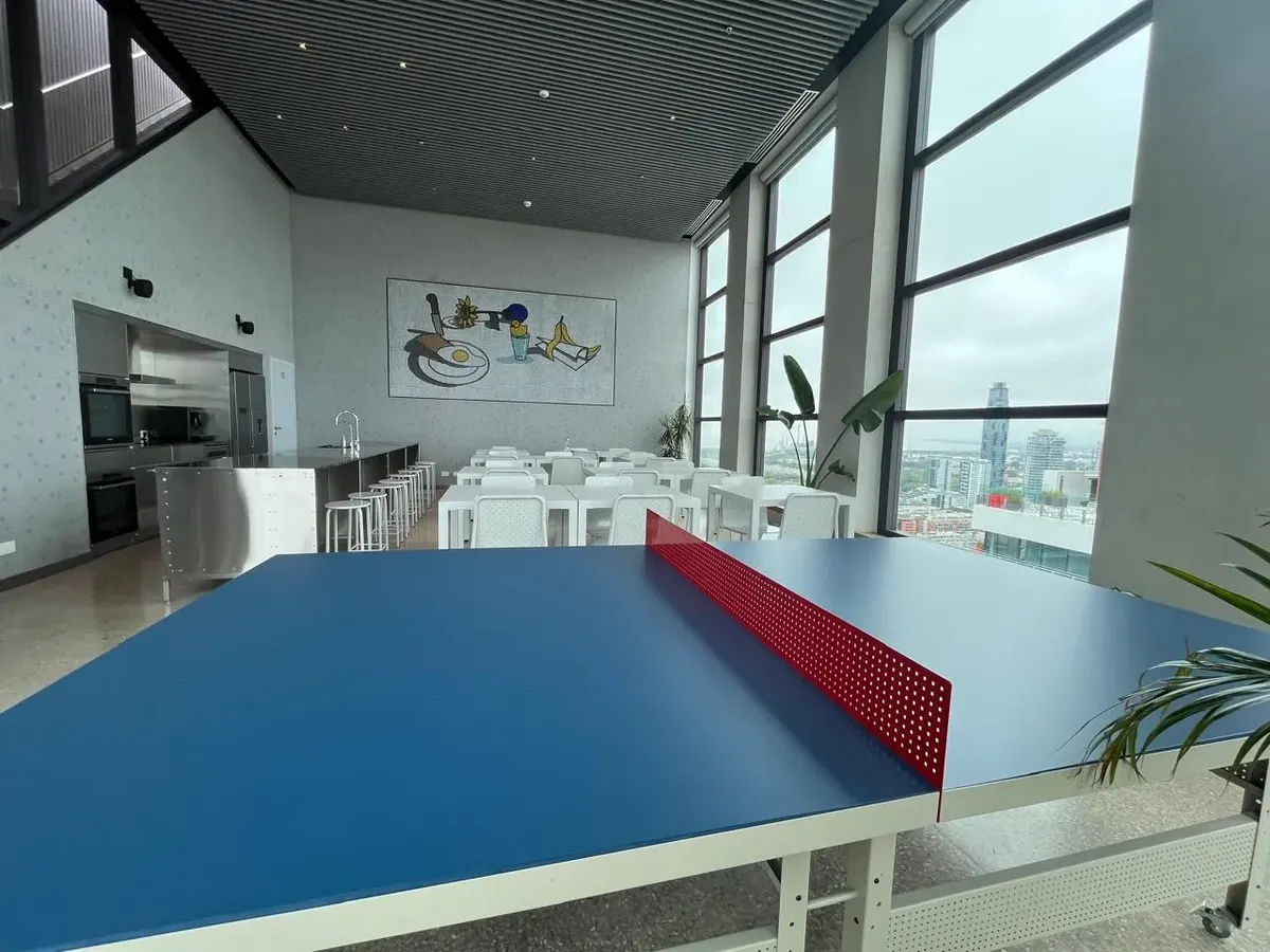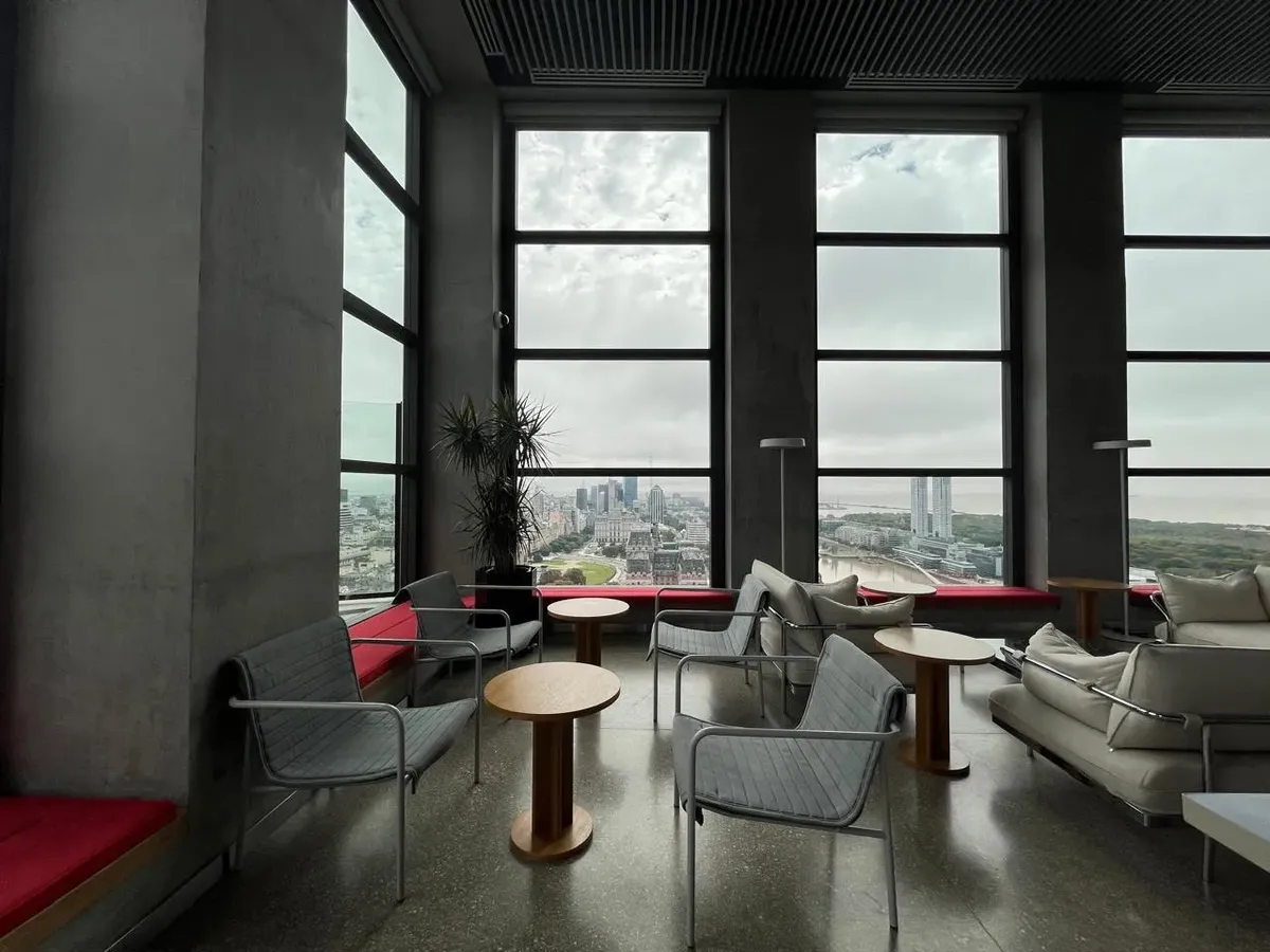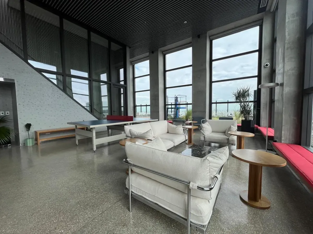 Apartamento de 2 ambientes novo (nunca habitado) em Puerto Madero, com 1 quarto em suíte. Sala de estar e jantar com cozinha integrada e varanda privativa com vista para a rua Venezuela. O edifício conta com mais de 1500 m² de áreas comuns, incluindo academia, sala de yoga, pista de running, rooftop com piscina aquecida, terraço com área de churrasco e mirantes, biblioteca e salas de estudo, coworking, lavanderia e salão de festas em dois níveis com playroom e terraço. Aluguel por 1100 USD, com