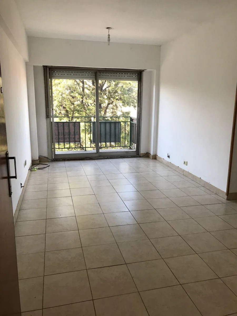 Apartamento de 2 ambientes com 1 quarto. Sala de estar e jantar com janela e acesso à varanda; cozinha independente com área de serviço e hall de distribuição com armário. Vista para a praça. Fica no centro de Quilmes, com comércios e transportes nas imediações.