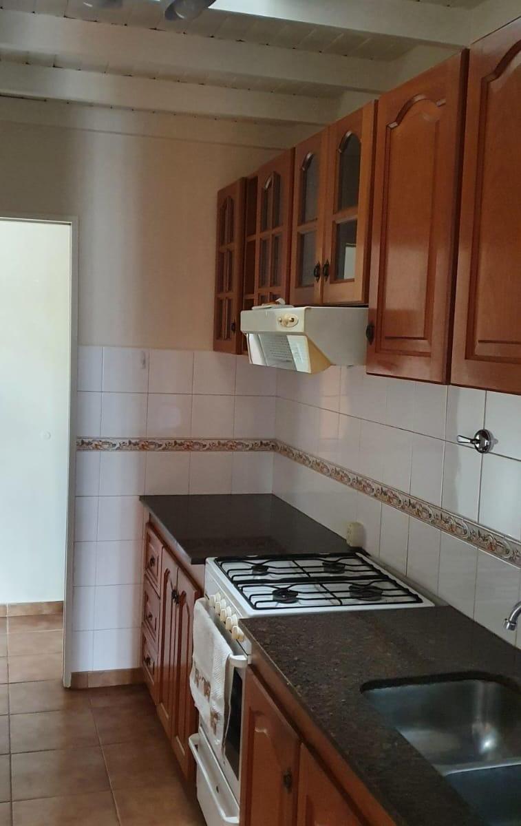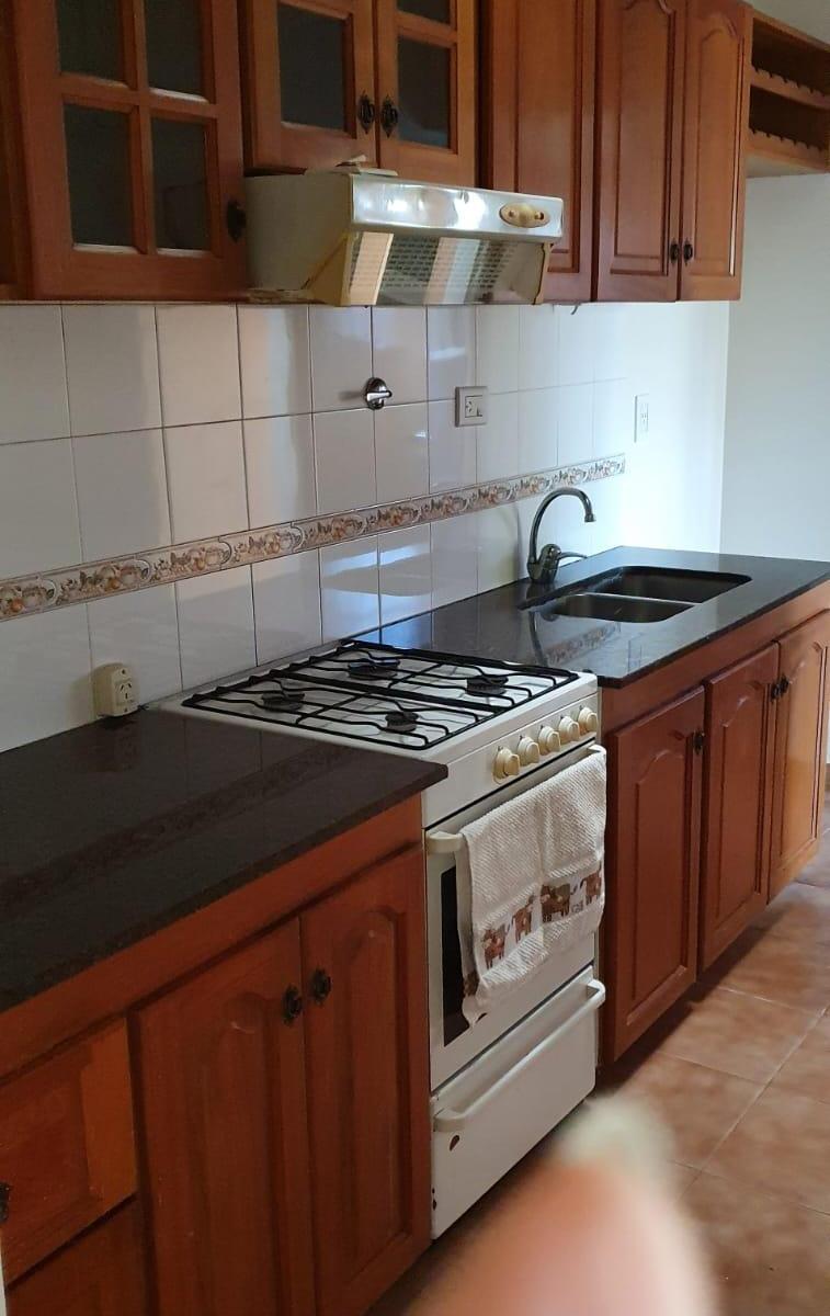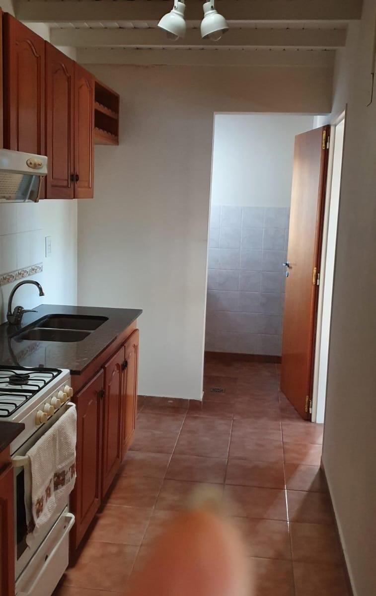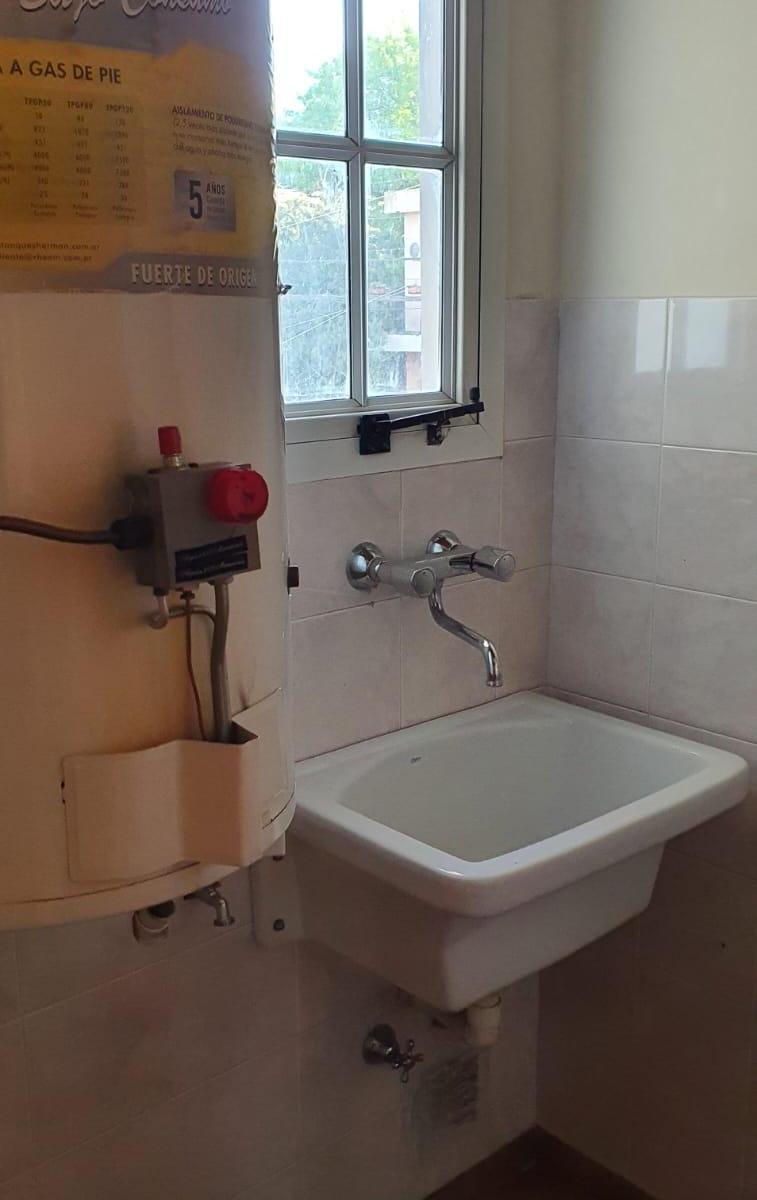 Apartamento de 2 ambientes com 1 quarto, varanda e vaga de garagem, no 1º andar por escada. Sala de estar/jantar, cozinha com armários completos e área de serviço independente, além de banheiro completo e quarto com armário. Aquecimento por estufa a tiro balanceado e ar-condicionado. O aluguel é de $ 550.000, reajustado a cada 3 meses pelo IPC, além de luz, gás e custos do condomínio e seguro contra incêndio. Exige comprovação de renda e garantia: proprietária ou 2 holerites que superem $ 2.200.