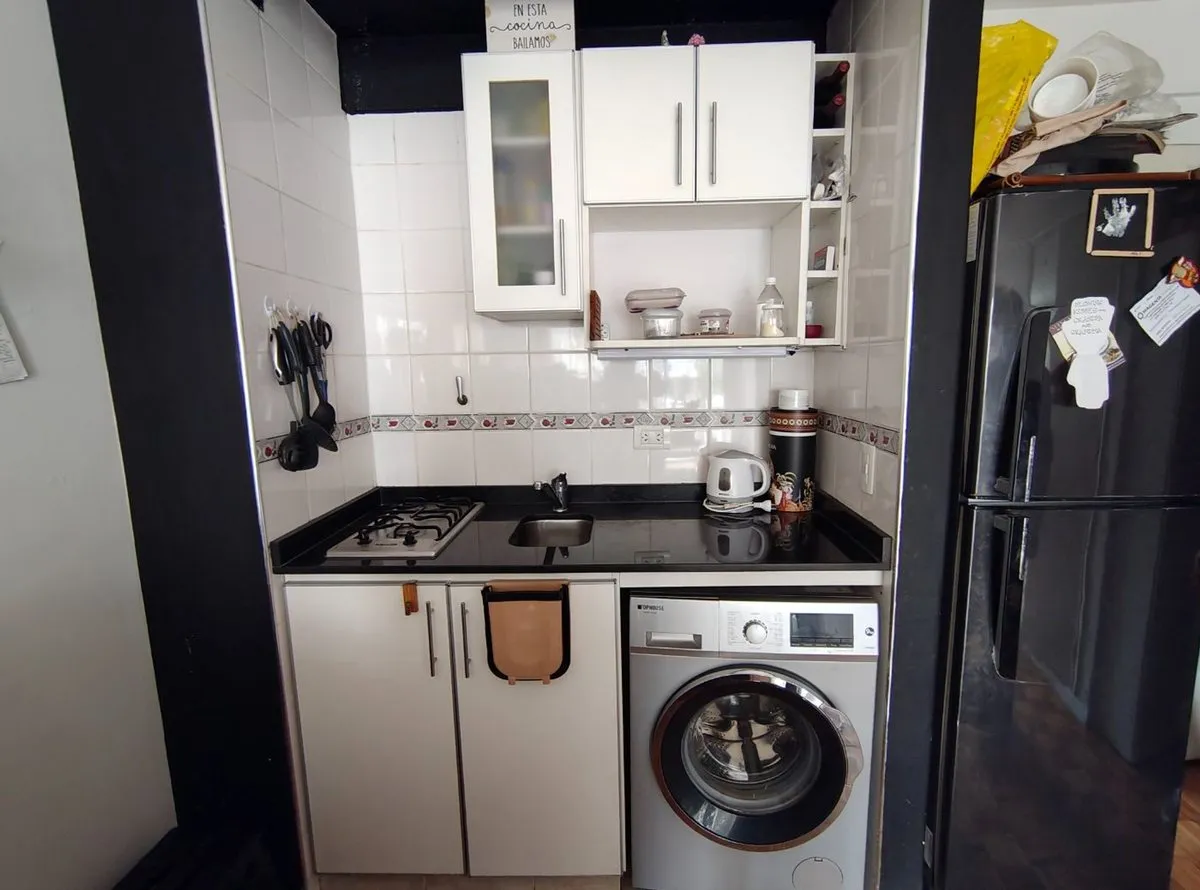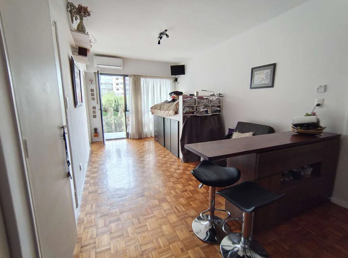Kitnet de 1 ambiente para alugar em Recoleta, com varanda. A unidade tem living/sala de jantar com saída para a varanda, cozinha integrada com barra tipo café da manhã, banheiro completo e armário embutido. Pode ser entregue com os móveis que aparecem na publicação, feitos sob medida.