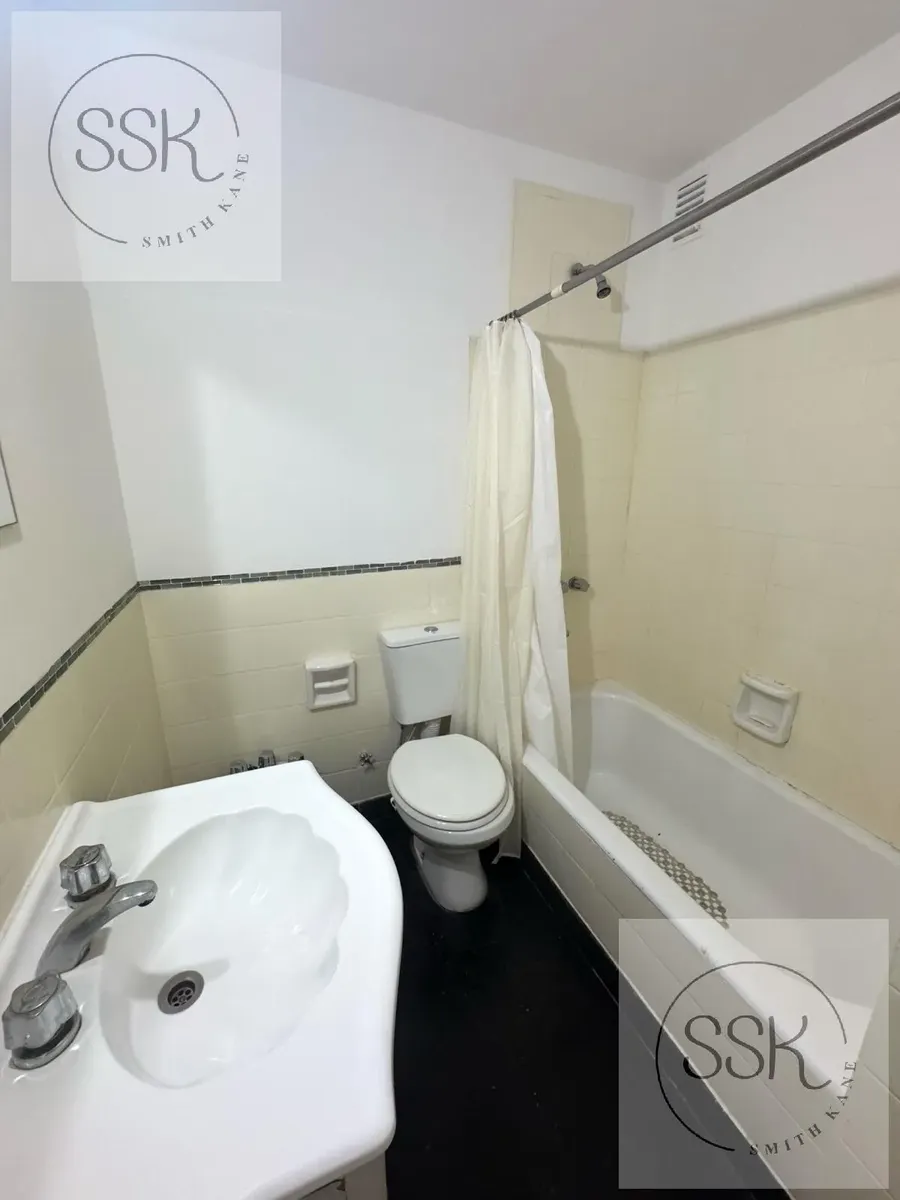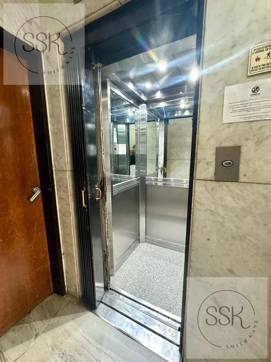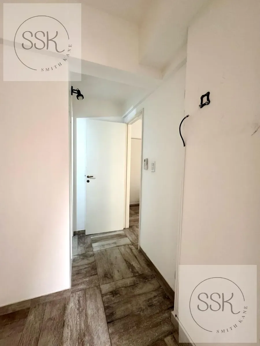 Apartamento mobiliado de 2 ambientes em Recoleta, no 1º andar, de frente para a rua Arenales, entre Larrea e Av. Pueyrredon, com 1 quarto. Conta com hall de entrada, sala com cozinha integrada, pátio de aproximadamente 3x3 m (formato irregular), hall de distribuição, dormitório com janela ampla e saída para o pátio e armário, além de 1 banheiro completo. Tem ar-condicionado em todos os ambientes, sistema elétrico, aquecimento por piso radiante, conexão para lavadora e água quente central. Condom
