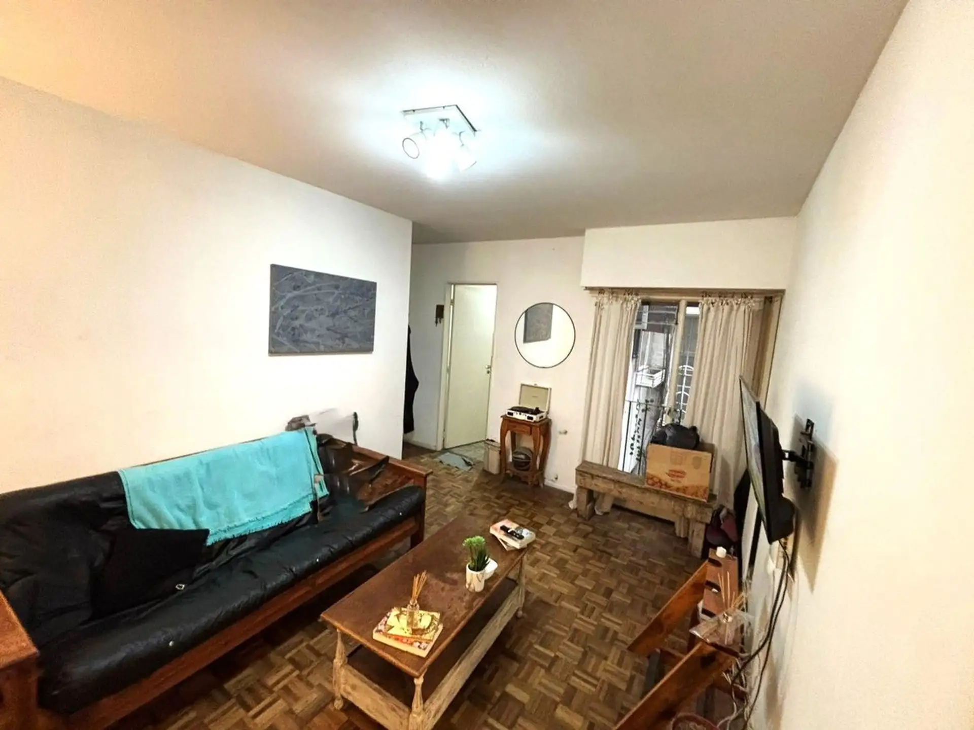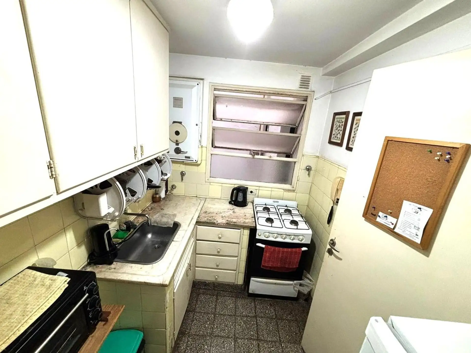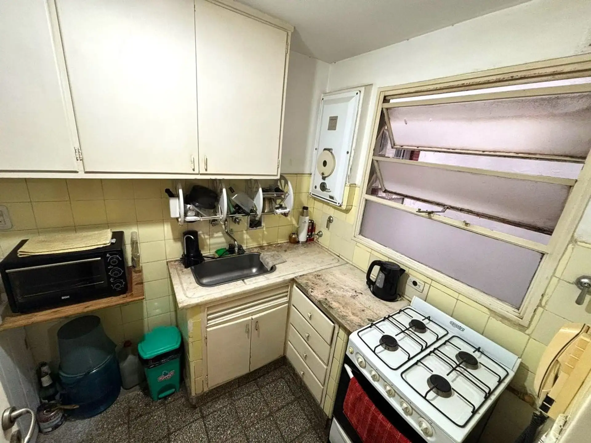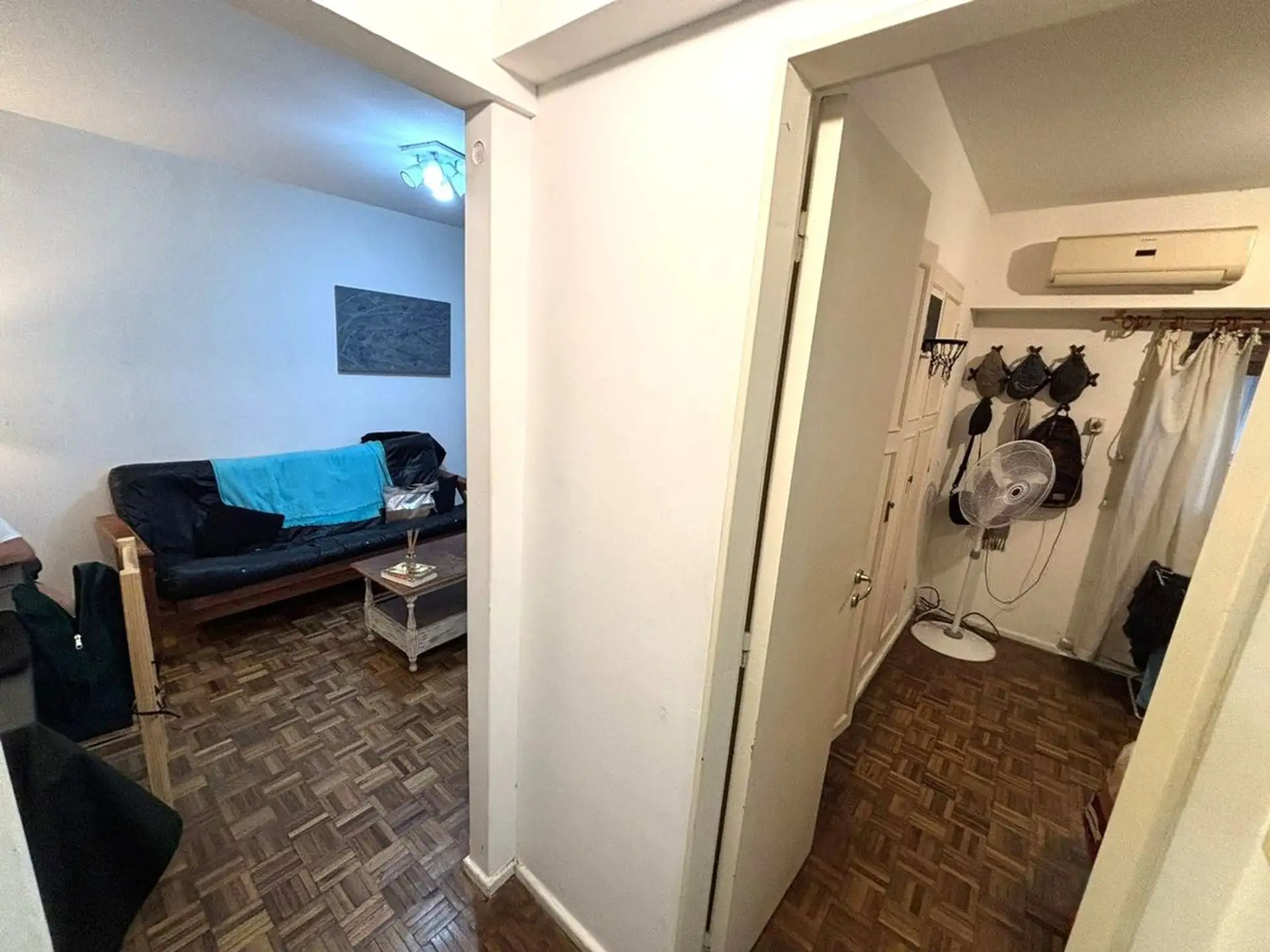 Apartamento de dois ambientes para aluguel na divisa entre Recoleta e Barrio Norte, em Av. Pueyrredón. A unidade fica de fundos (contrafrente), com todos os ambientes voltados para janelas e sala de estar e jantar com varanda francesa. Inclui quarto com armário embutido, ar-condicionado, banheiro completo com banheira e cozinha independente com espaço para máquina de lavar; é oferecido sem mobília. O prédio tem encarregado e elevador.