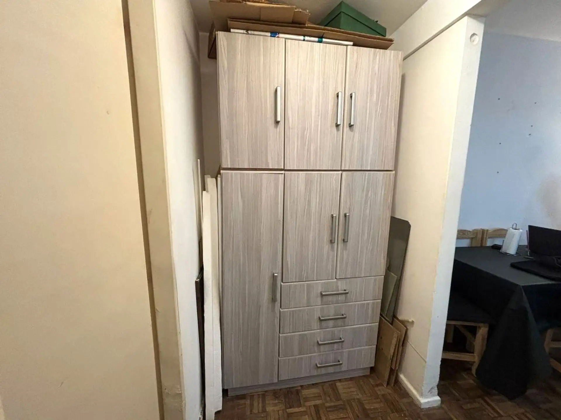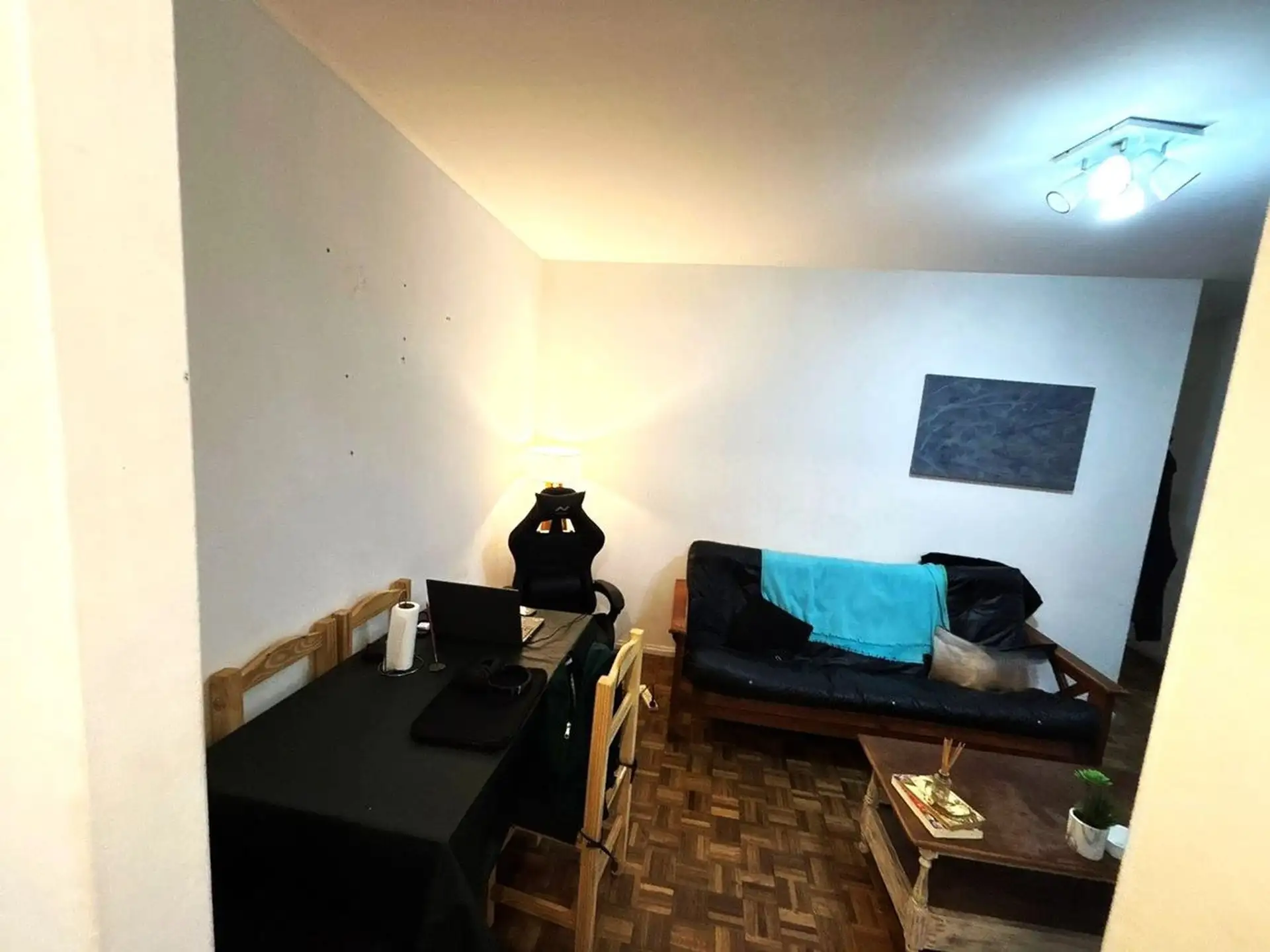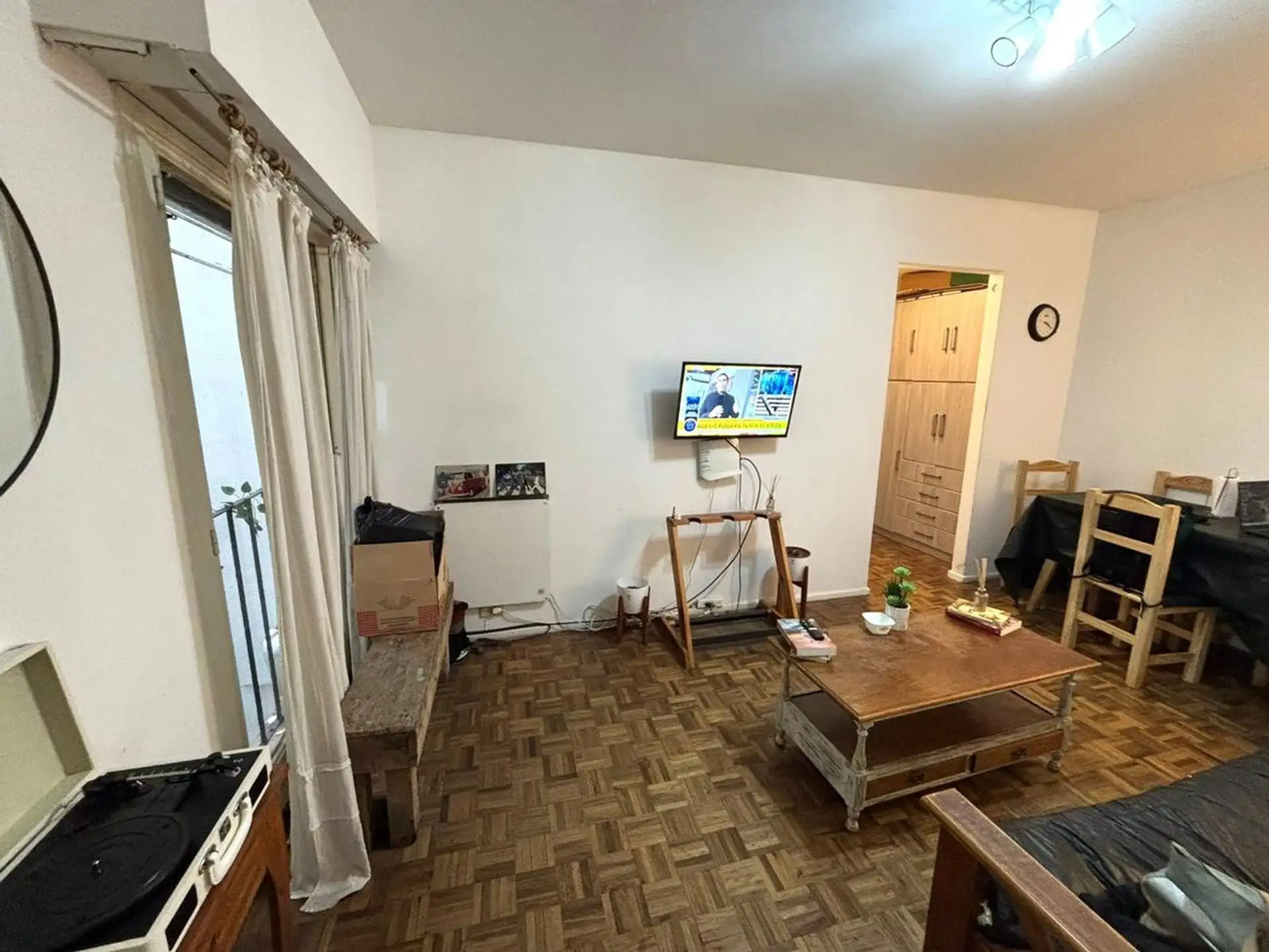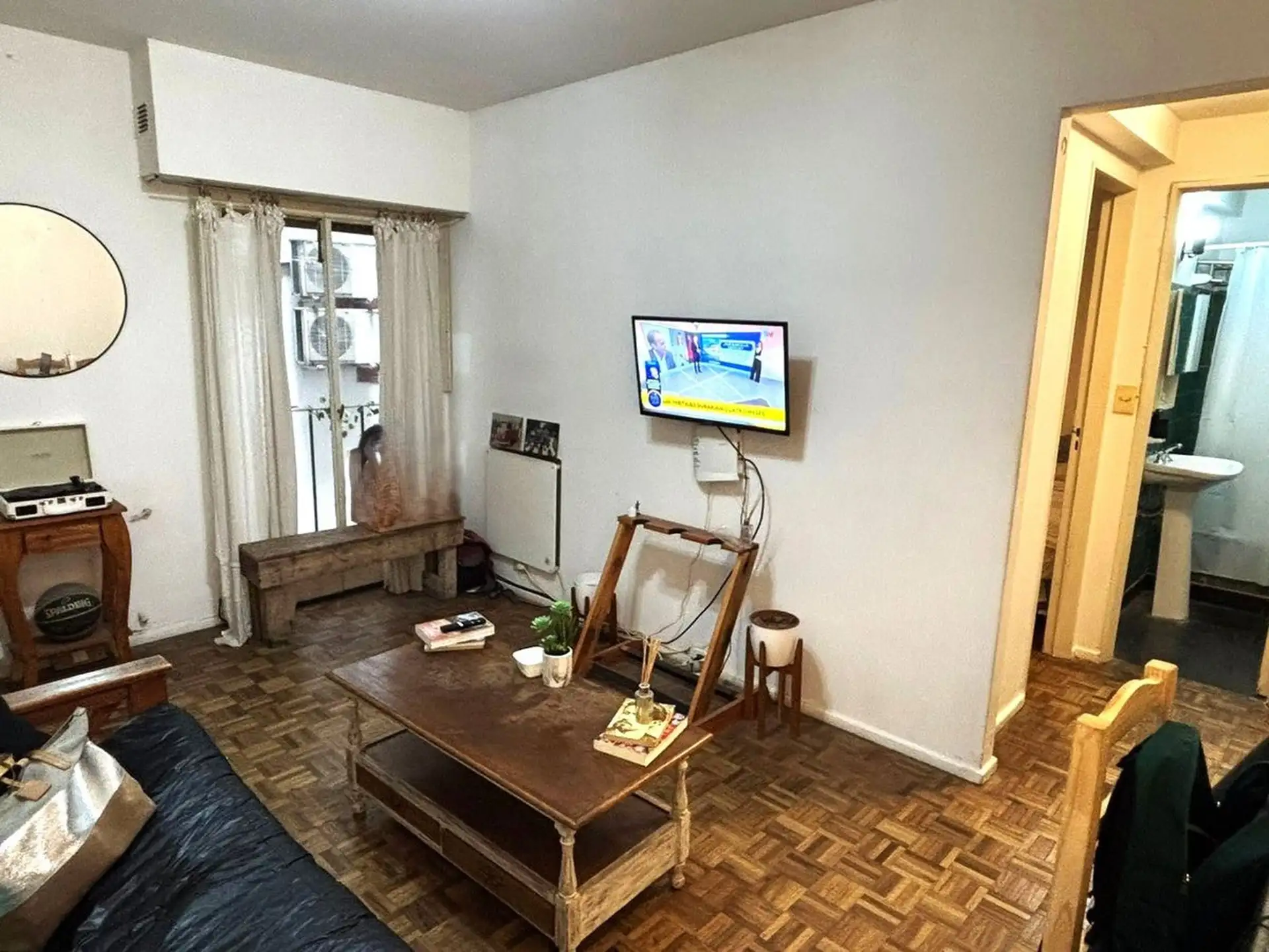 Apartamento de dois ambientes para aluguel na divisa entre Recoleta e Barrio Norte, em Av. Pueyrredón. A unidade fica de fundos (contrafrente), com todos os ambientes voltados para janelas e sala de estar e jantar com varanda francesa. Inclui quarto com armário embutido, ar-condicionado, banheiro completo com banheira e cozinha independente com espaço para máquina de lavar; é oferecido sem mobília. O prédio tem encarregado e elevador.