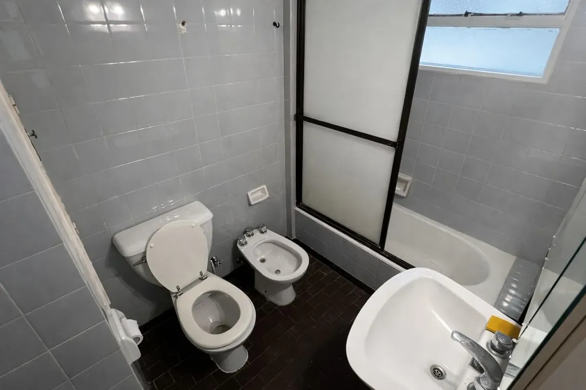 Apartamento de dois ambientes em Recoleta, em bom estado, com 1 quarto e circulação de frente para a rua. Living e quarto com ar-condicionado tipo split e saída para varanda contínua; sala de estar/jantar no frente e varanda em área terraceada. Cozinha independente, com espaço para refeições diárias, além de banheiro completo. Todos os ambientes com ventilação natural e vaga de garagem coberta e fixa; condomínio de $250.000.