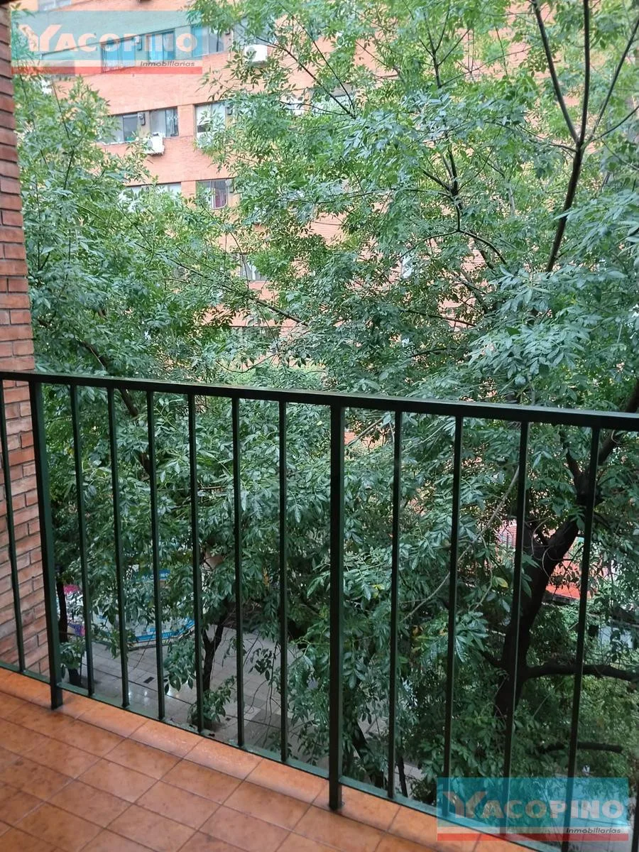 Apartamento de 2 ambientes para aluguel em Recoleta, no 4º andar, de frente para a rua. Possui varanda, cozinha separada com espaço para mesa e para máquina de lavar e secadora. O quarto e a sala de jantar têm ar-condicionado e aquecimento. O prédio tem 40 anos, com elevador, e oferece vaga de garagem (opcional). O anúncio menciona serviços de água corrente, esgoto, gás natural, eletricidade e cabo.