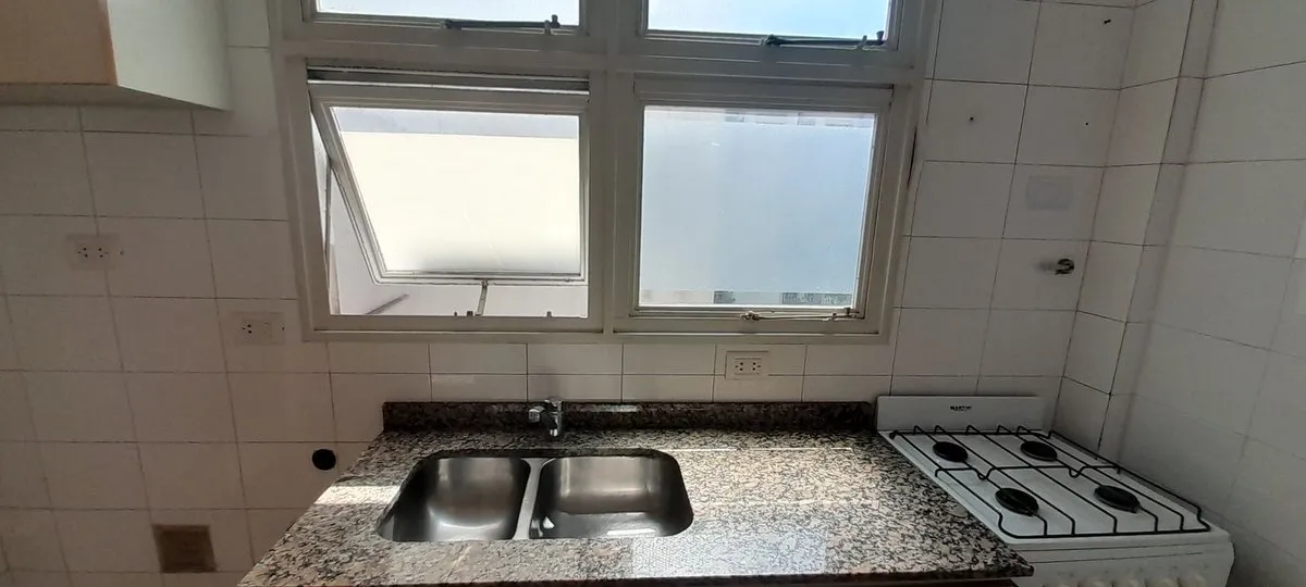 Kitnet em Recoleta, com 42 m² totais, no 5º andar e de fundos (contrafrente). Possui varanda, cozinha separada e banheiro completo com banheira, com aquecimento de água a gás (calefón). O espaço permite divisão para criar 2 ambientes, incluindo área para dormitório. Inclui vaga de garagem fixa e privada para carro médio (não para caminhonete) no térreo, descoberta, com portão automático (2,50 x 4,60).