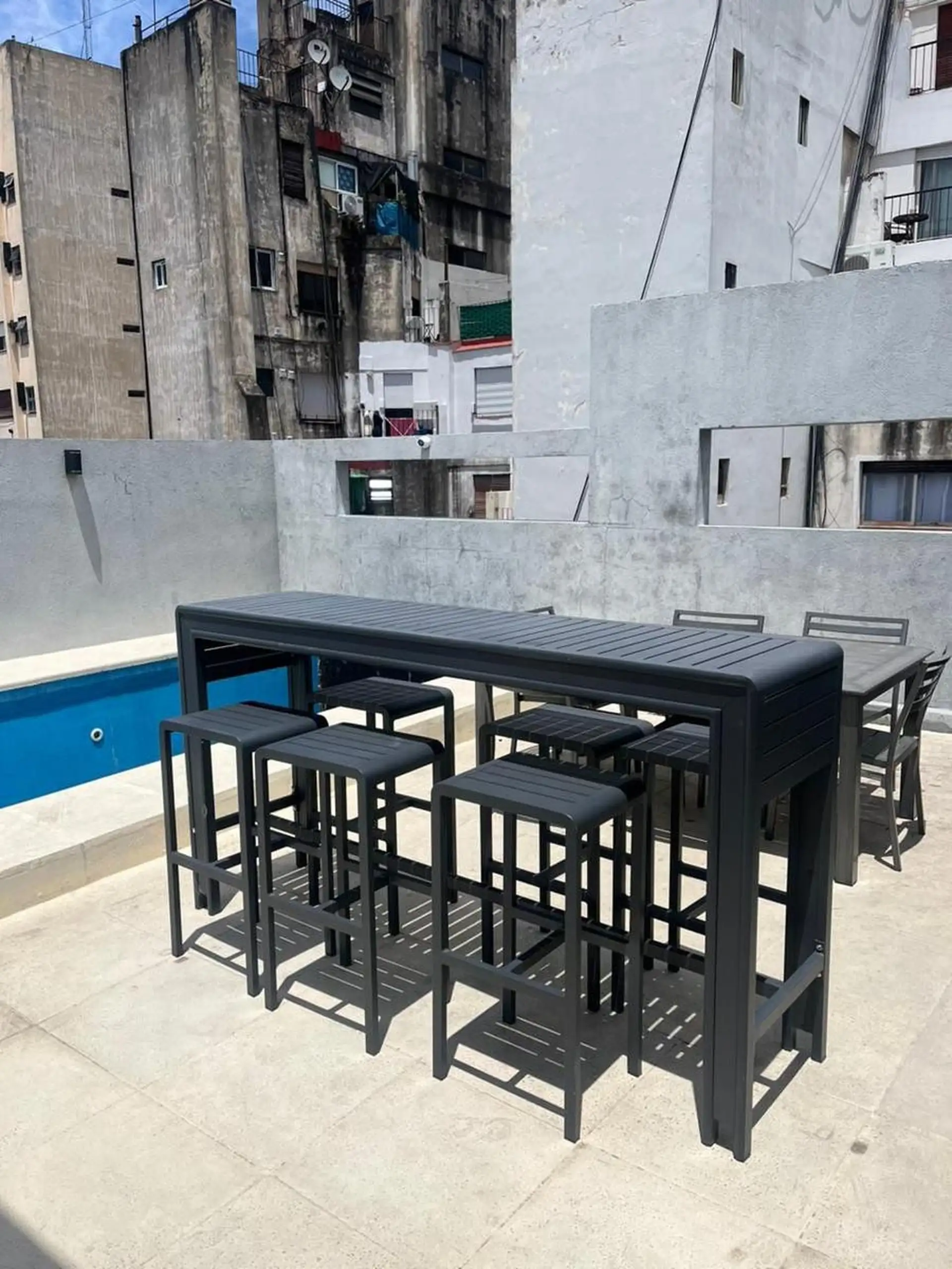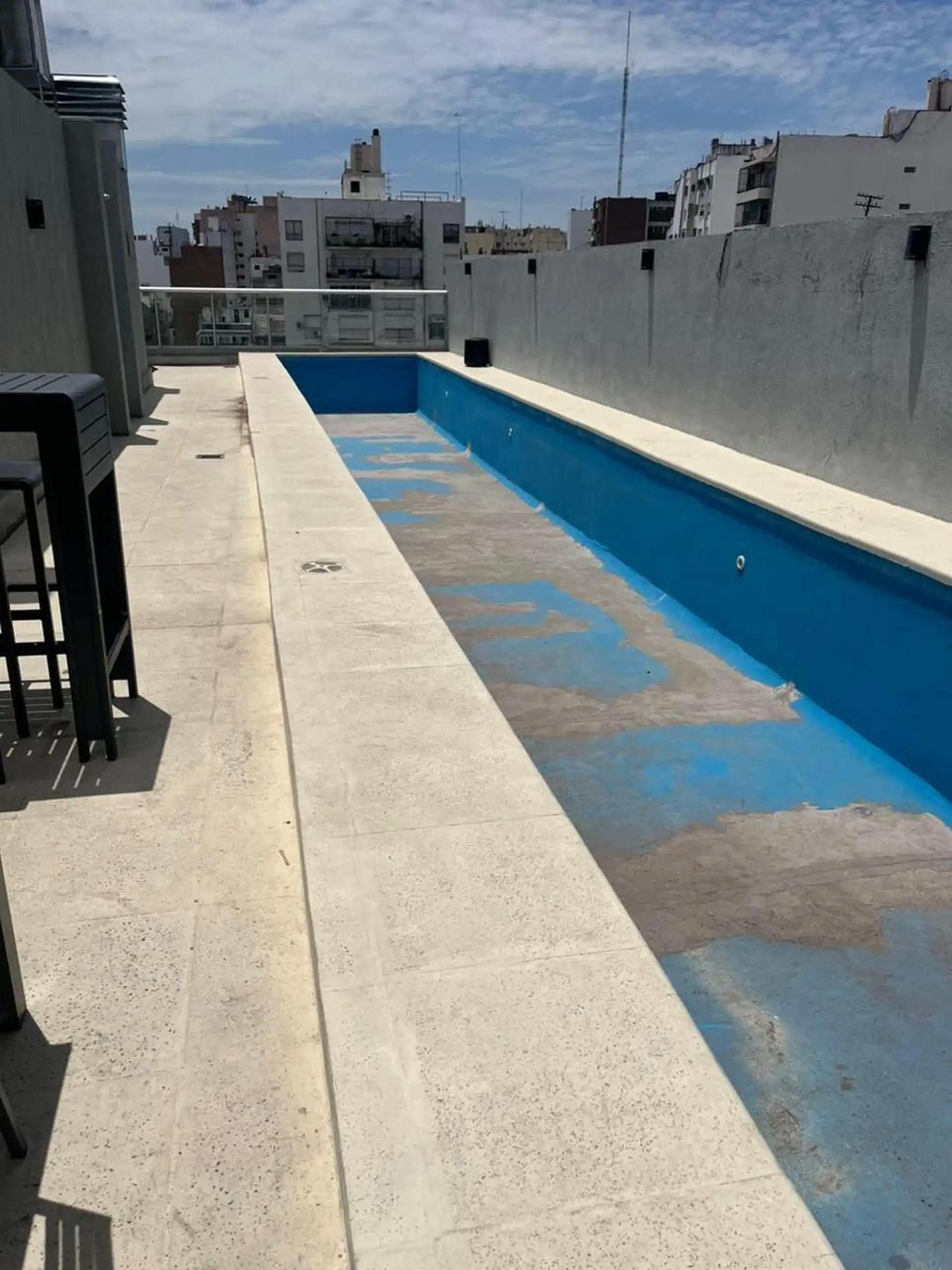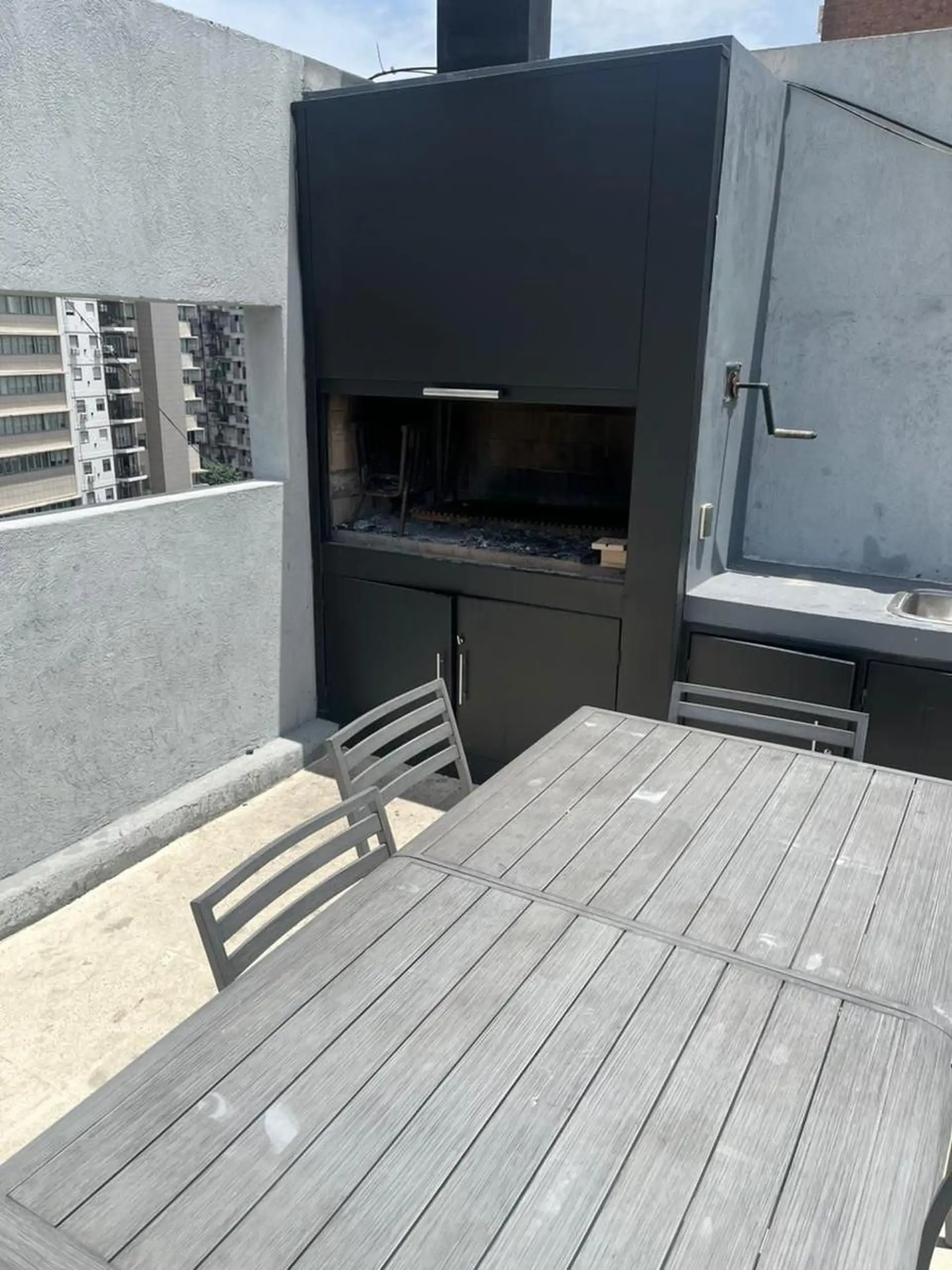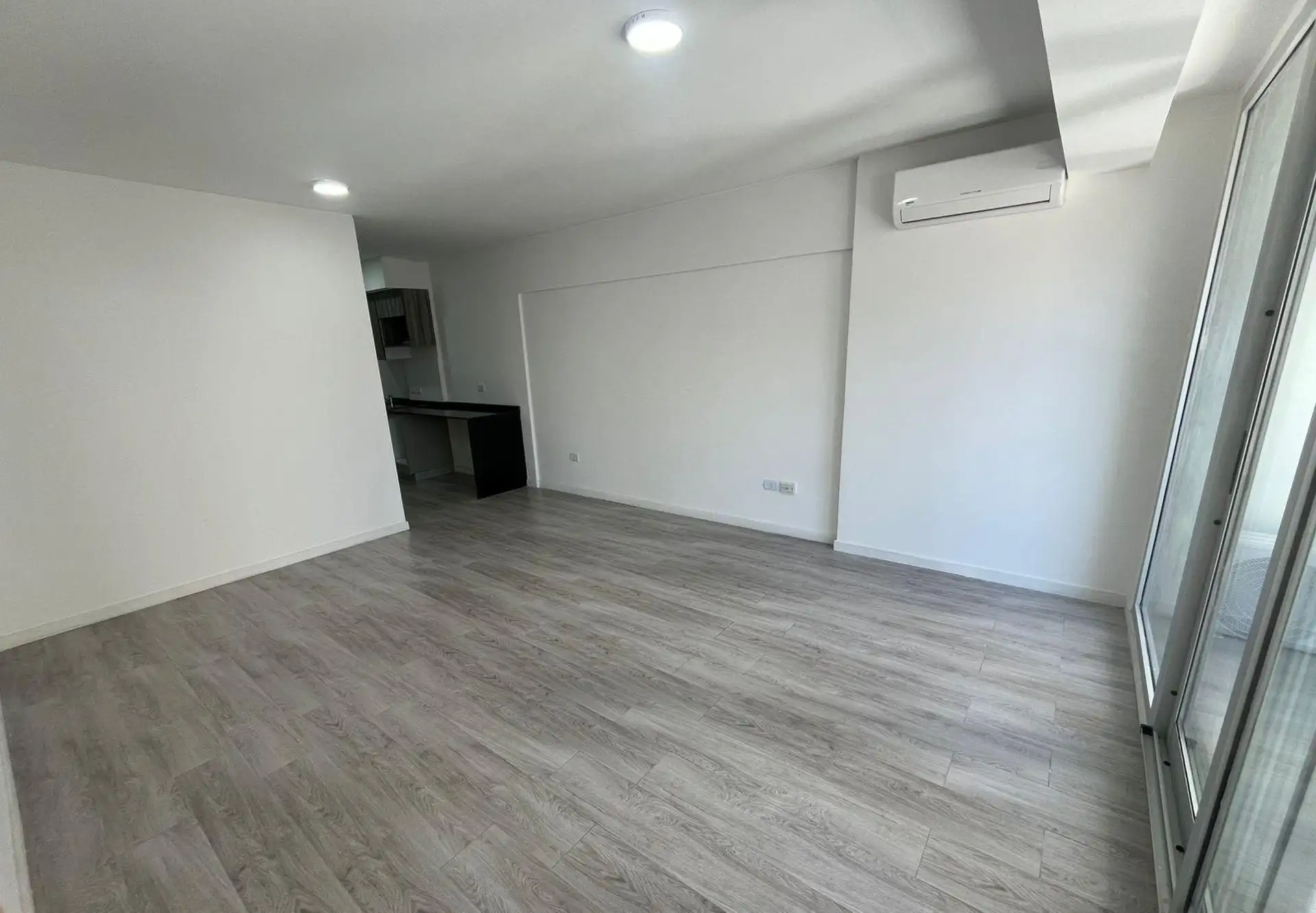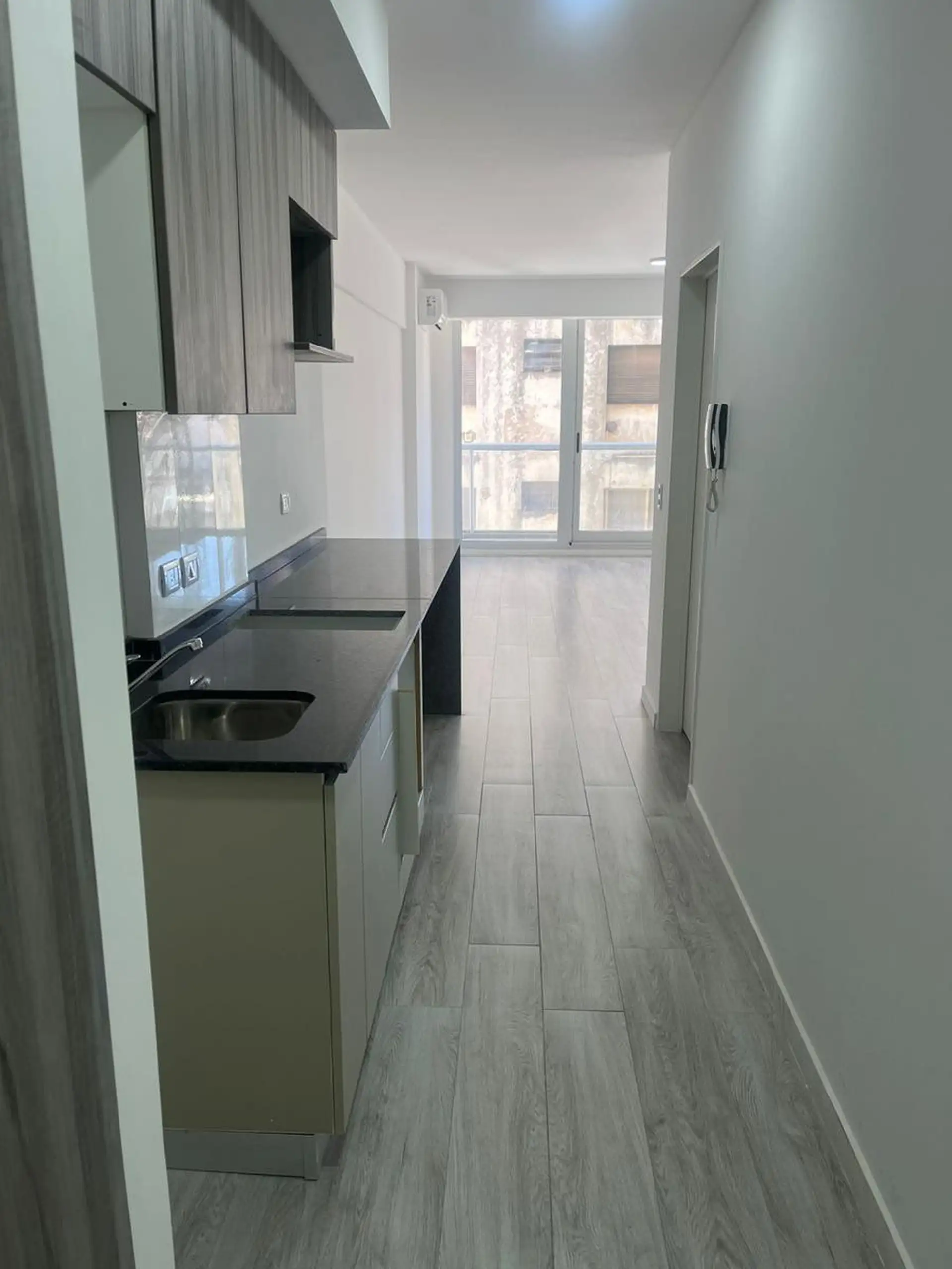 Kitnet de 45 m² totais, em andar alto com elevador, de fundos (contrafrente) e orientação ao norte, na esquina de Paraguay e Ecuador. Possui cozinha com armários sob e sobre a bancada, um ambiente principal com espaços de guarda embutidos e banheiro completo. Condomínio em 08/01/2026: aproximadamente $200.000.