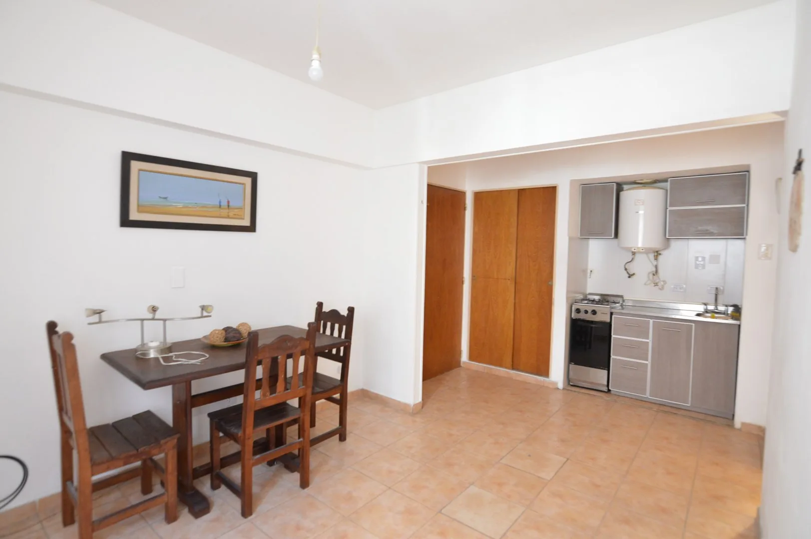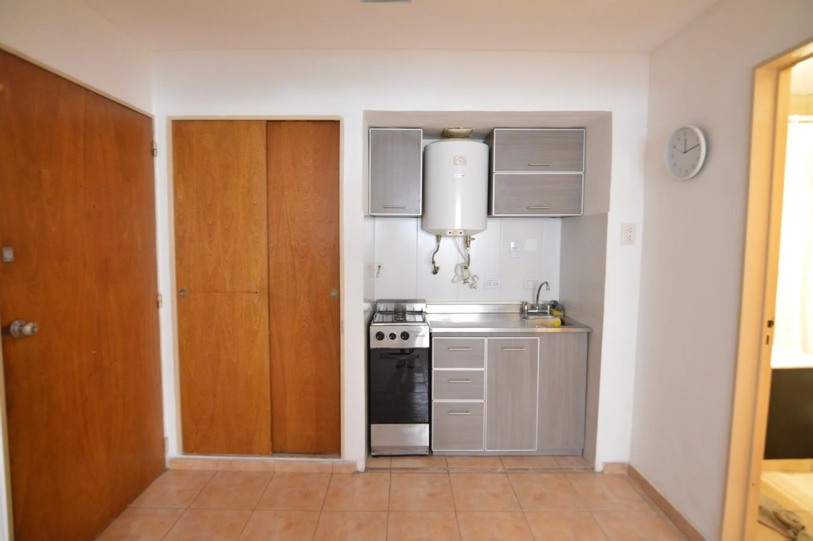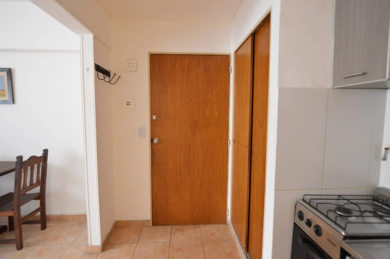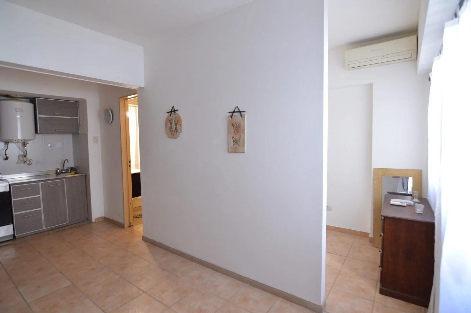 Apartamento de 1 quarto em Recoleta, disponível a partir de maio de 2026. Fica em imóvel de frente para a Av. Santa Fe, a uma quadra da Av. Pueyrredón, com conserjería 24 horas e vigilância no edifício. Possui ambiente dividido com cozinha americana, mobiliado com mesa e cadeiras, ar-condicionado, banheiro completo e serviços individuais. O condomínio inclui piscina e solarium.