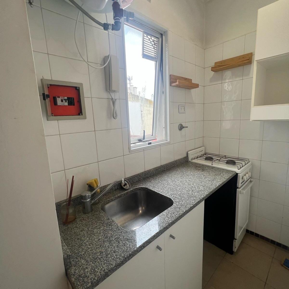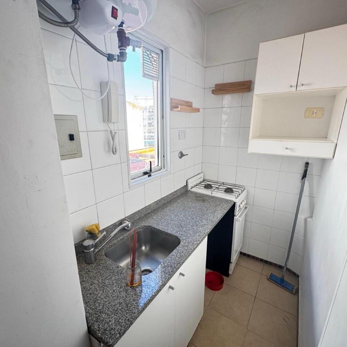 Apartamento de 2 ambientes em Recoleta, no piso alto, com 1 dormitório e ambiente living-comedor integrado. Cozinha definida com gás e espaço para geladeira, banheiro completo e lavadero com espaço para máquina de lavar. Conta com ar-condicionado e calefação elétrica por painel, aquecedor de água elétrico e ventilação cruzada; janelas orientadas em direções diferentes. Condomínio de $120.000; serviços individuais (gas, aysa, edenor e abl). Para locação: aluguel antecipado, depósito e pagamento