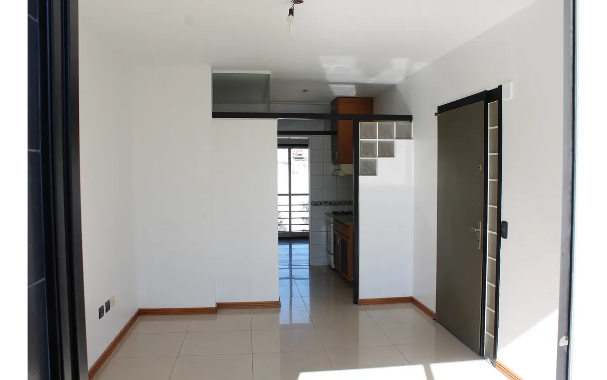 Apartamento de 2 ambientes no 8º andar, de frente, com varanda-terraço. Piso de porcelanato na sala e instalação para ar-condicionado. Cozinha completa com móveis sob e sobre bancada, purificador de ar, forno e luz natural. O dormitório fica de fundos, com varanda francesa e vista aberta; piso de madeira. Banheiro completo com box de hidromassagem, bidê com válvula automática, espelho, extrator, torneiras FV e banheira com hidromassagem. Prédio bem mantido, hall de entrada, elevador automático d
