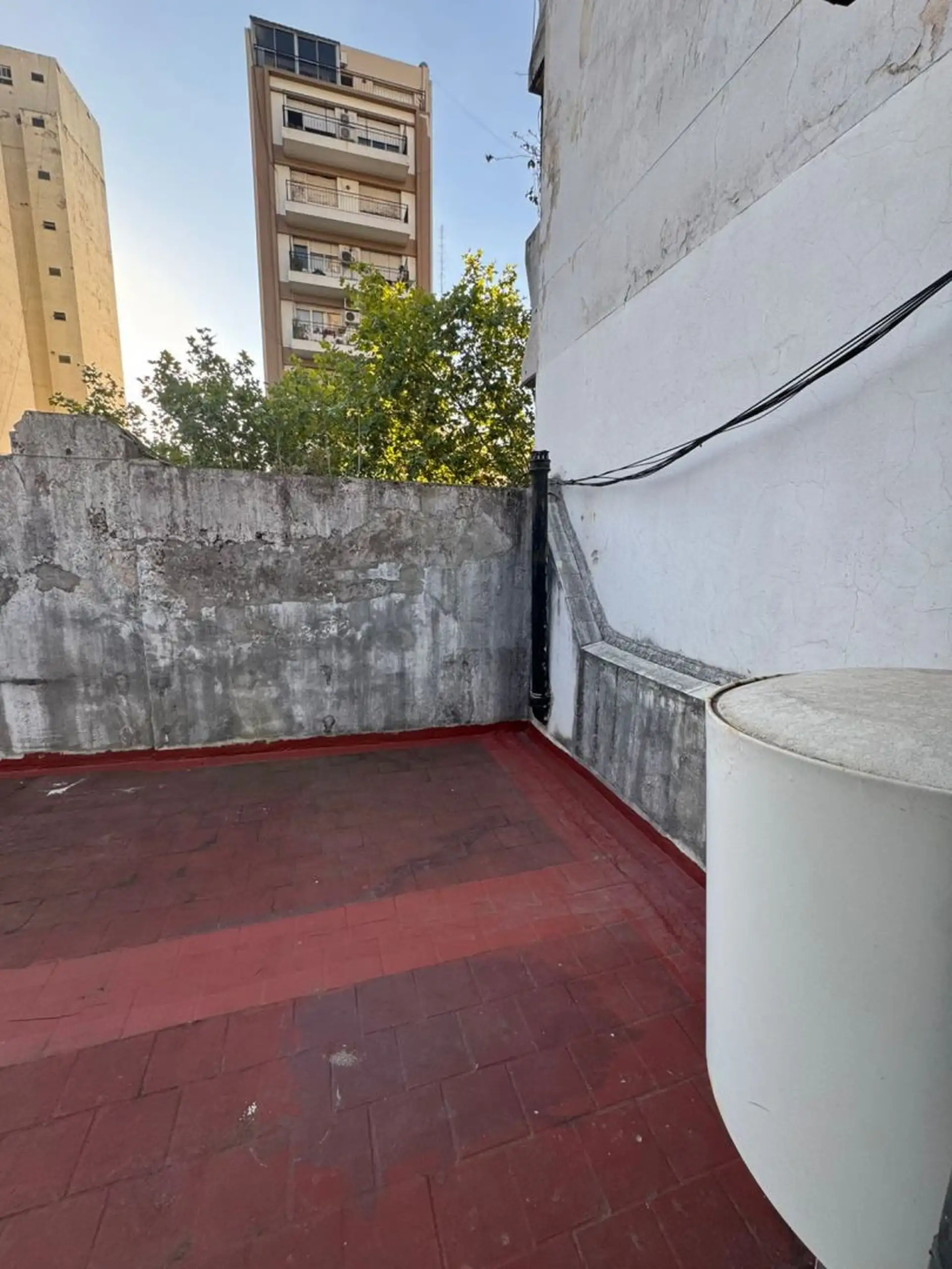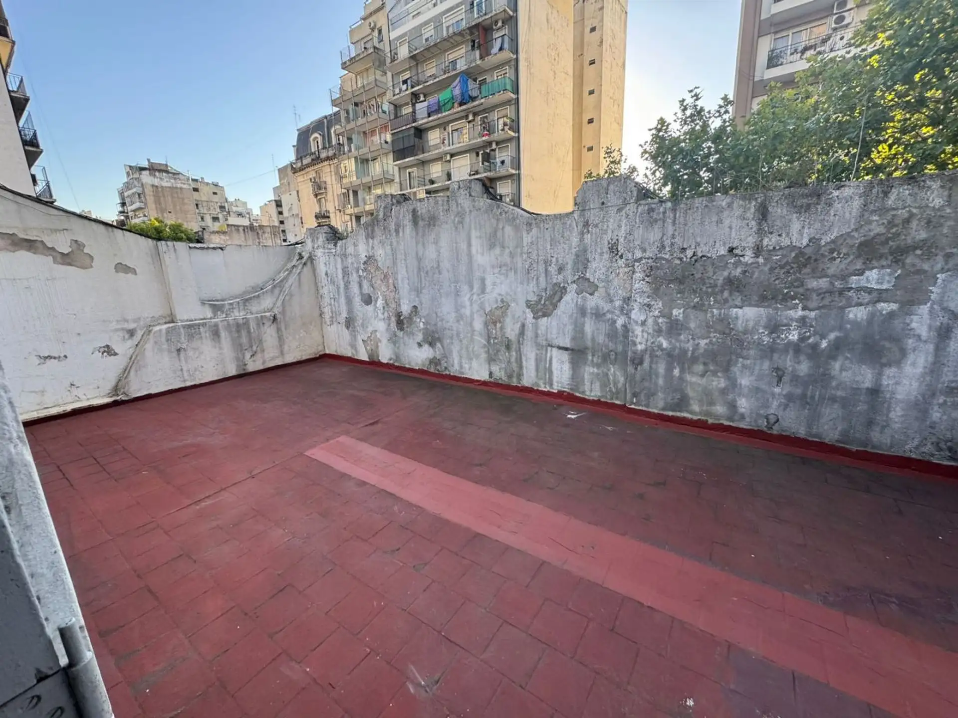 Apartamento de 2 ambientes em Recoleta, no último piso por escada. Fica de frente para a rua e tem terraço próprio de 38 m². Possui cozinha independente, área de serviço independente e 1 dormitório com armário embutido. Aceita uso profissional.