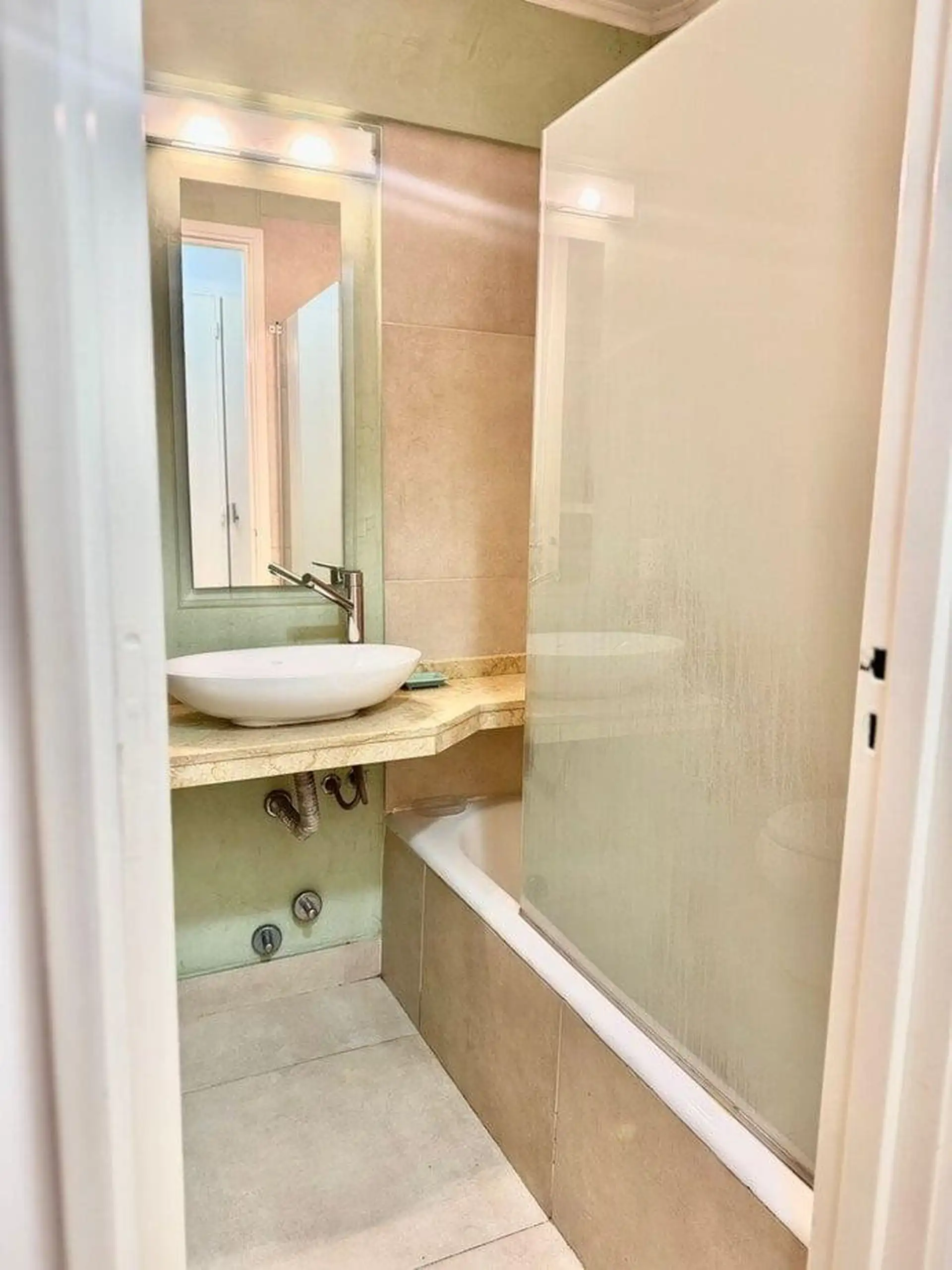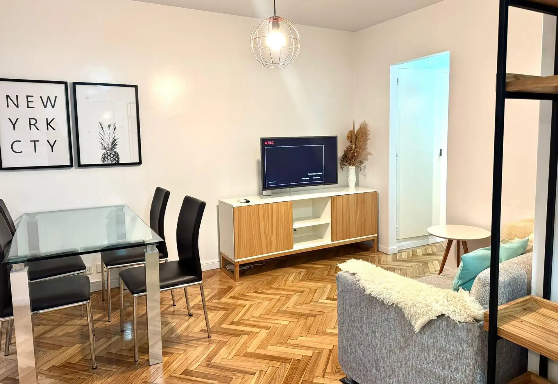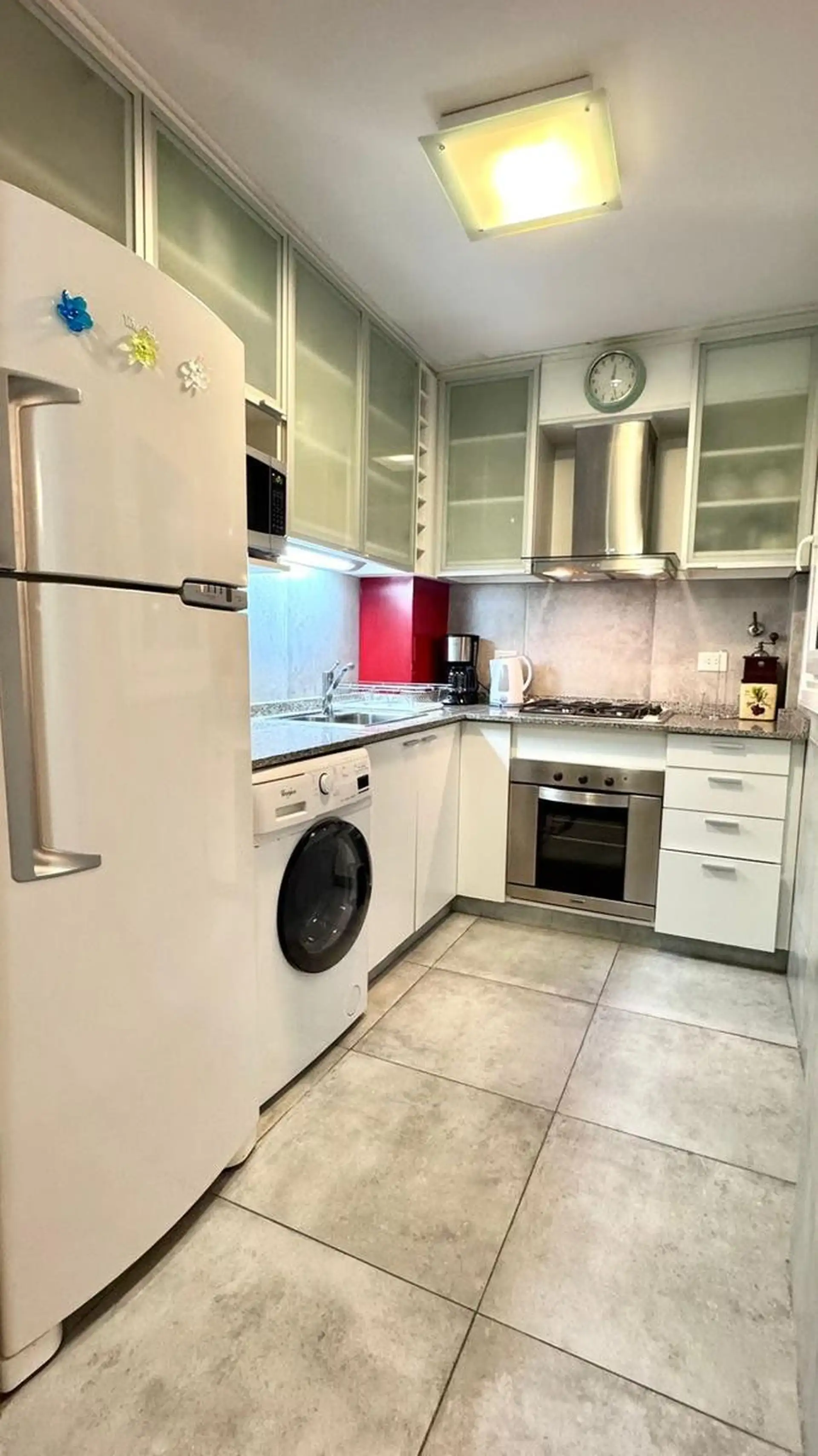 Apartamento de 2 ambientes com 45 m², com 1 quarto e 1 banheiro completo, localizado no 2º andar. Cozinha com equipamentos e mobiliário decorado, com grande quantidade de armários. Inclui Wi-Fi gratuito para estadias mensais e de 6 meses; fica em Retiro/Centro, em frente ao WE WORK, a cerca de 500 metros do Teatro Colón e próximo à Plaza San Martín.