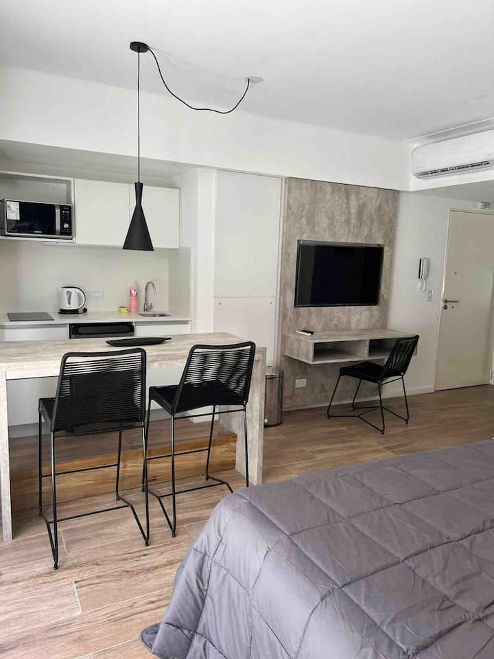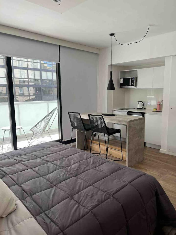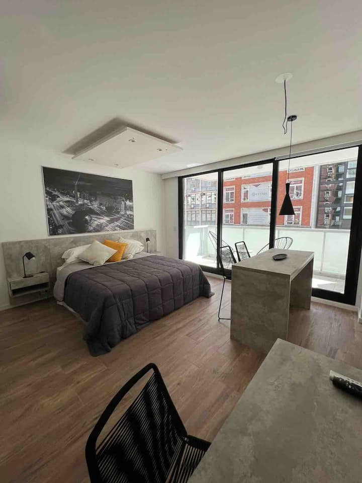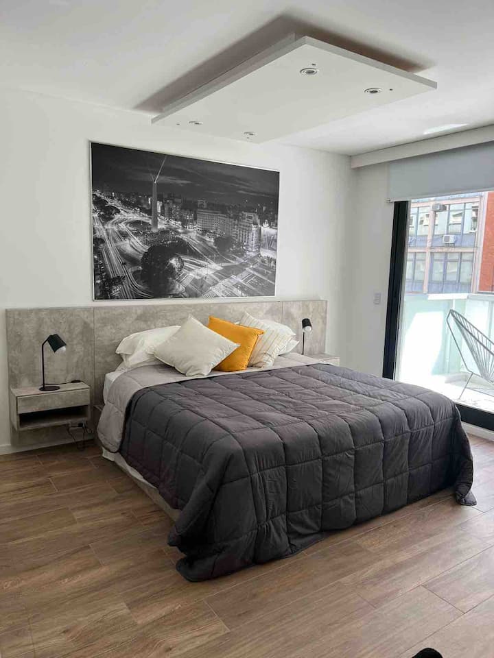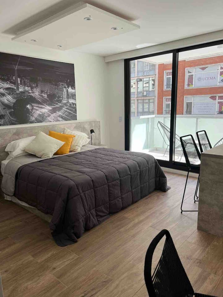 Apartamento novo de 1 quarto no centro de Buenos Aires, com ar-condicionado. O imóvel tem internet via Wi-Fi, acesso a cabo, área de lavanderia, academia e solarium. A poucos minutos a pé do Centro Cultural Kirchner, Café Tortoni e Plaza de Mayo, além de pontos como a Basílica do Santíssimo Sacramento, o Teatro Colón, a Avenida Florida e o Obelisco de Buenos Aires.