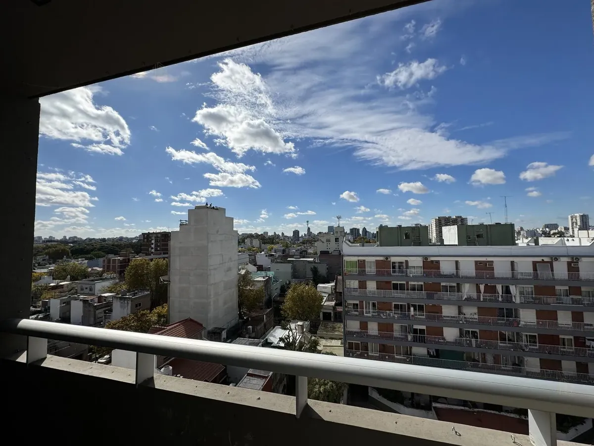 Kitnet com 1 ambiente, com varanda e 1 banheiro completo, em Saavedra. Tem cozinha integrada, armário e estar com saída para a varanda. Inclui ar-condicionado e placar/armário. O prédio tem 8 andares, 4 unidades por andar, elevador e hall de acesso, além de SUM, lavanderia, área de churrasco e terraço. Conta com gerador próprio em caso de falta de energia, água quente central e aquecimento por ar frio/quente; o condomínio é baixo.