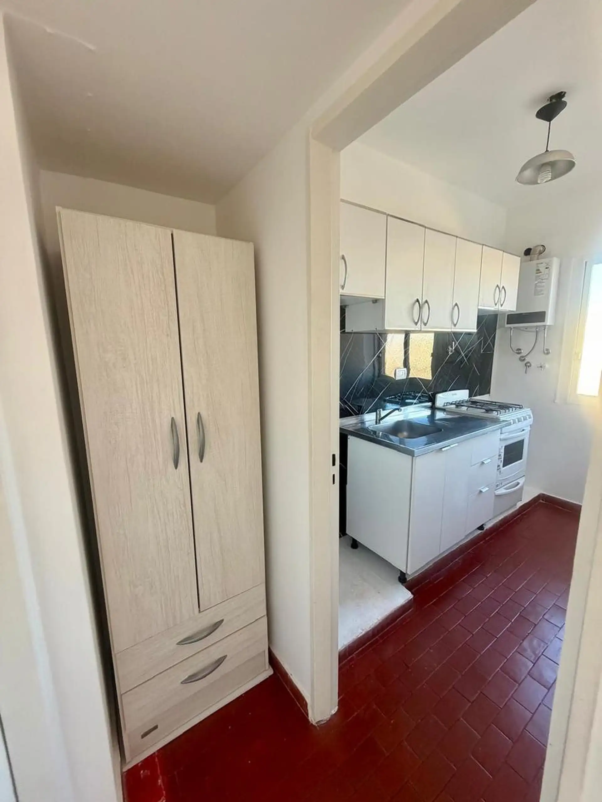 Kitnet com 1 banheiro, cozinha independente com espaço para máquina de lavar e acesso a varanda. Banheiro completo com banheira. Quarto em andar alto, com vista aberta para a cidade; não são aceitos animais.