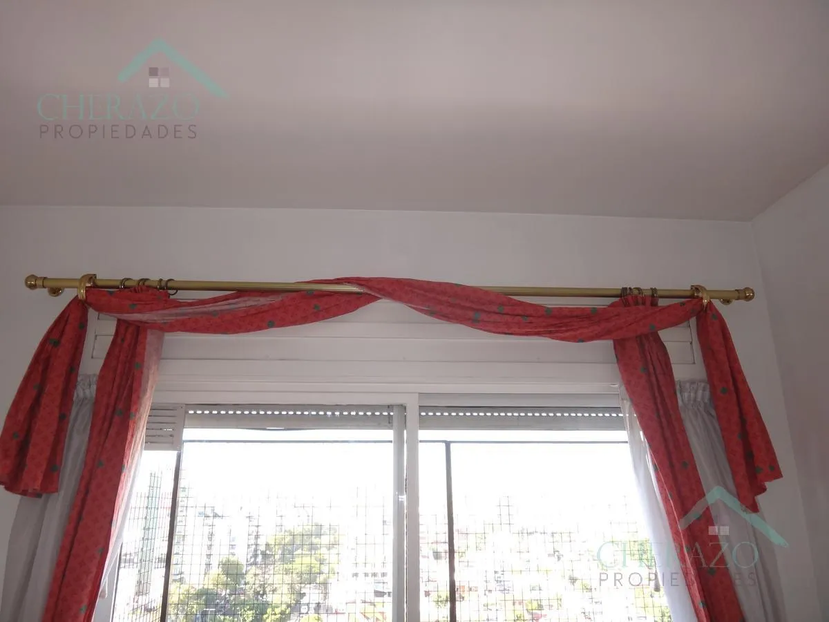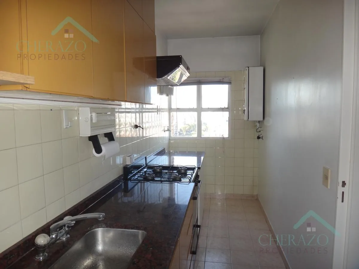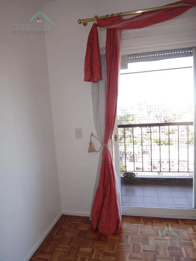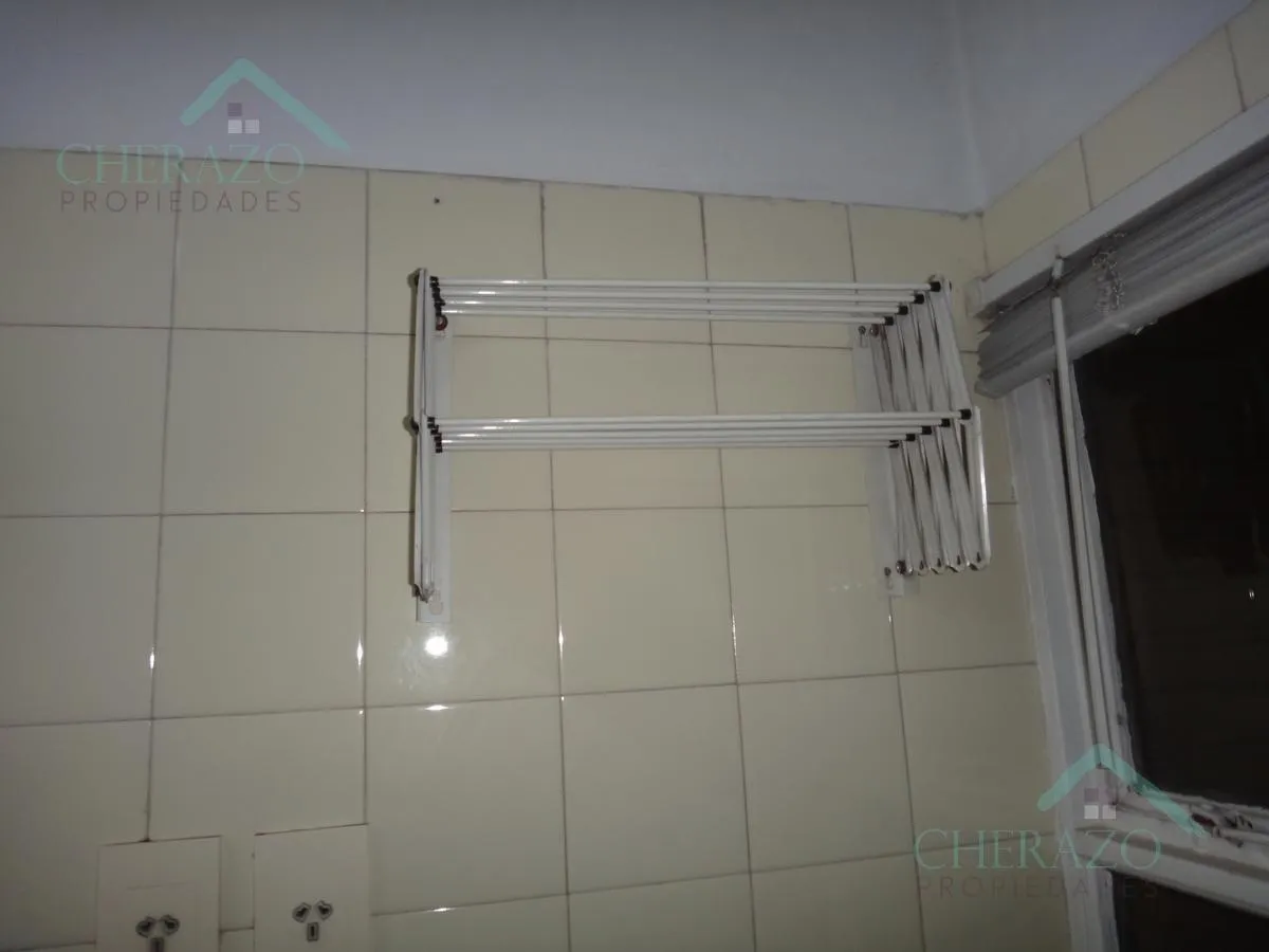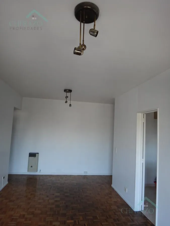 Apartamento de dois ambientes em Saavedra. Inclui sala de estar e jantar com acesso a uma varanda integrada, cozinha independente com área de serviço incorporada, e 1 banheiro completo. Quarto com armário embutido e vista aberta.