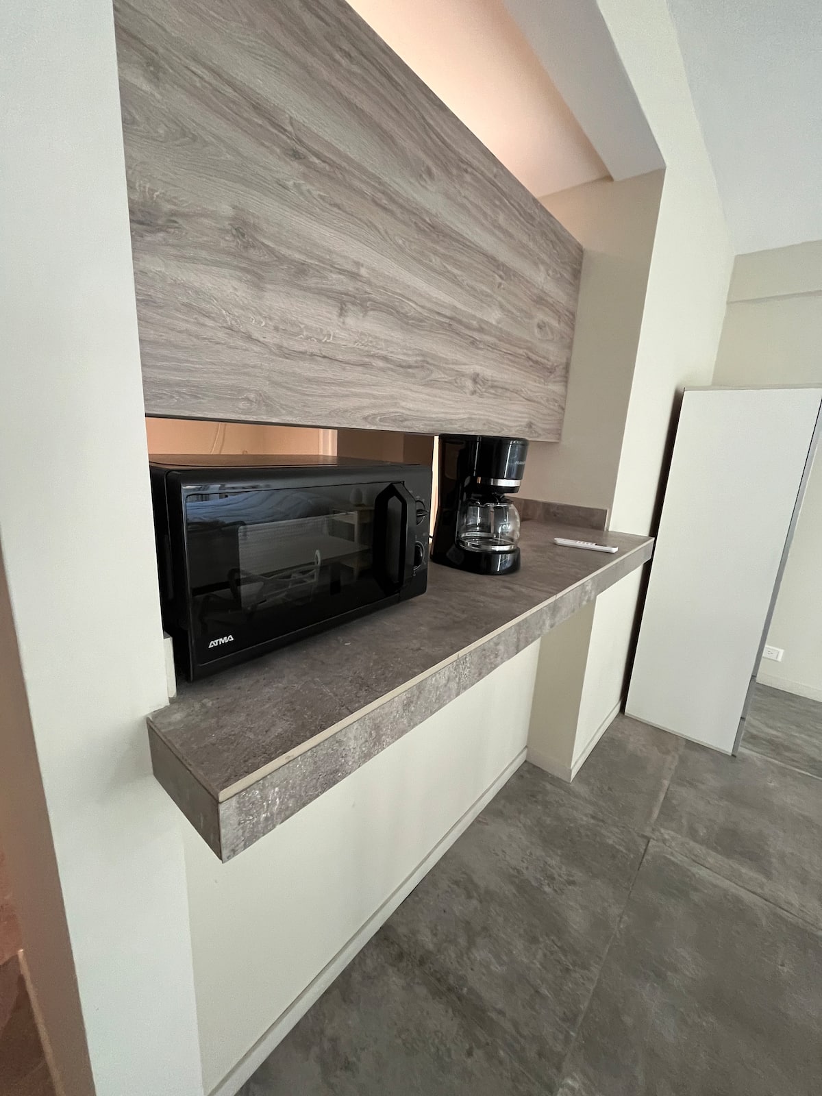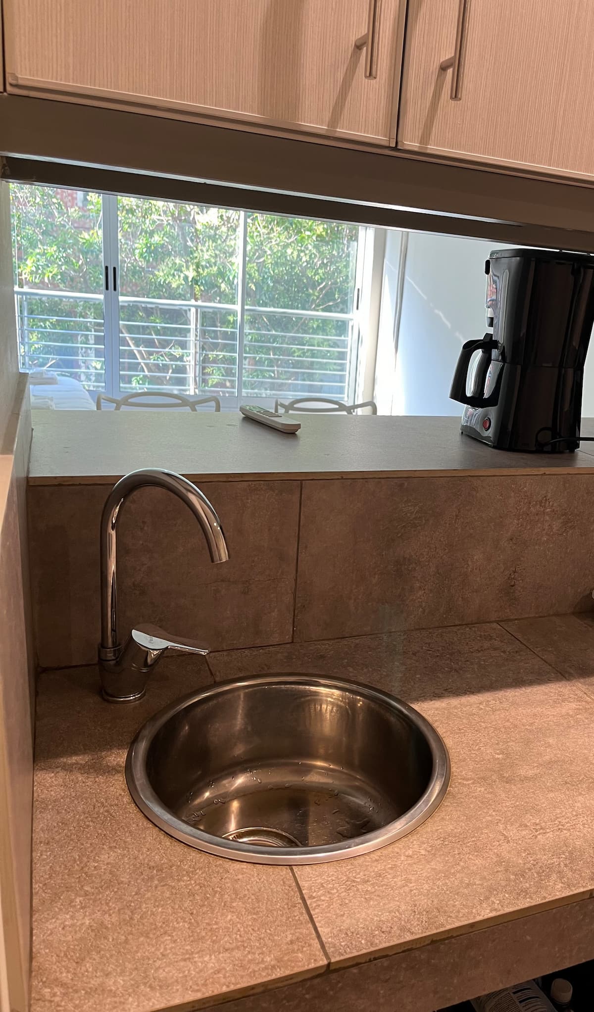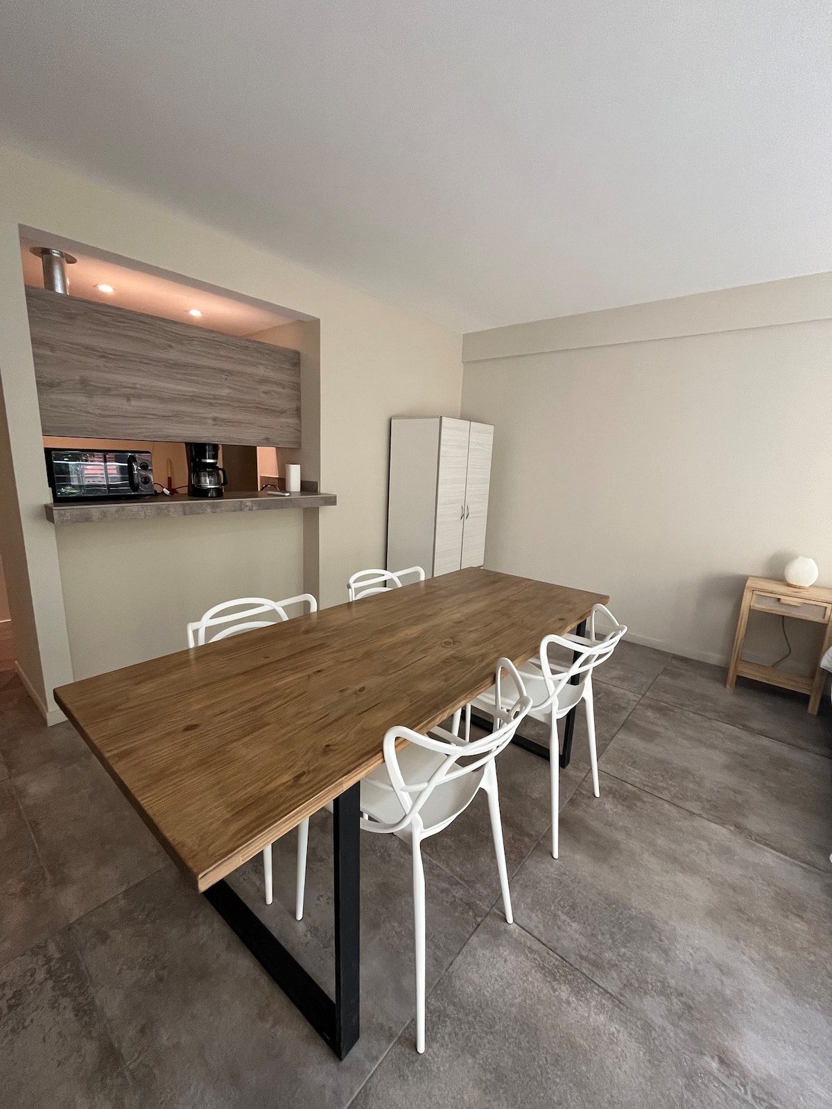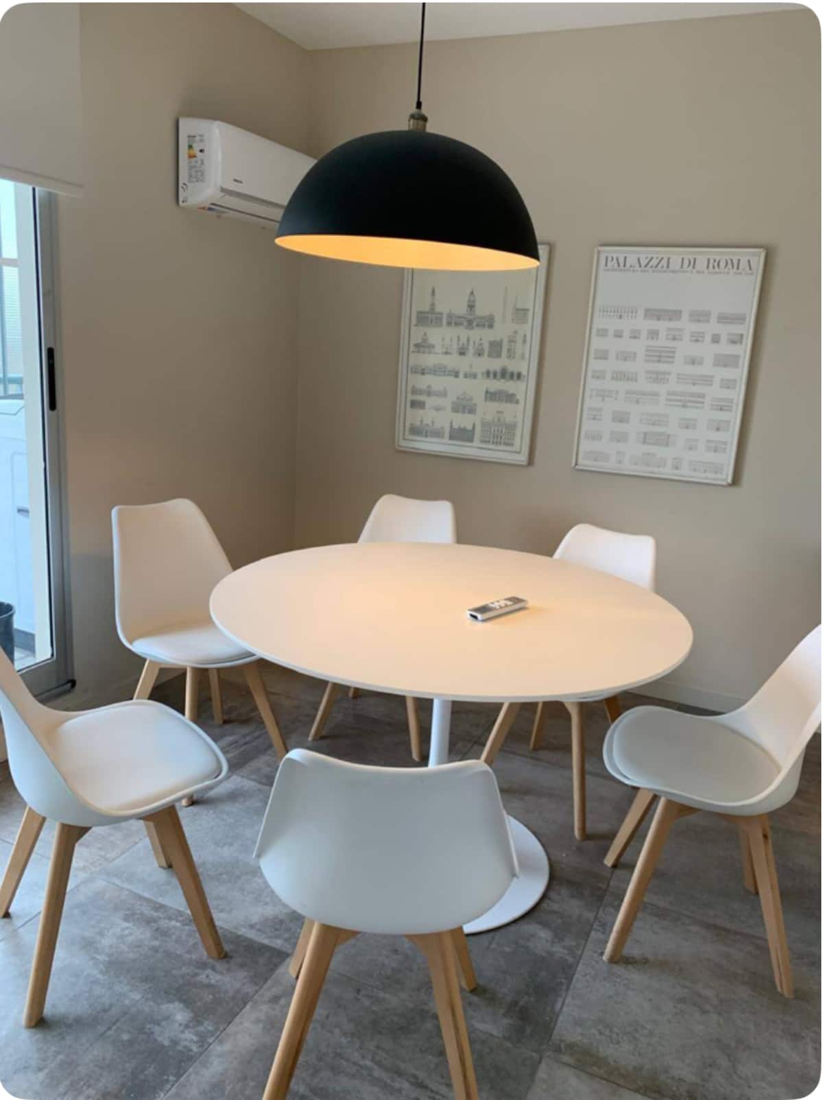 Studio em Saavedra, unidade 1B, com cozinha equipada e varanda privativa. Conta com mesa para 4 pessoas, Smart TV, Wi-Fi de alta velocidade e banheiro com chuveiro com água quente. Cozinha com geladeira, cooktop, micro-ondas, torradeira e cafeteira. No sexto andar há acesso a espaço compartilhado no último piso para trabalho compartilhado ou reuniões; o prédio tem elevador.