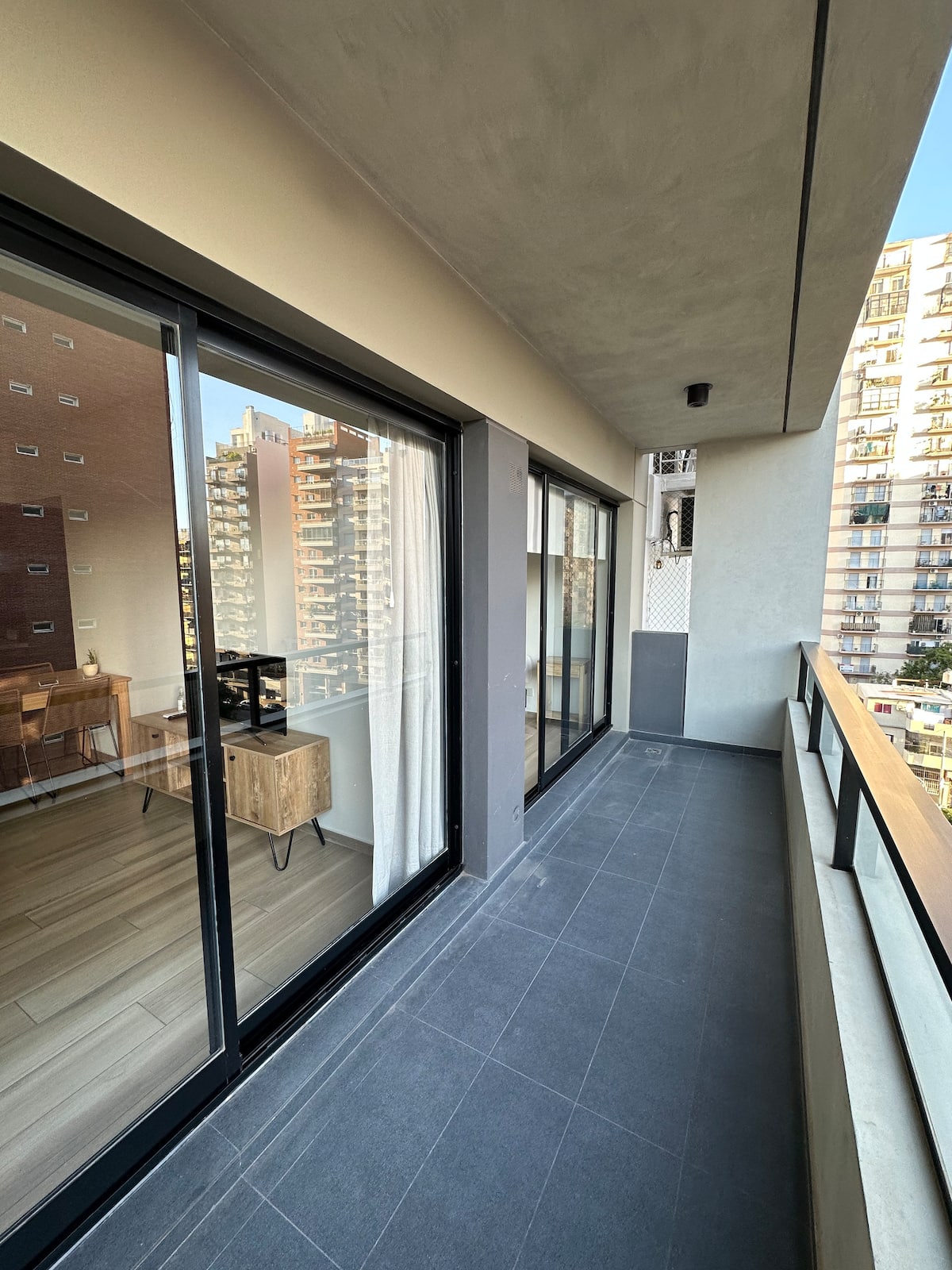 Apartamento inteiro em Saavedra, com 1 quarto. A publicação indica que fica em uma área com cafés e restaurantes nas redondezas.