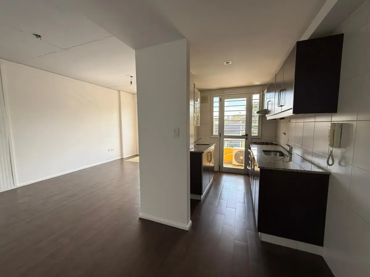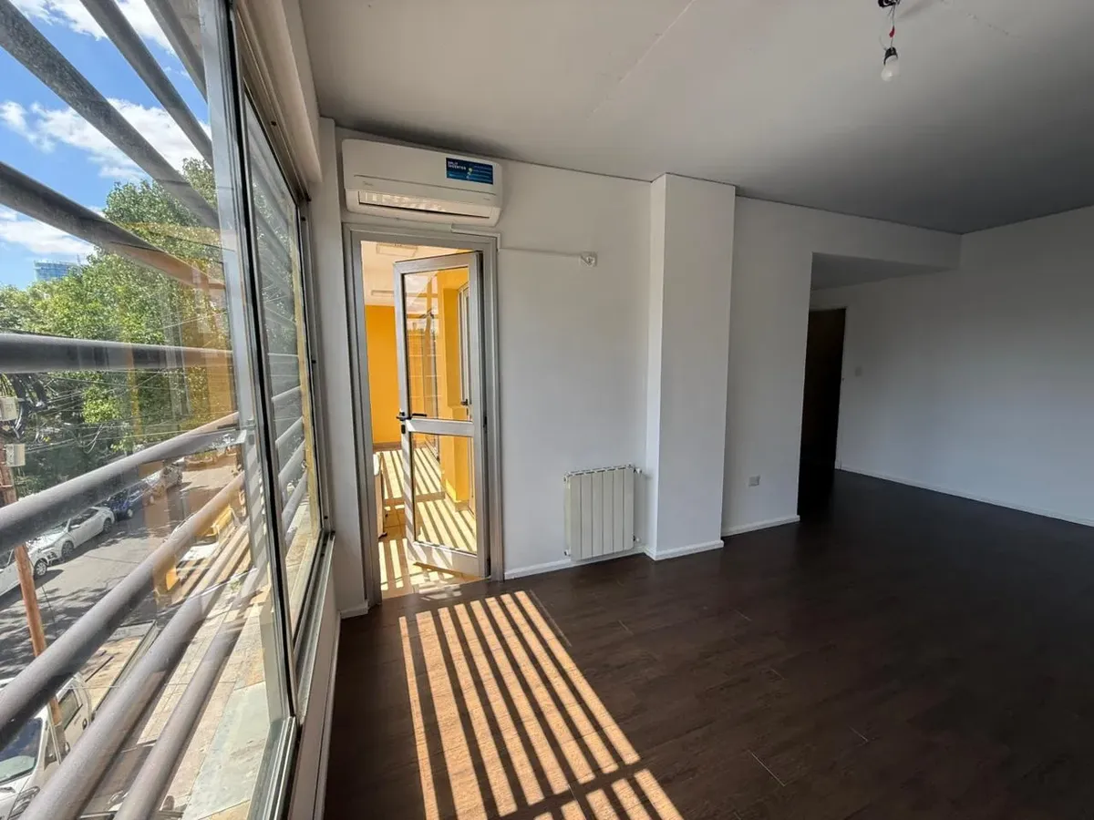 Apartamento de 2 ambientes com 1 quarto, varanda e vaga de garagem móvel em Saavedra, no 2º andar de um prédio de 3 andares. O living-comedor tem ar-condicionado, e a cozinha é independente, com espaço de armazenamento e conexão para lavadora. O living, a cozinha e o dormitório dão para a varanda; o dormitório tem closet e há 1 banheiro completo com espaço adicional para mobiliário de guarda. A unidade tem serviços individuais; duas quadras de Av. General Paz.