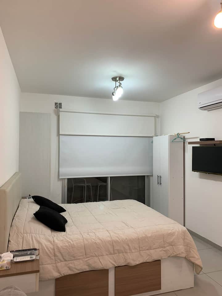 Apartamento mobiliado e equipado, no 4º andar. Inclui TV e Wi-Fi. Condomínio, luz, gás e água estão incluídos. Não é permitido fazer festas.