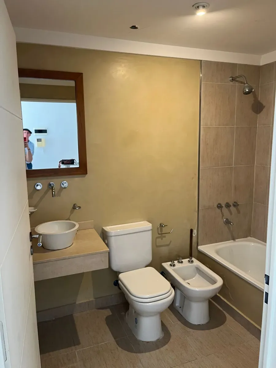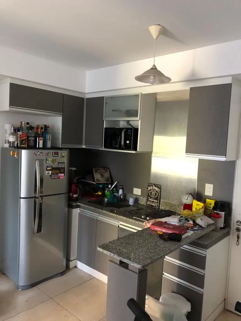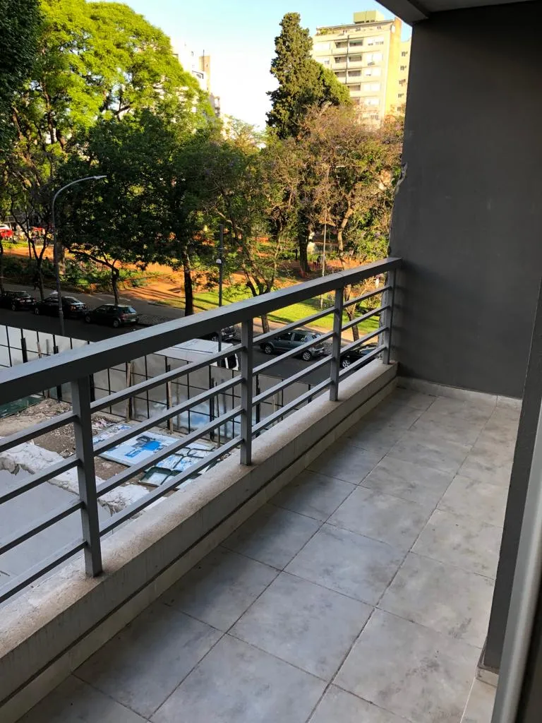 Apartamento de um ambiente e meio com divisão e armário embutido em Saavedra. O imóvel tem vaga de garagem (fixa) coberta, cozinha com barra para café da manhã e banheiro completo com banheira. Há ar-condicionado split e saída para a varanda a partir do dormitório e da sala de estar. O prédio conta com área de churrasco, salão comunitário (SUM) e lavanderia.