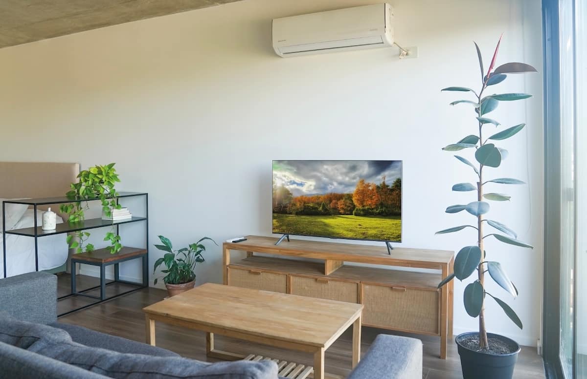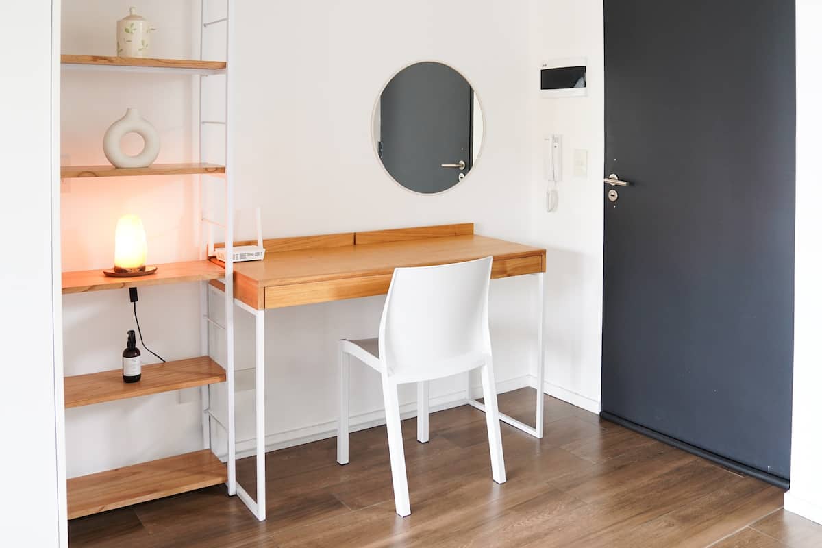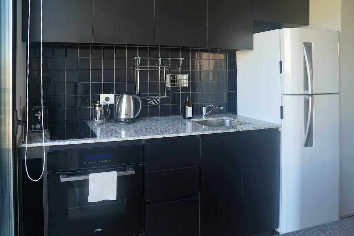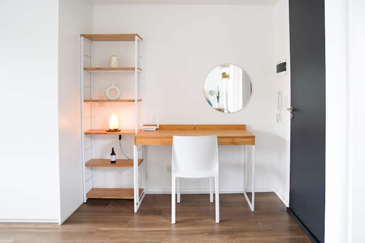 Studio em Saavedra, novo, com varanda e vista aberta para o parque. O apartamento tem Smart TV e Wi-Fi de boa velocidade. No prédio há lavanderia com máquina de lavar e secar para uso dos hóspedes, jardim comum com piscina e área de churrasco, além de espaço verde. A entrada e a saída estão indicadas como check-in das 15h às 21h e check-out até 10h.