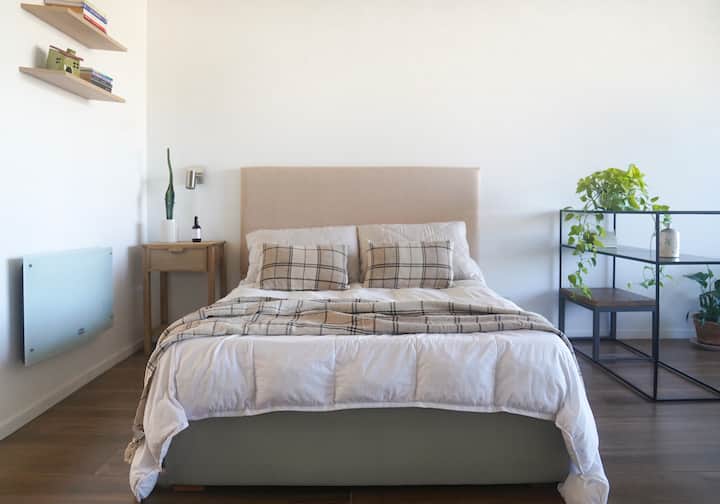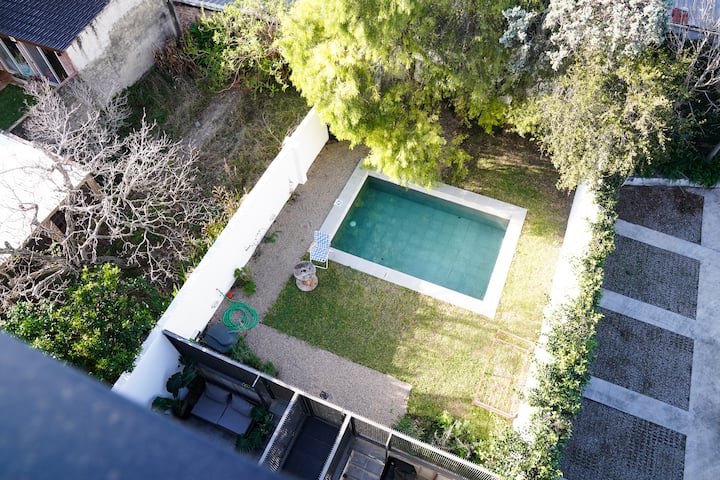 Studio novo com piscina, jardim, lavanderia e área de churrasco em Saavedra