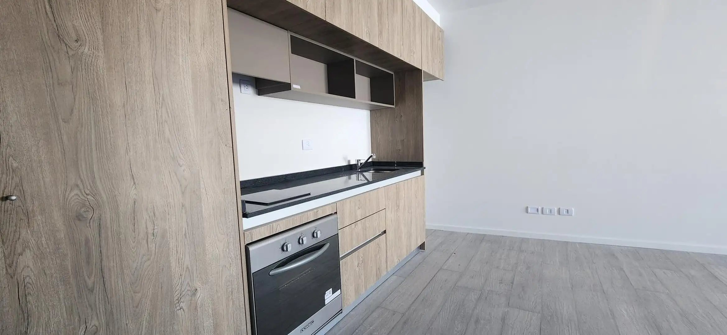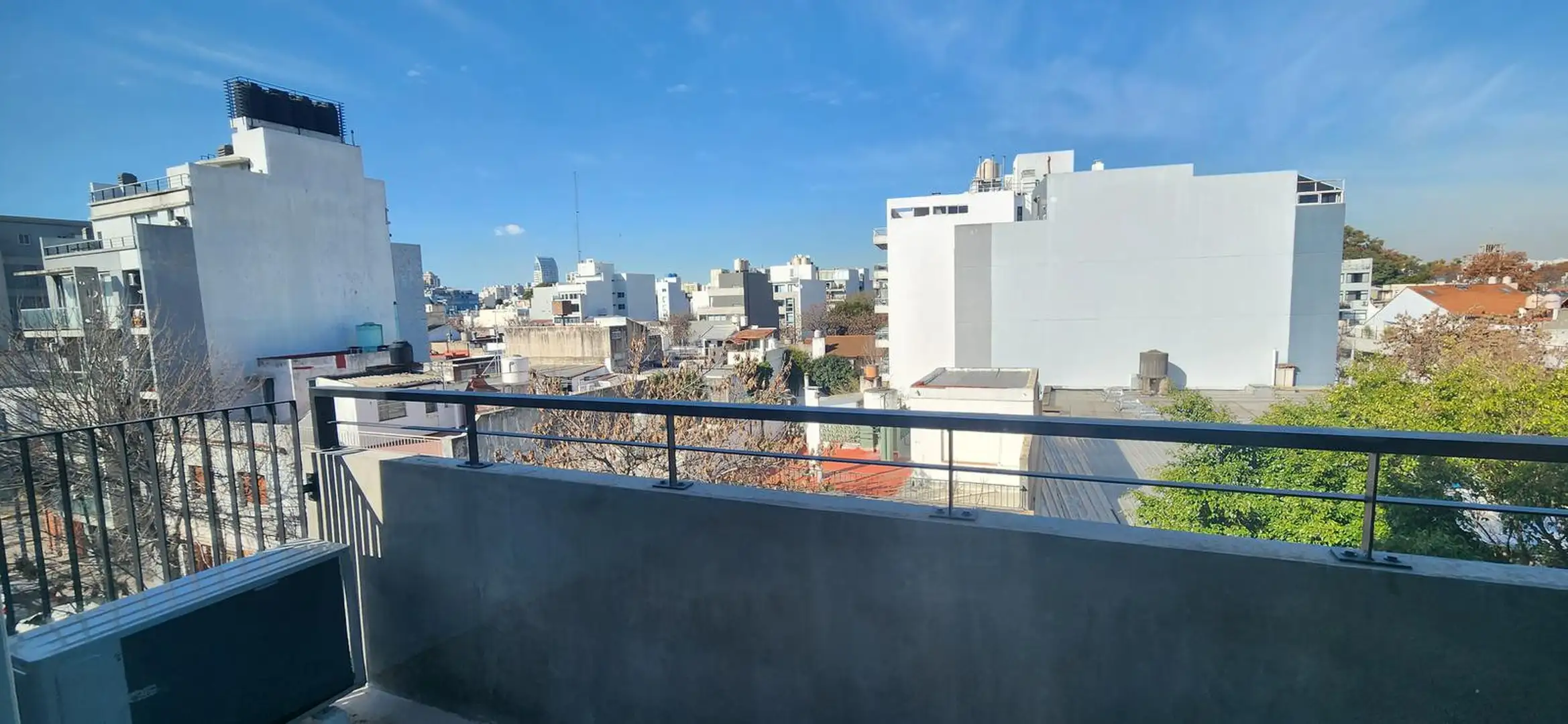 Kitnet novo (nunca habitado), com possibilidade de divisão, em edifício também novo, em Saavedra. Possui cozinha com bancada de mármore, cooktop com vitrocerâmica e forno elétrico, além de armários superiores e inferiores; banheiro completo com espelho. Há ar-condicionado split frio e quente inverter em todos os ambientes e janelas com vidro duplo (DVH) com saída para a varanda. O prédio tem área de churrasco, lavanderia, hidromassagem e solarium.