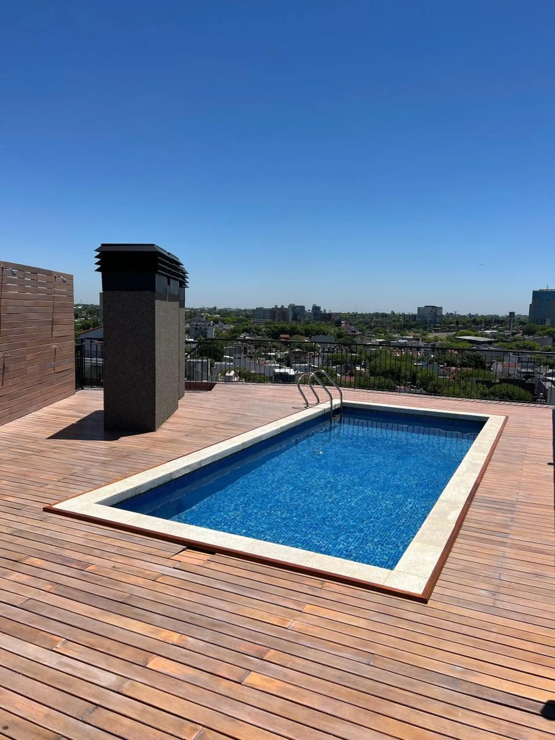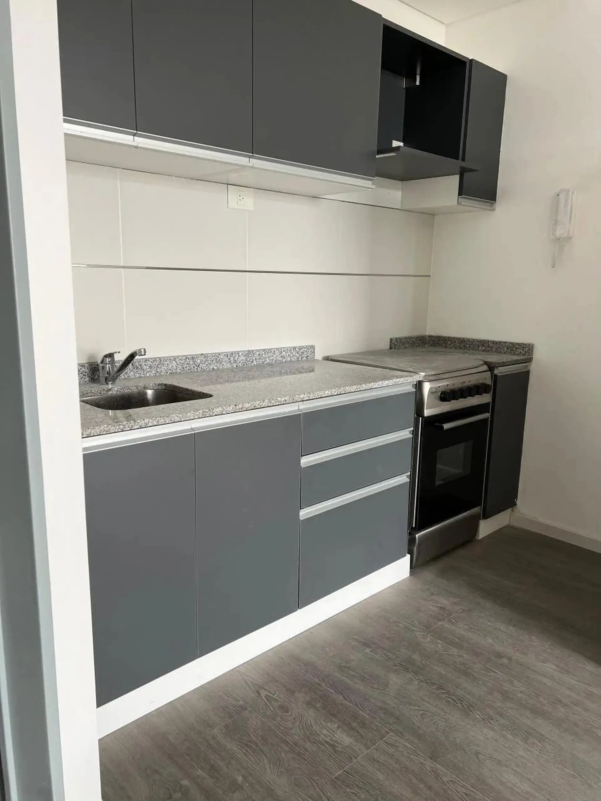 Apartamento de 1 quarto para alugar em Saavedra, em edifício de andar alto com elevador, de frente para a rua e orientação leste. Possui cozinha com armários sob e sobre a bancada, lavabo (toilette), sala de estar e jantar, 1 dormitório com armário embutido e 1 banheiro completo, além de varanda. A área total é de aproximadamente 52 m², sendo 46 m² cobertos. As despesas de condomínio, em 17/04/2026, são de aproximadamente $200.000.
