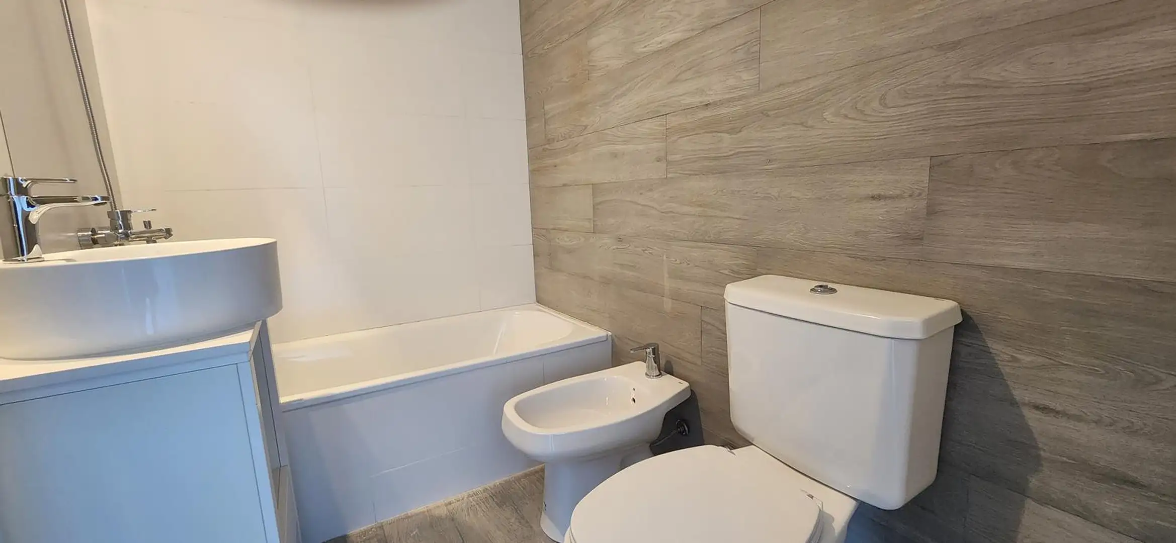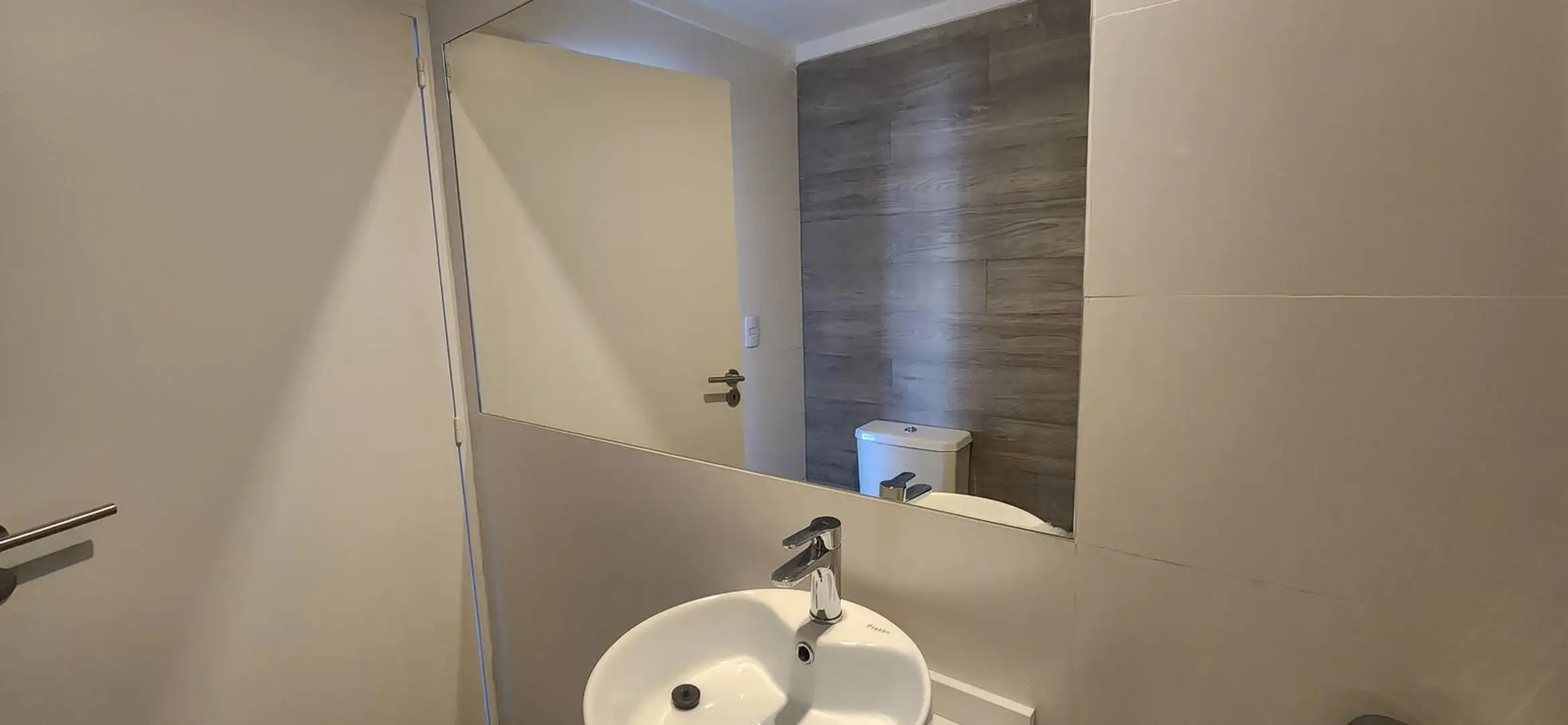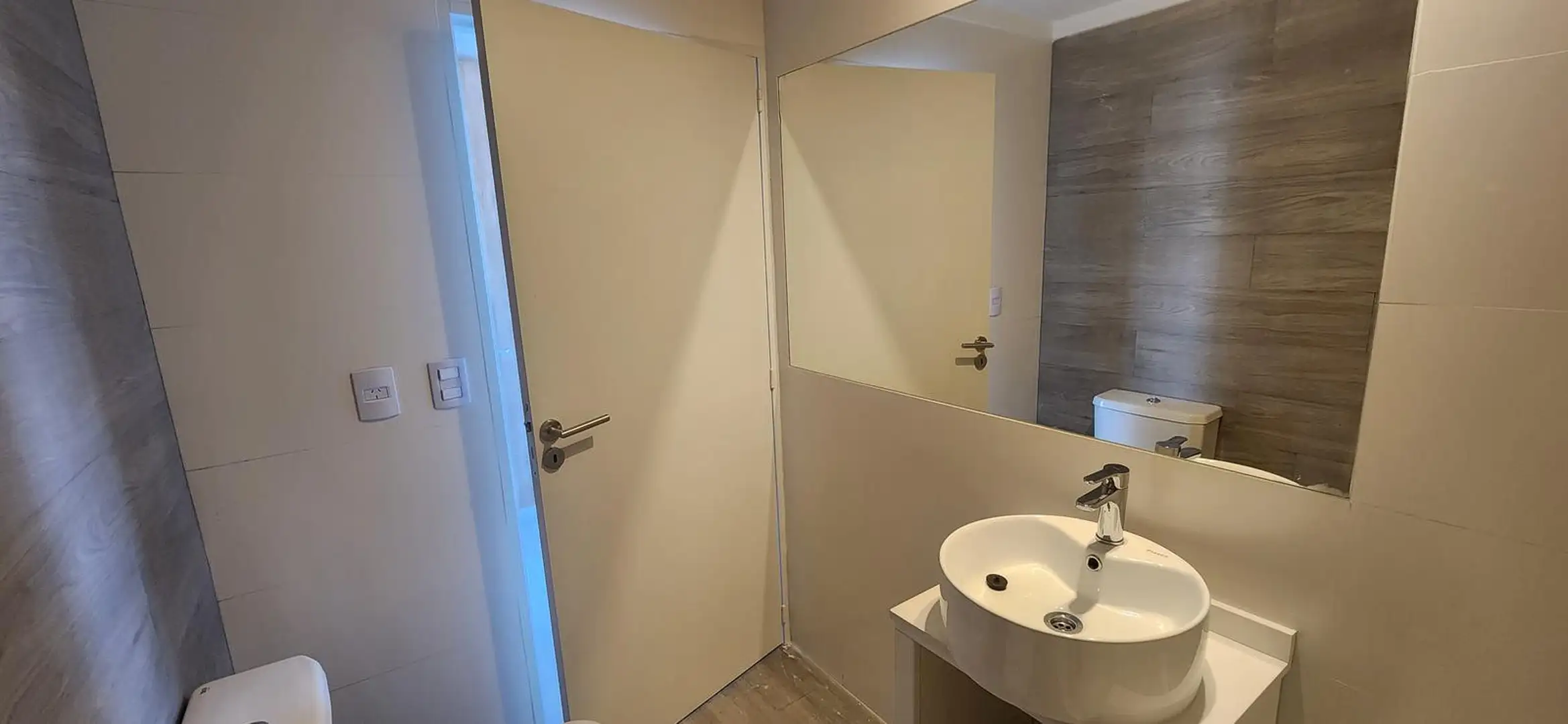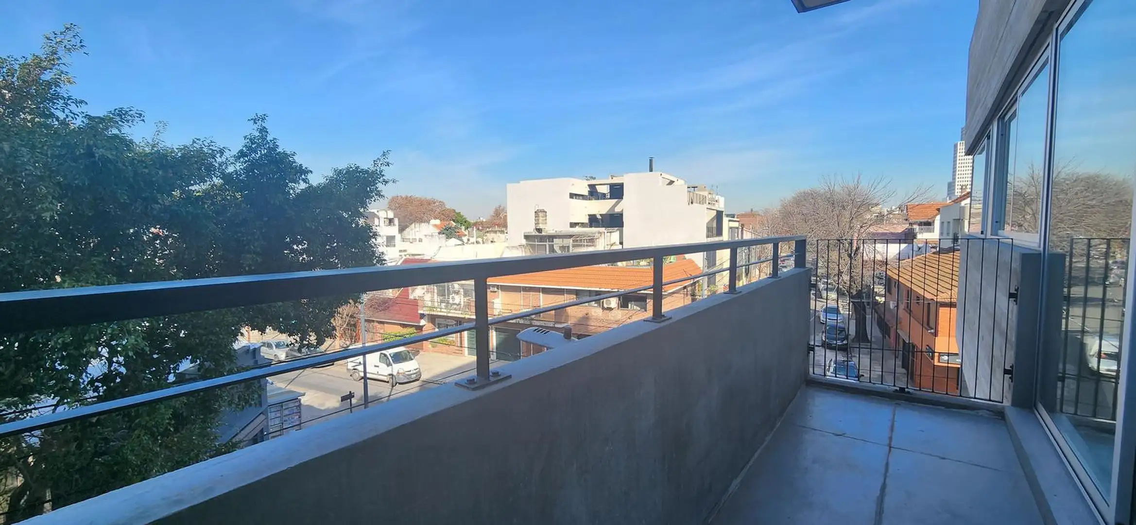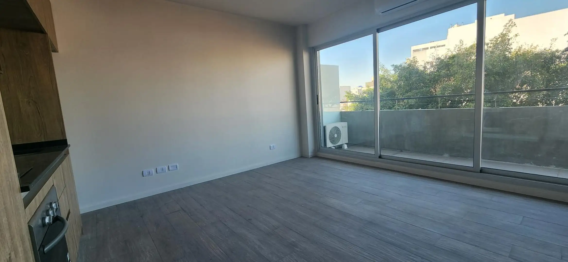 Kitnet novo (nunca habitado) em Saavedra, com possibilidade de divisão em 2 ambientes. Cozinha com bancada de mármore, cooktop com vitrocerâmica e forno elétrico, com armários aéreos e gabinetes inferiores. Banheiro completo com espelho e ar-condicionado split frio/calor inverter em todos os ambientes, com planta longitudinal e ampla janela de frente para a varanda. O edifício tem área de churrasco, lavanderia, hidromassagem e solarium.