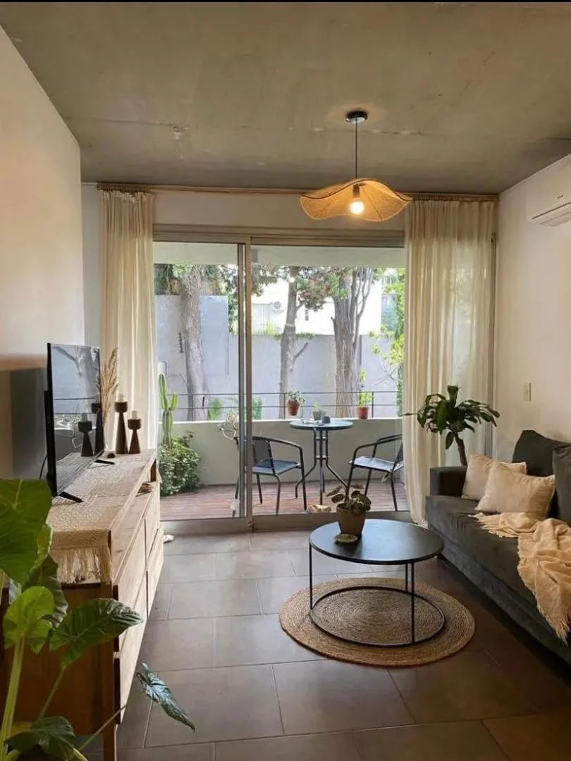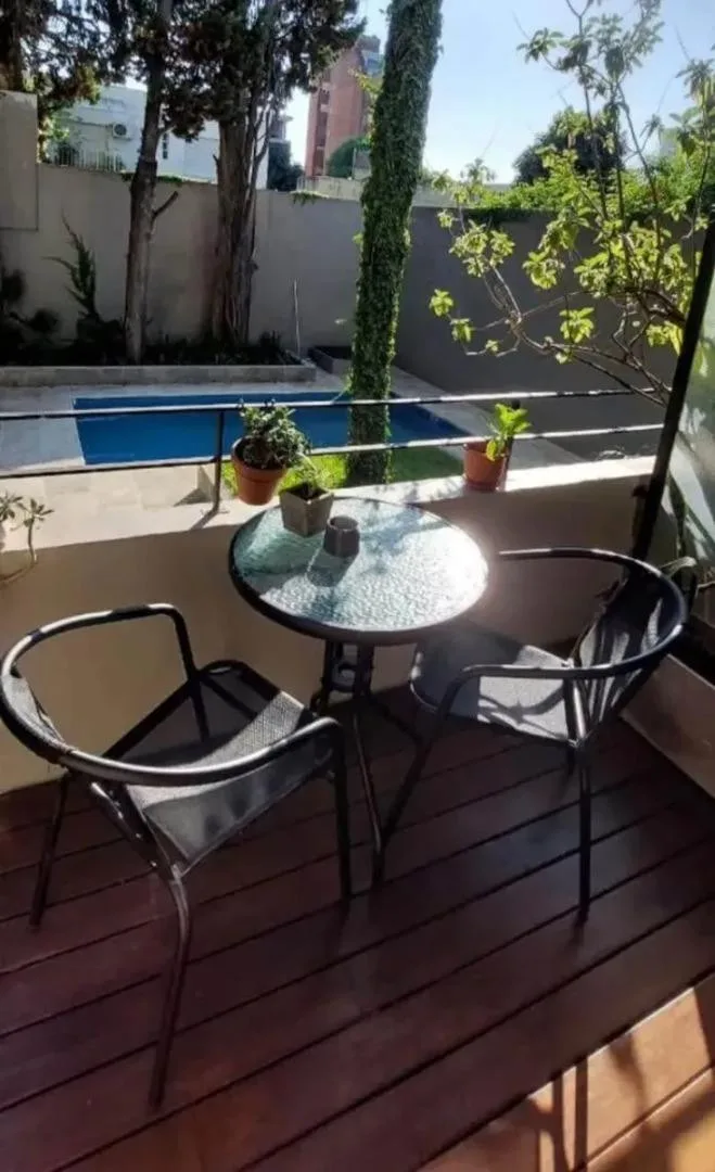 Apartamento de 2 ambientes com 50 m² em Saavedra, com varanda contínua e vaga de fundos. Fica no 3900 de Washington, a 100 metros do Parque Saavedra. Está mobiliado e equipado: dormitório em suíte com armário, banheiro completo, cozinha completa, área de serviço com máquina de lavar, 2 aparelhos de ar-condicionado frio/calor, geladeira com freezer, micro-ondas, TV e TV a cabo, além de internet WiFi. O prédio tem piscina, salão de festas, área de churrasco e jardim. O aluguel mensal é de USD 850;