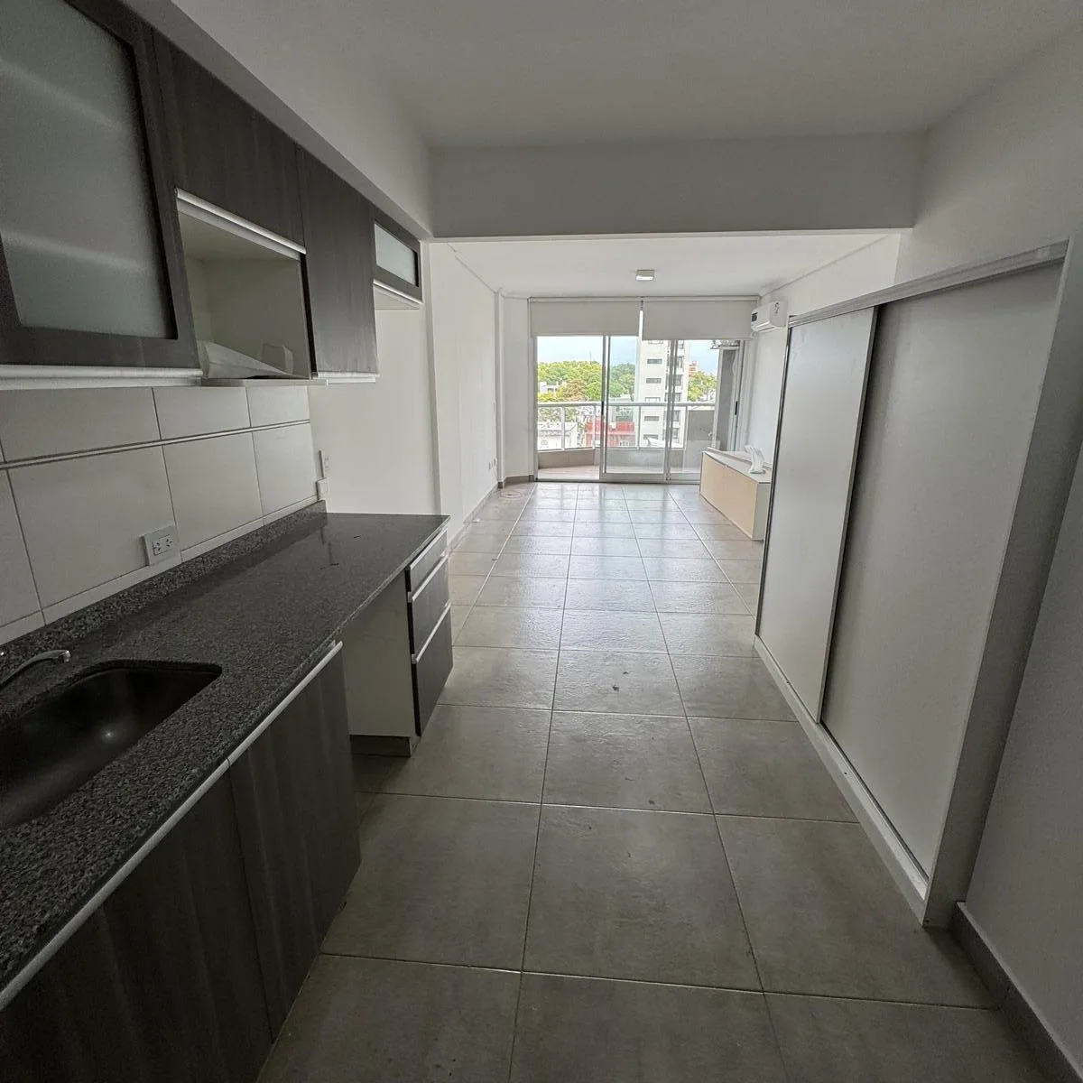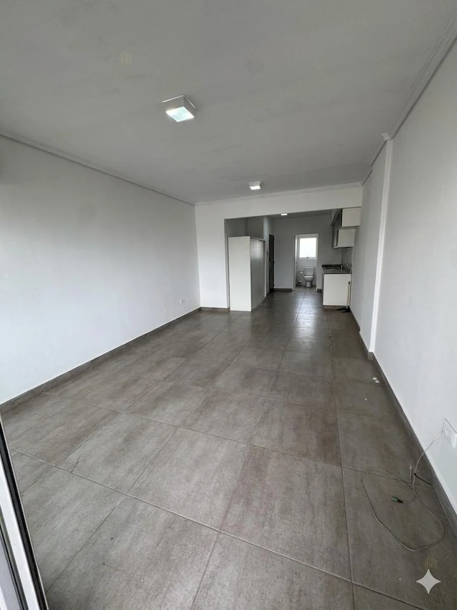 Kitnet de 1 ambiente com cozinha integrada, área de estar com saída para a varanda, e banheiro completo. Possui ar-condicionado e armário embutido. O edifício tem 8 andares, 4 unidades por andar, e hall de entrada, elevador e hall. Oferece salão de festas, lavanderia, área de churrasco e terraço, além de gerador próprio, água quente central e aquecimento por ar frio/calor. As despesas de condomínio são descritas como baixas.